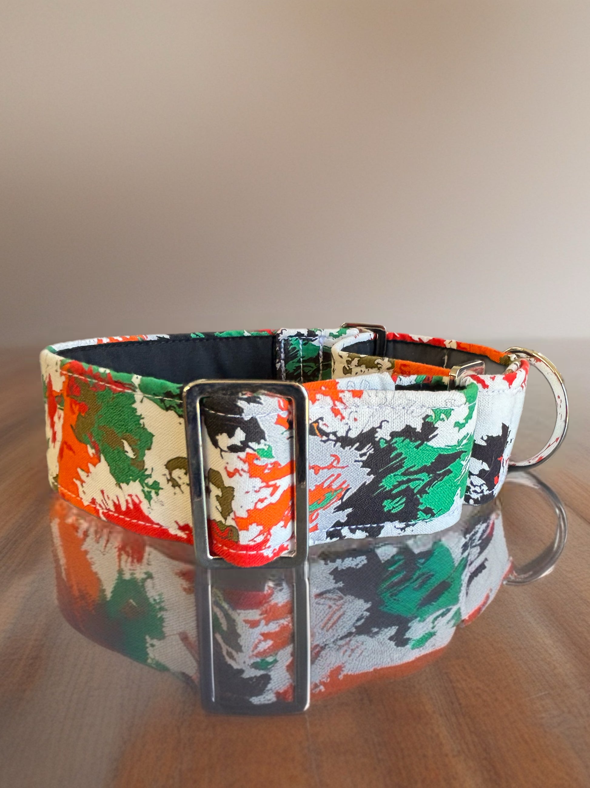 Vivid white Cammo greyhound Martingale collar cotton covered 38 & 50mm width