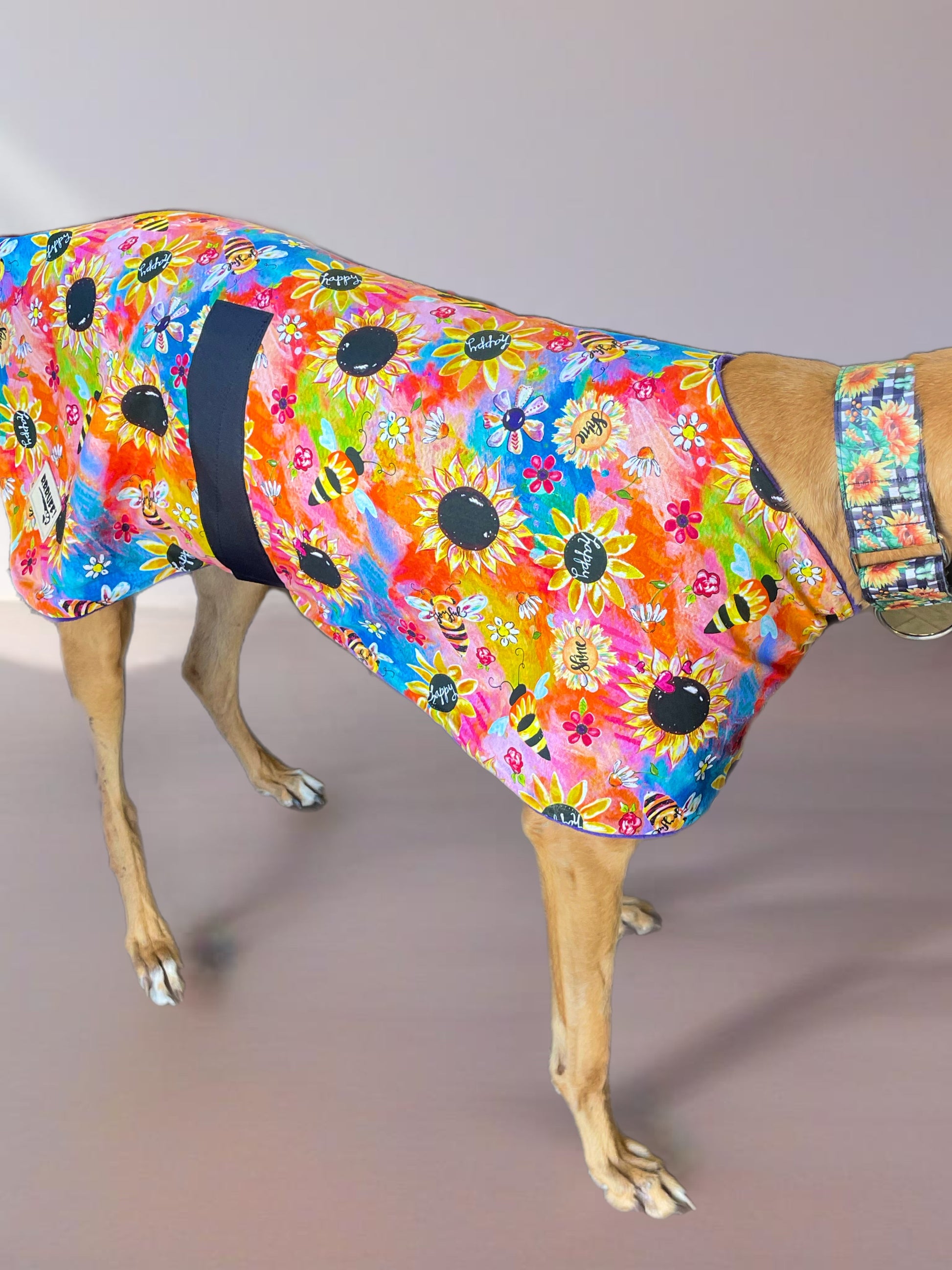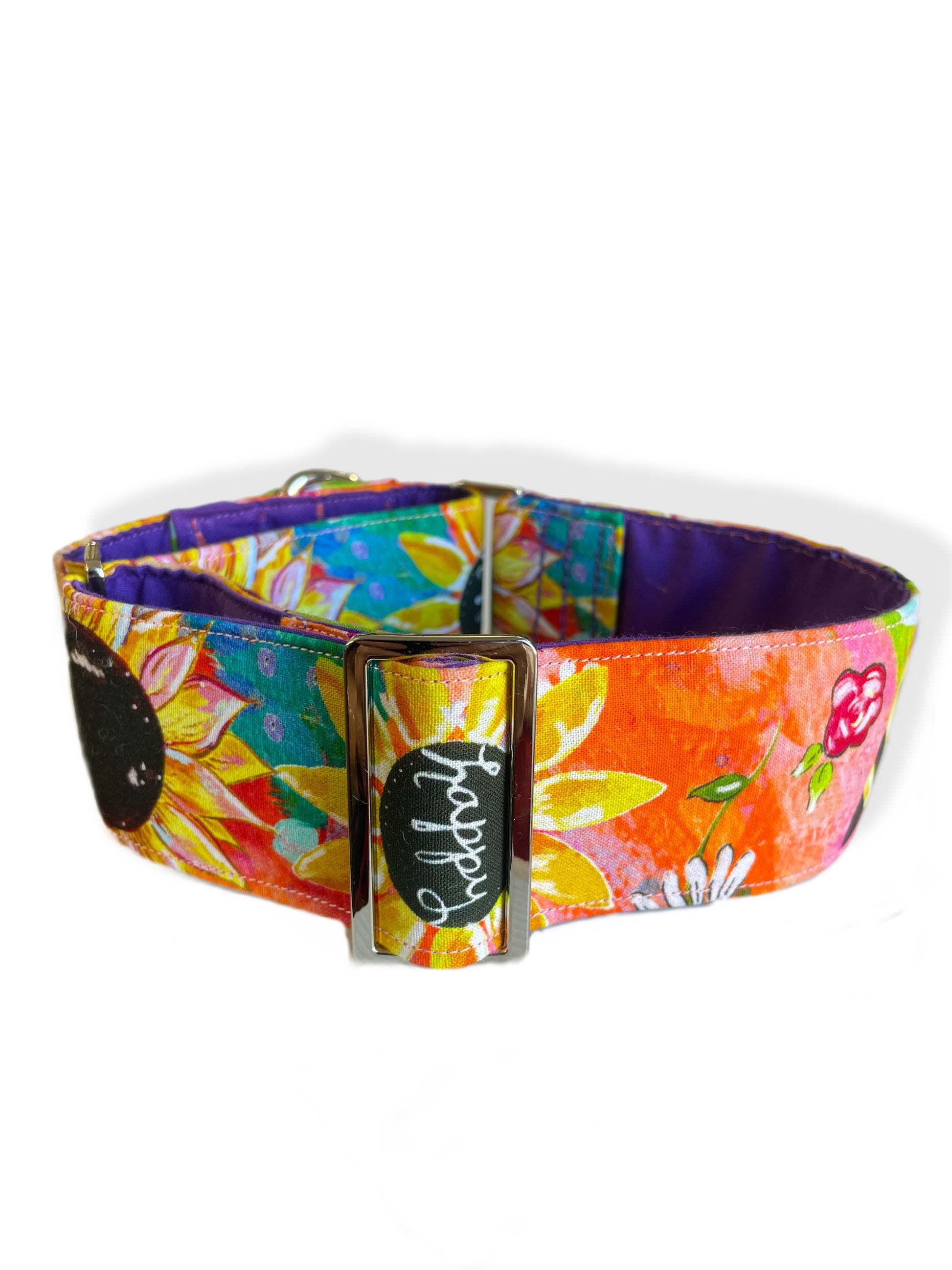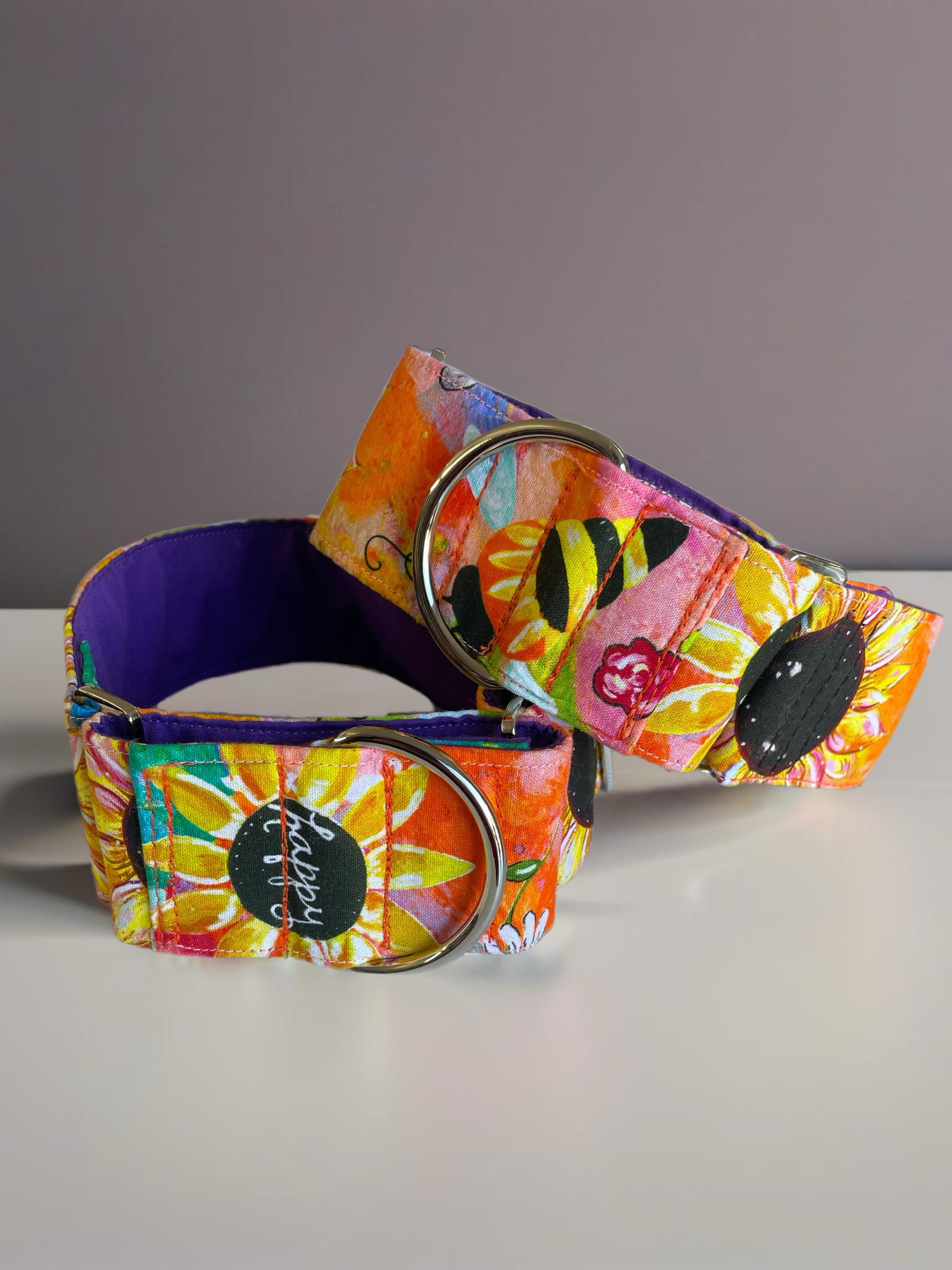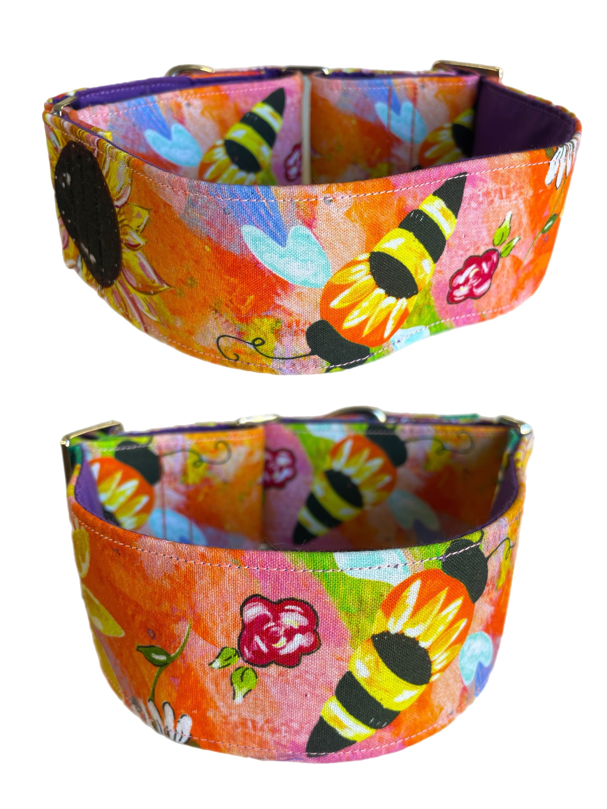 Happy buzz bees martingale collar in cotton fabric 50mm wide