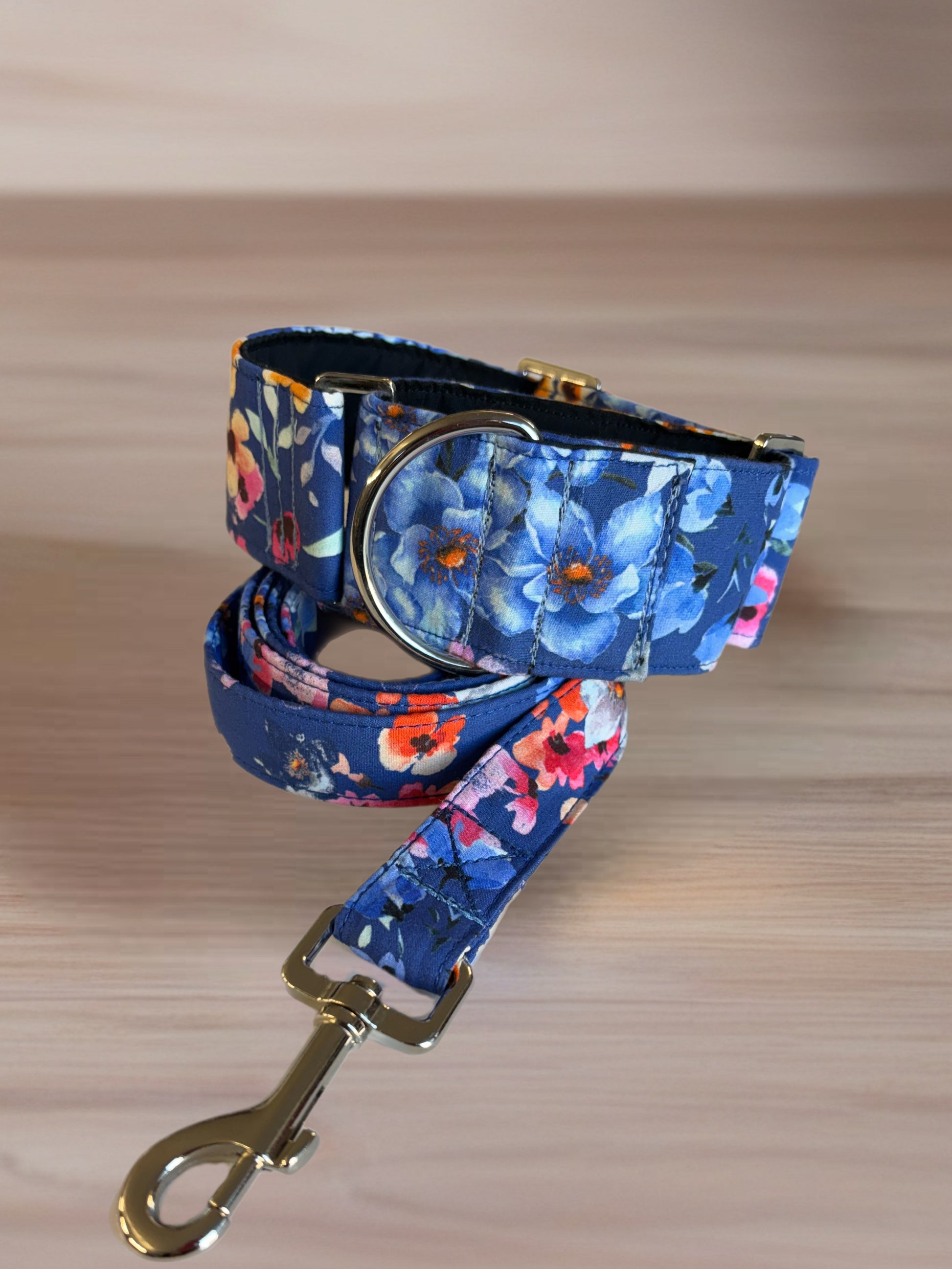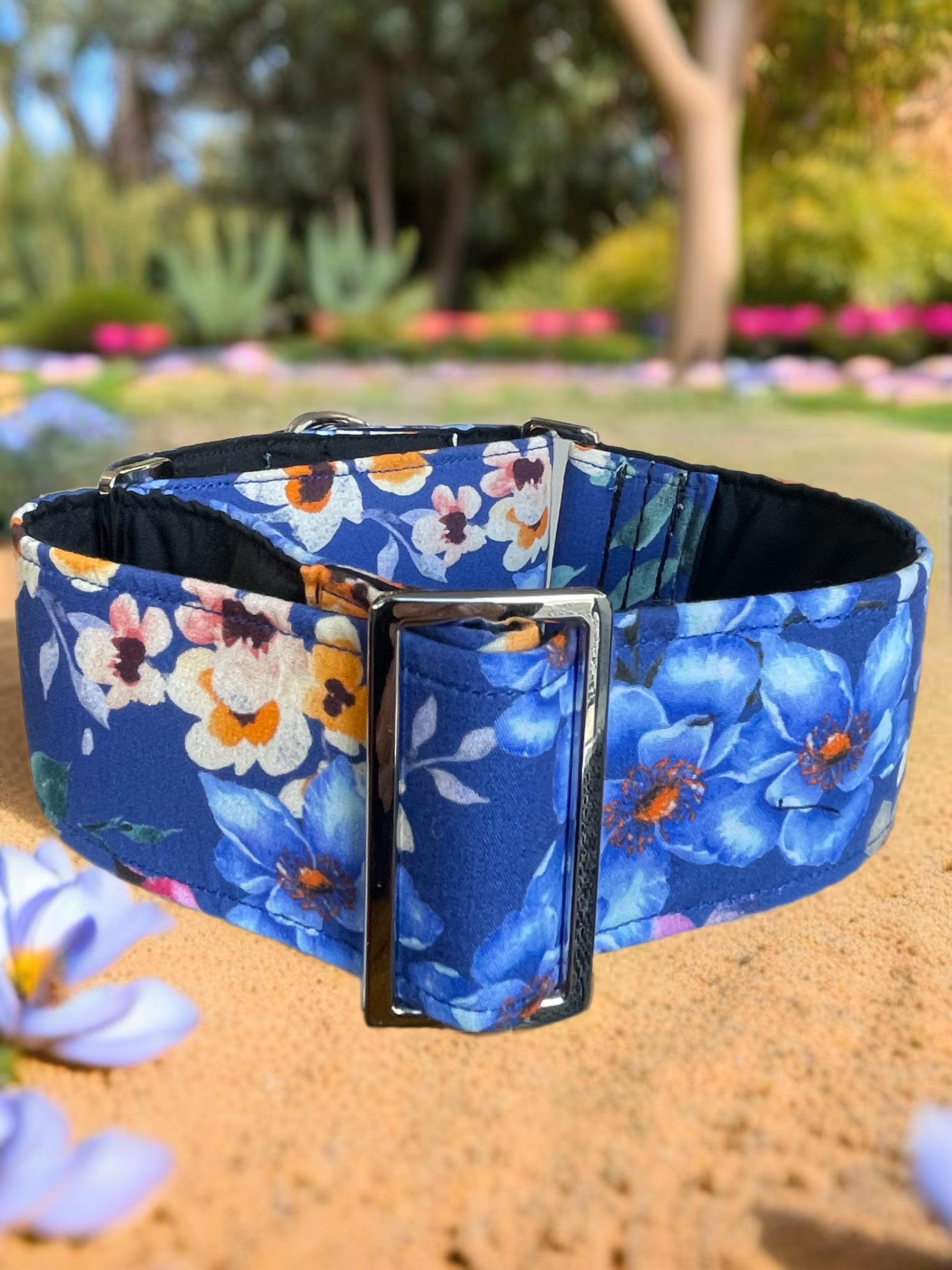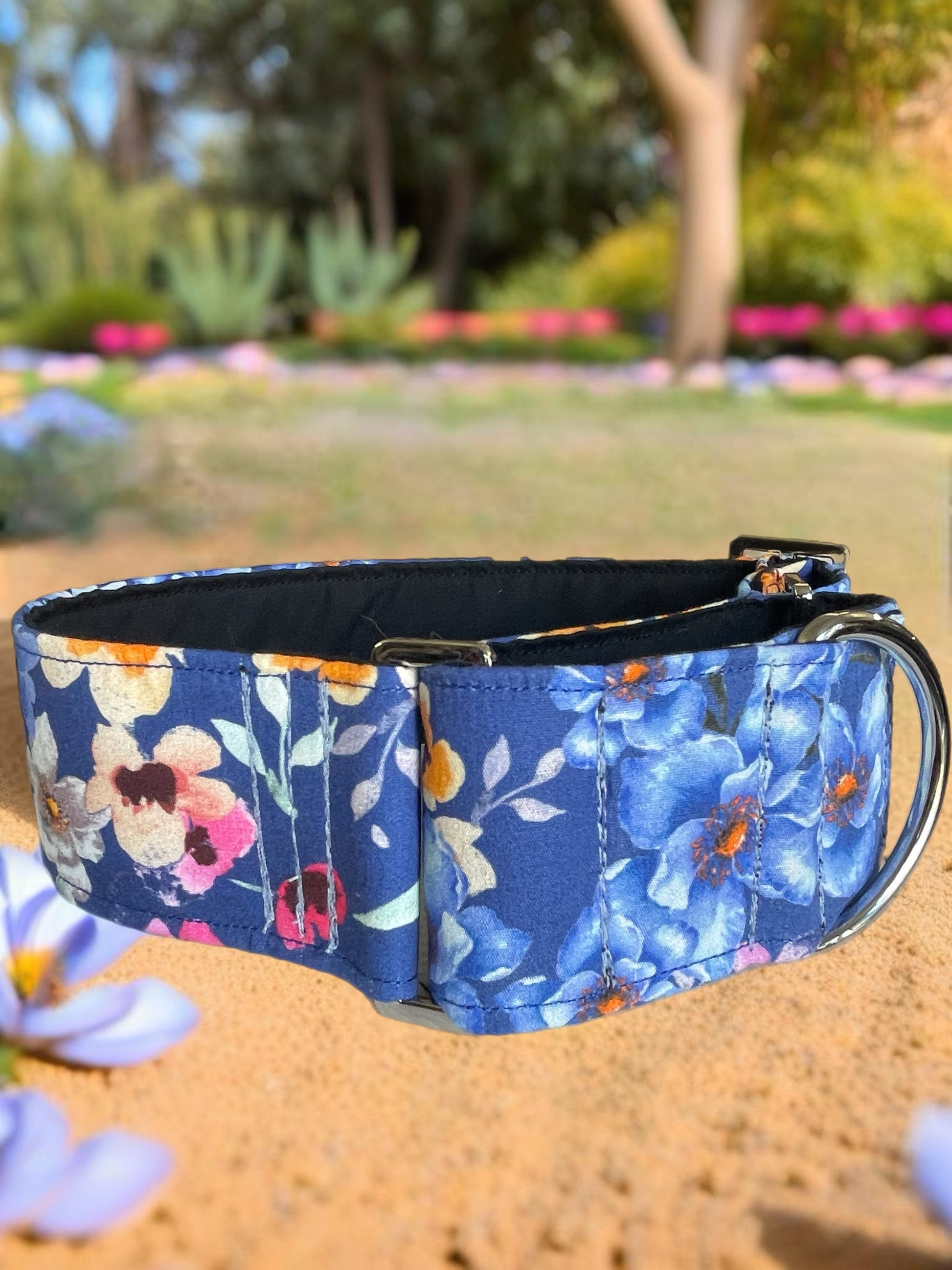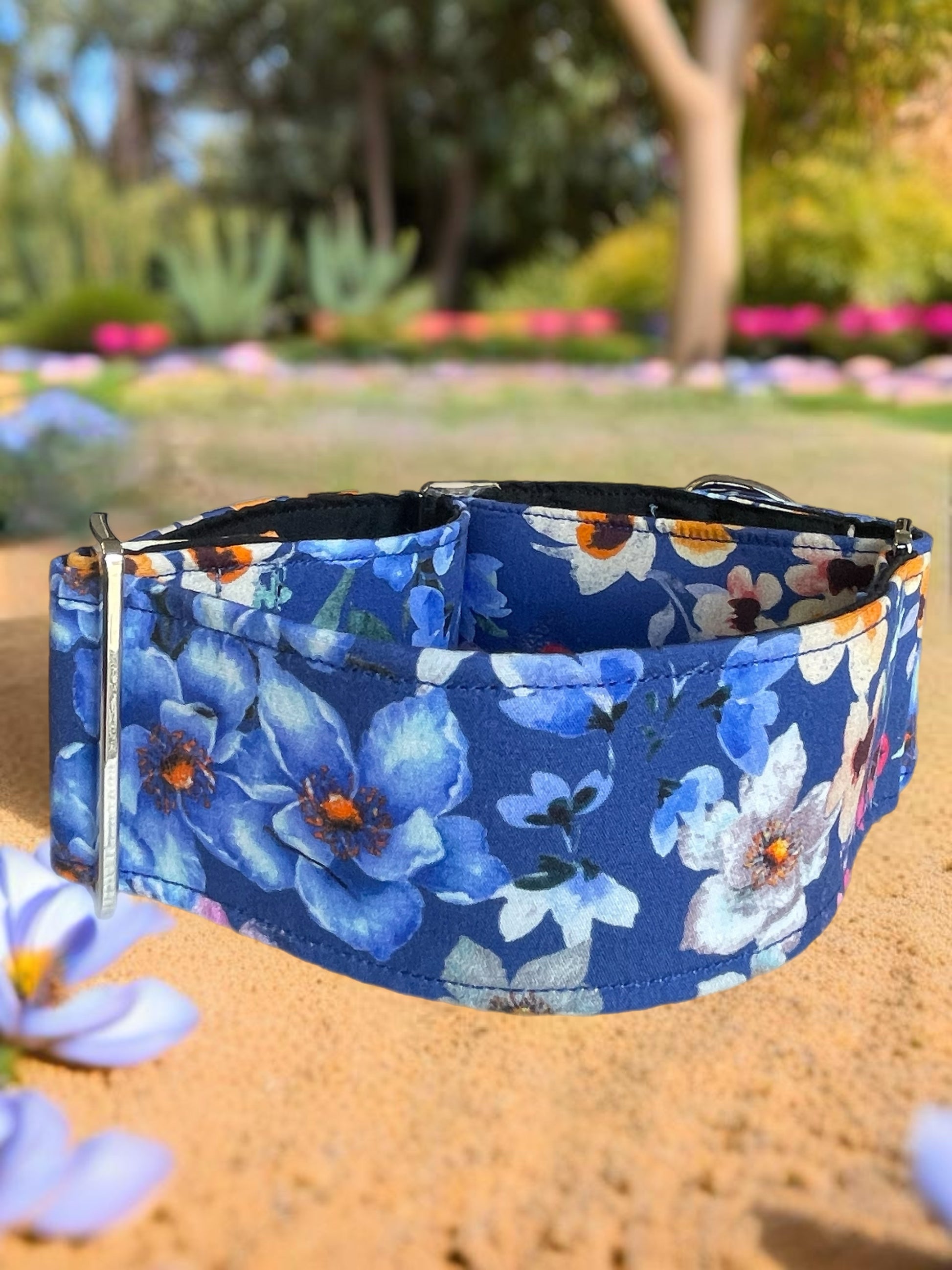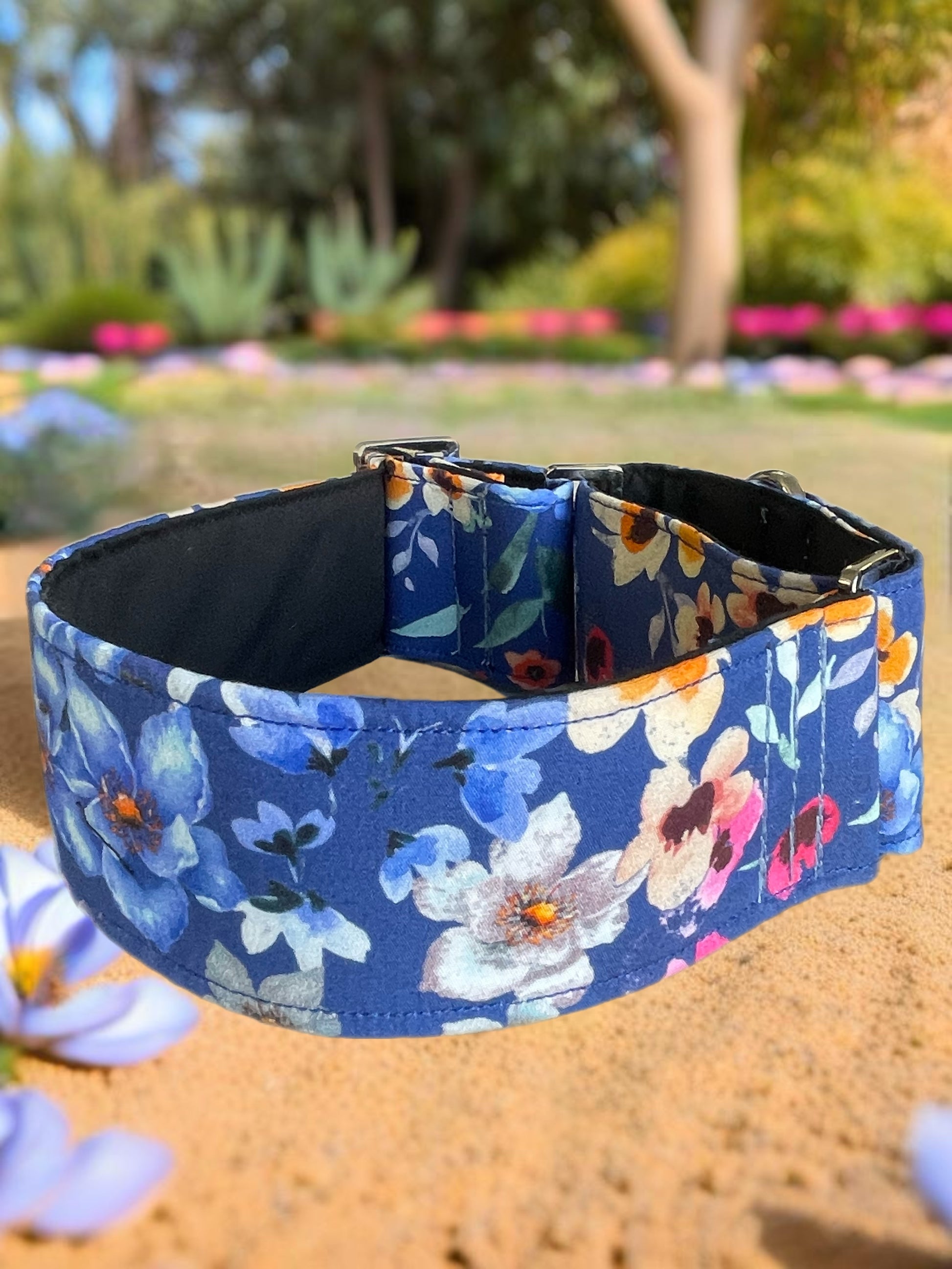 Blue hues of romantic flowers design greyhound Martingale collar cotton covered super soft