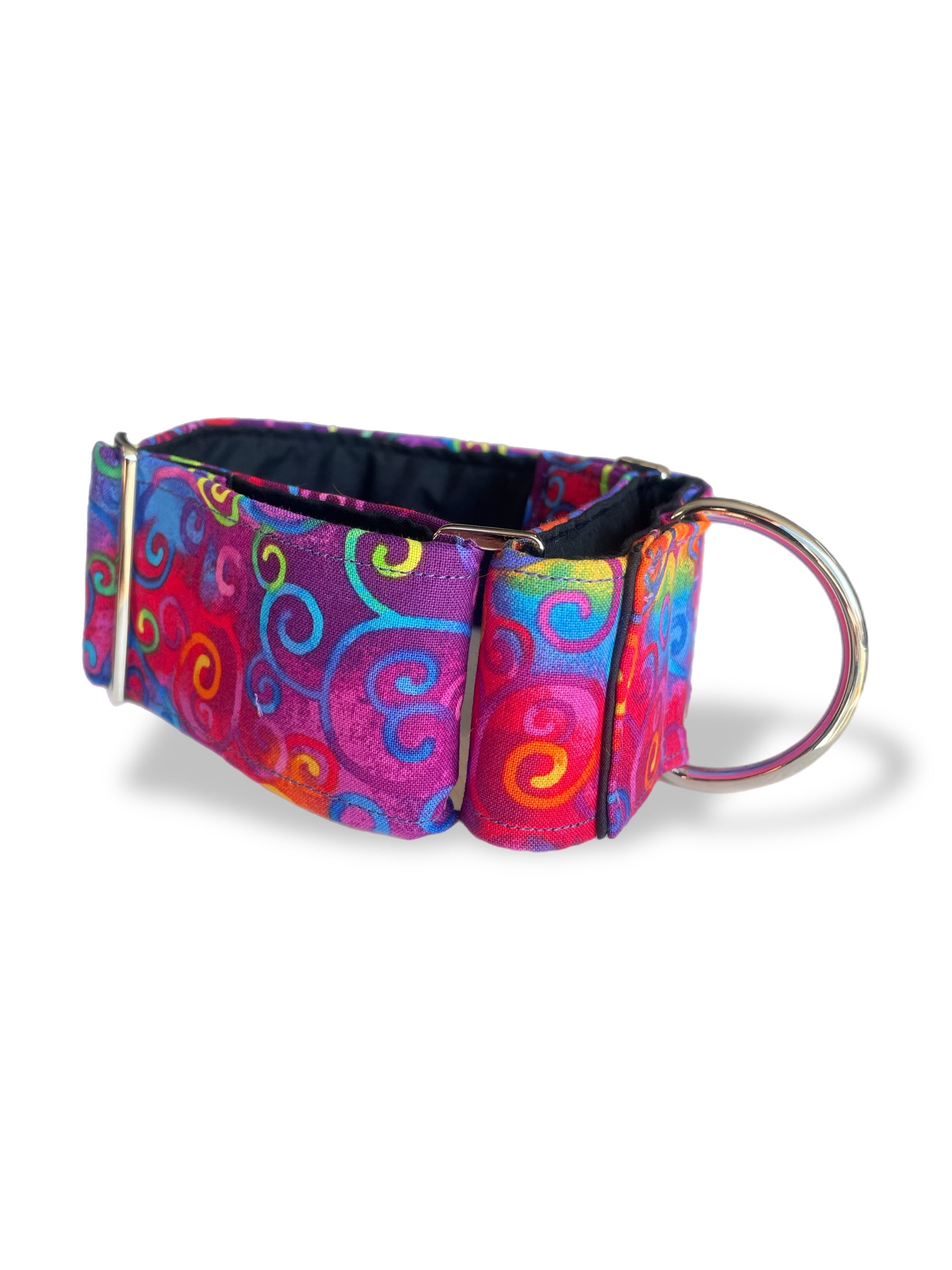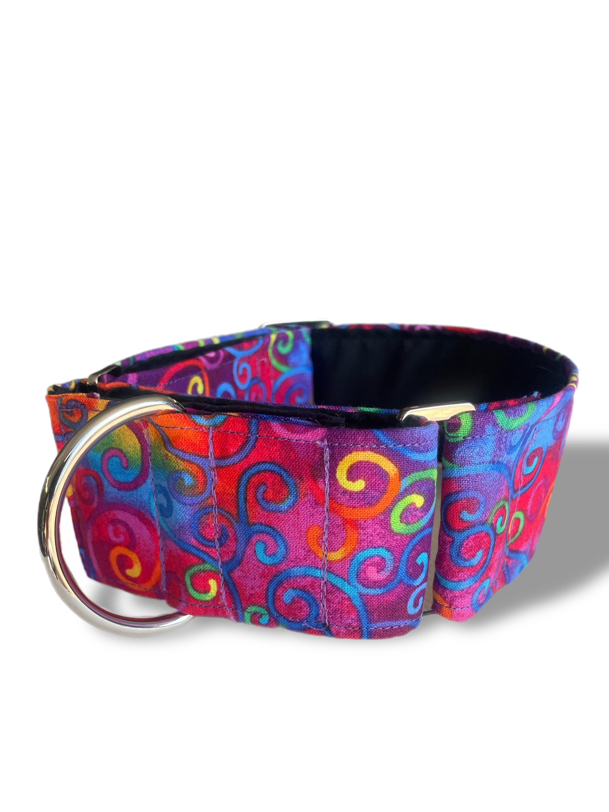 Spiral swirls of color wide Martingale collar cotton covered super soft