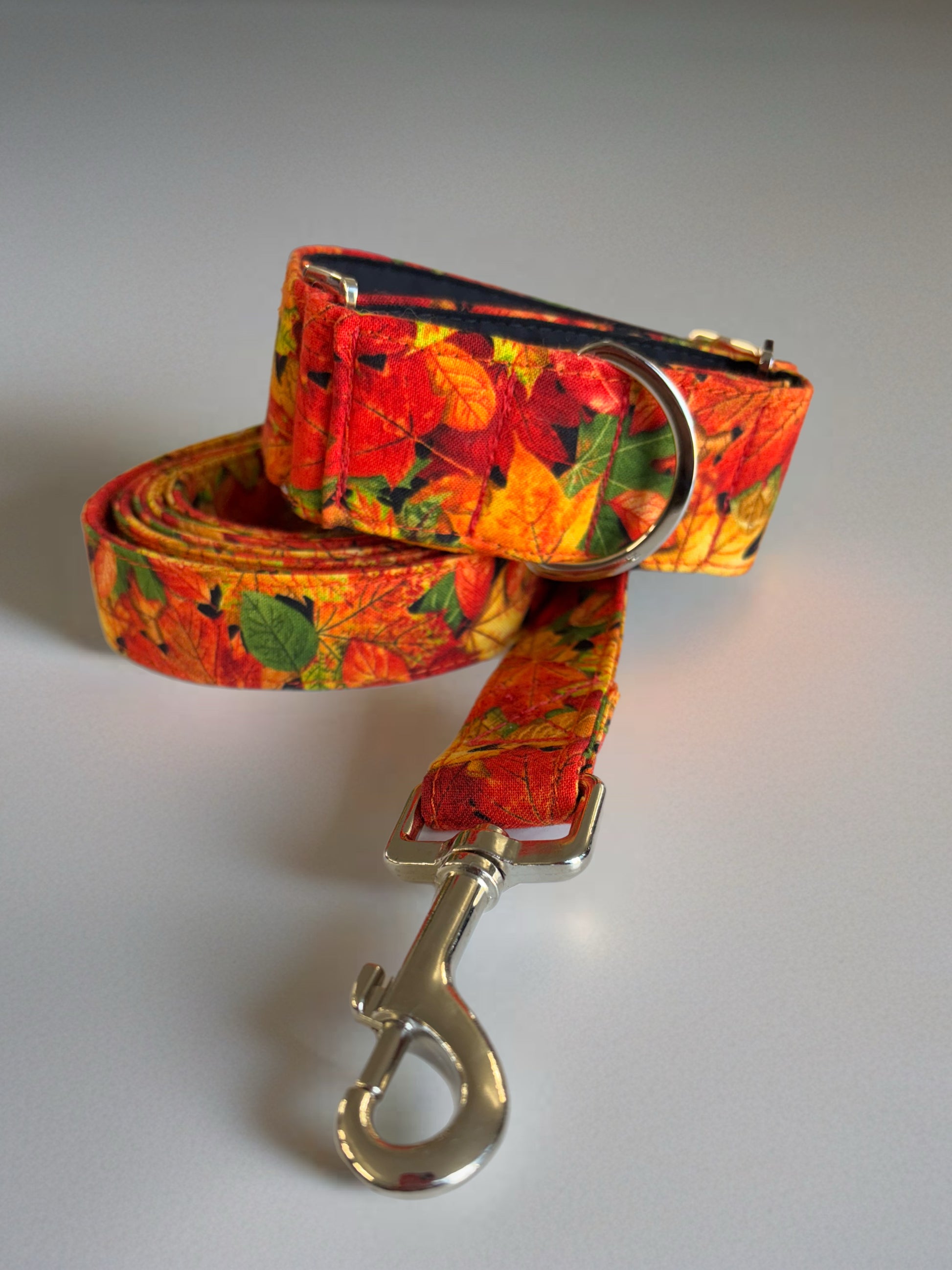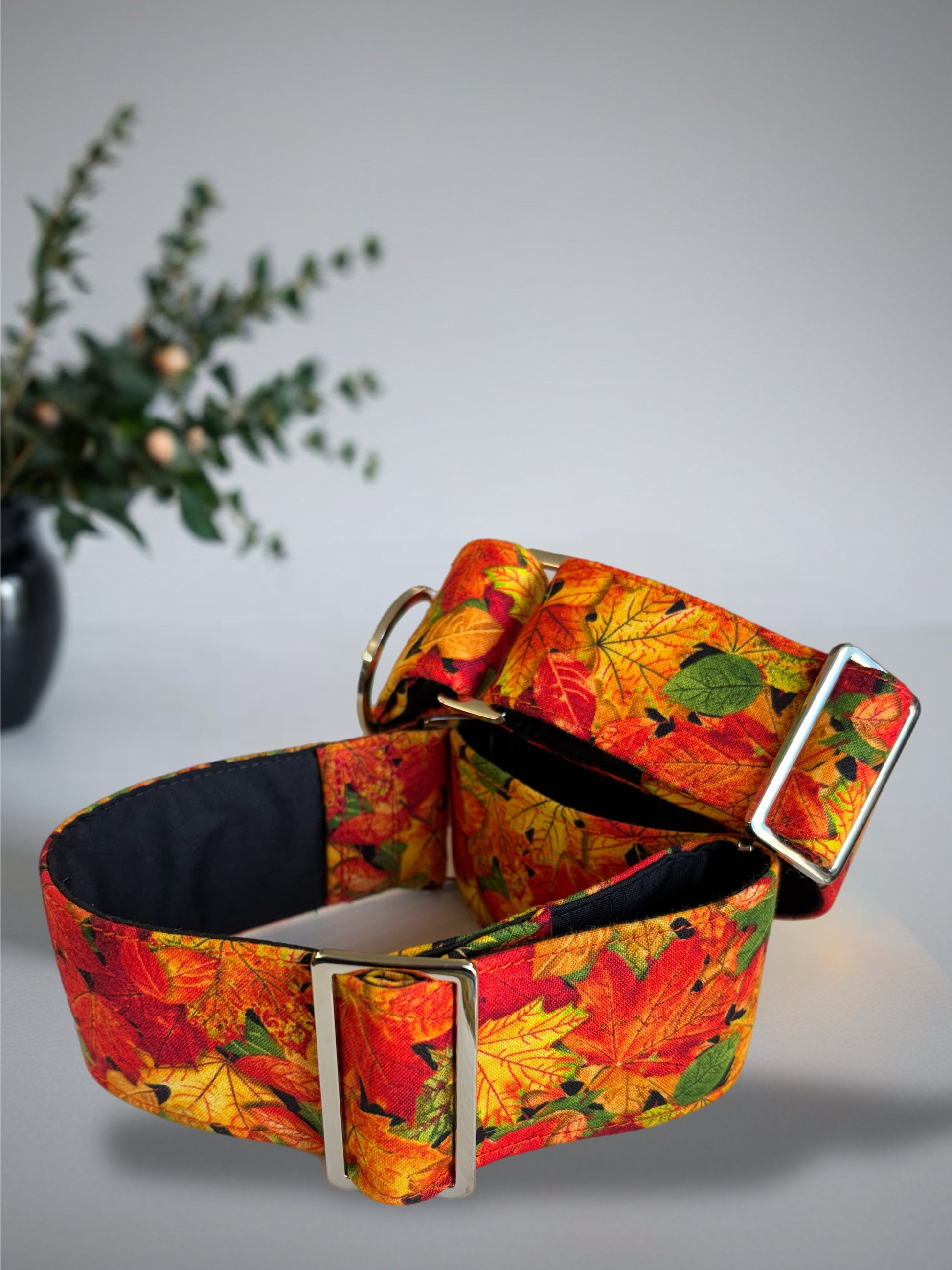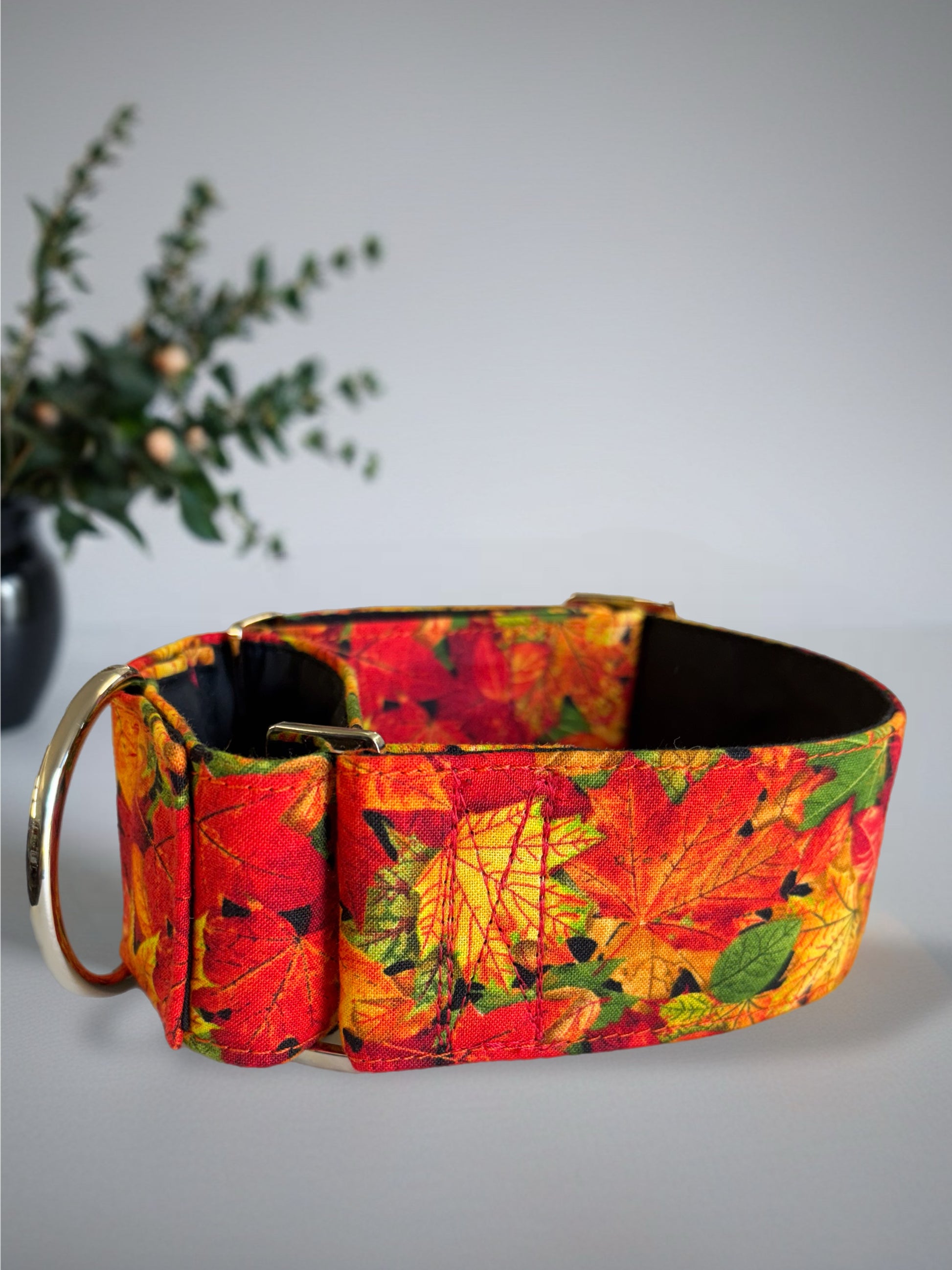 Simply gorgeous leaves vibrant Greyhound Martingale collar cotton covered super soft