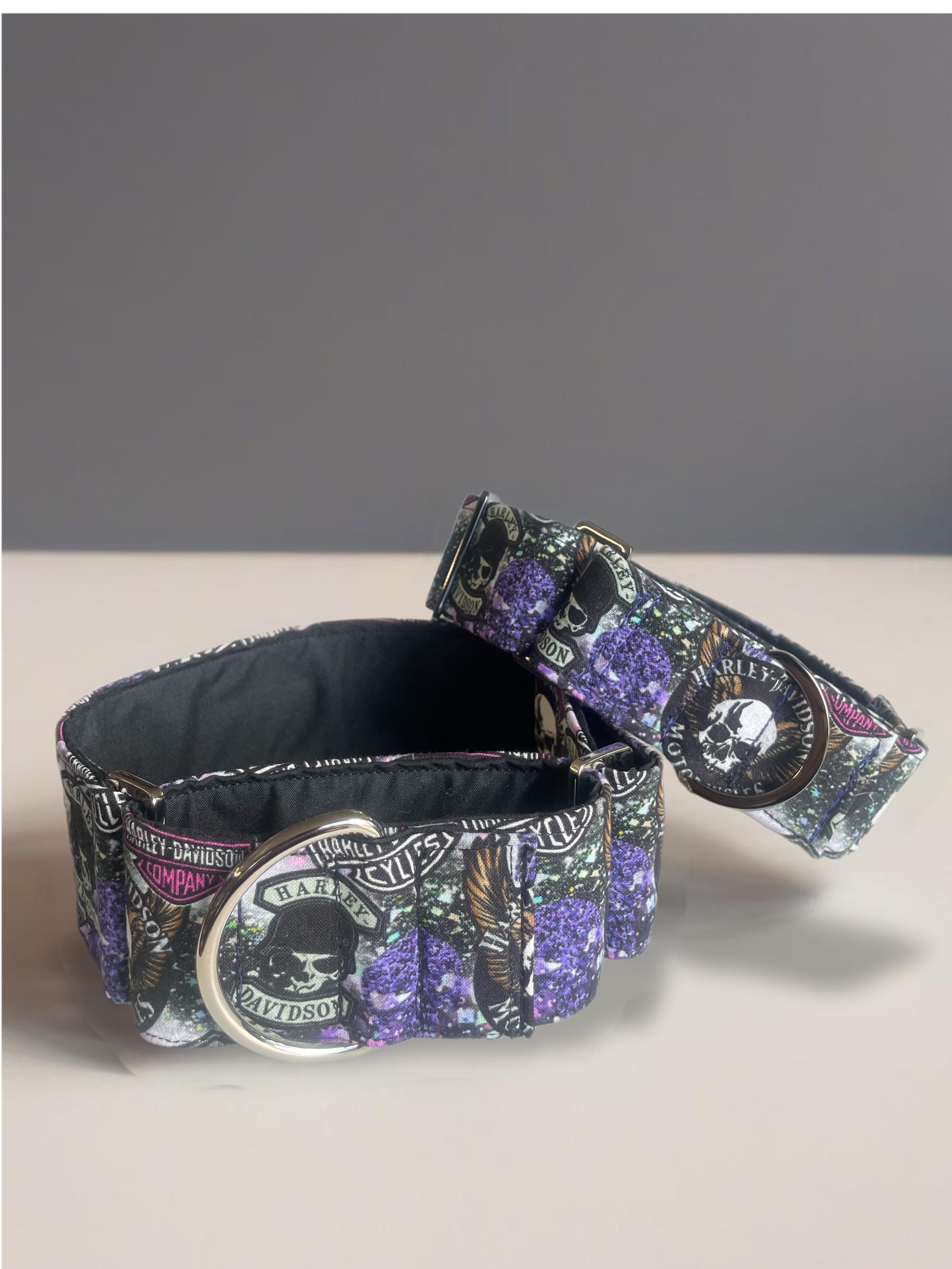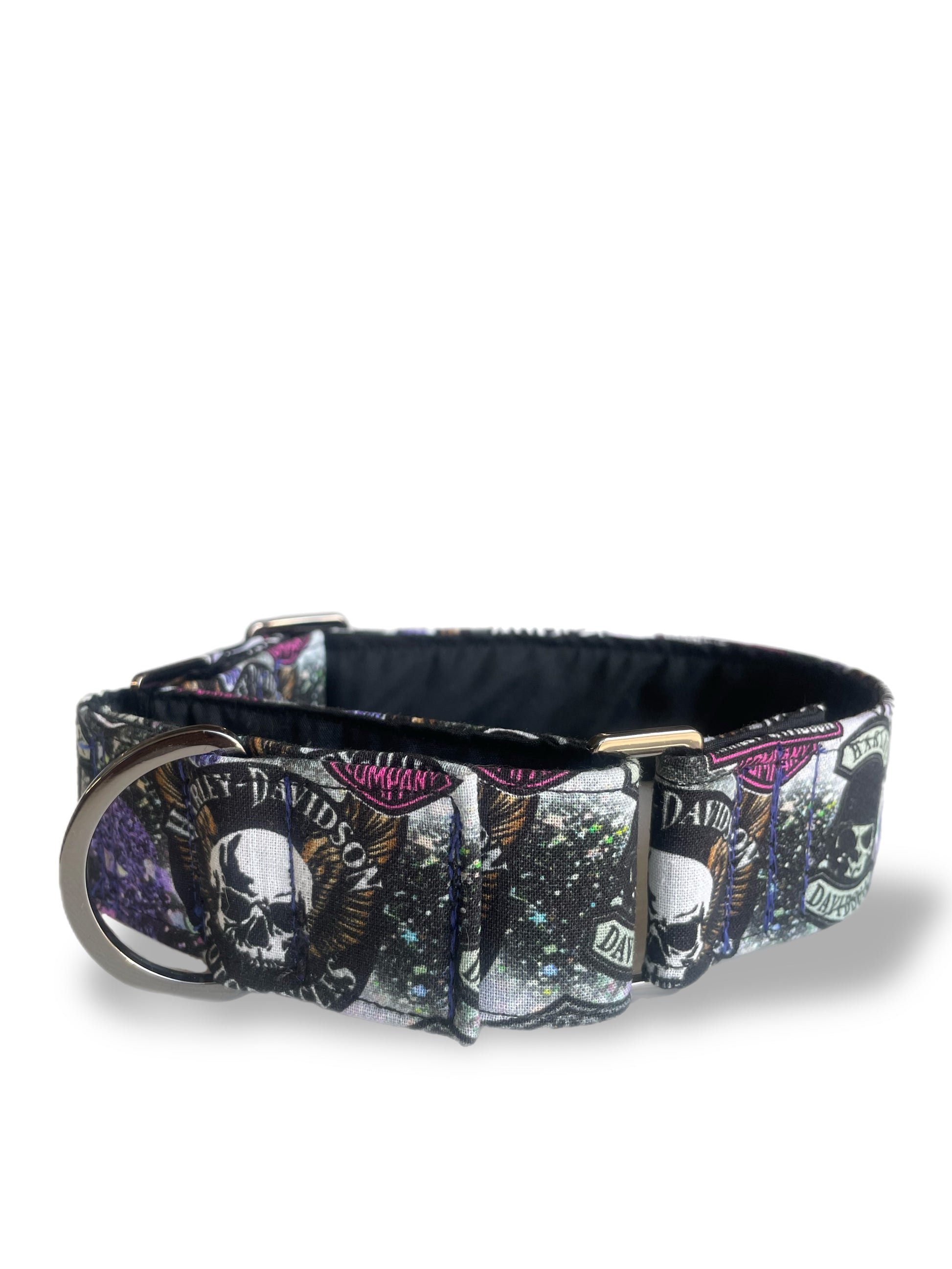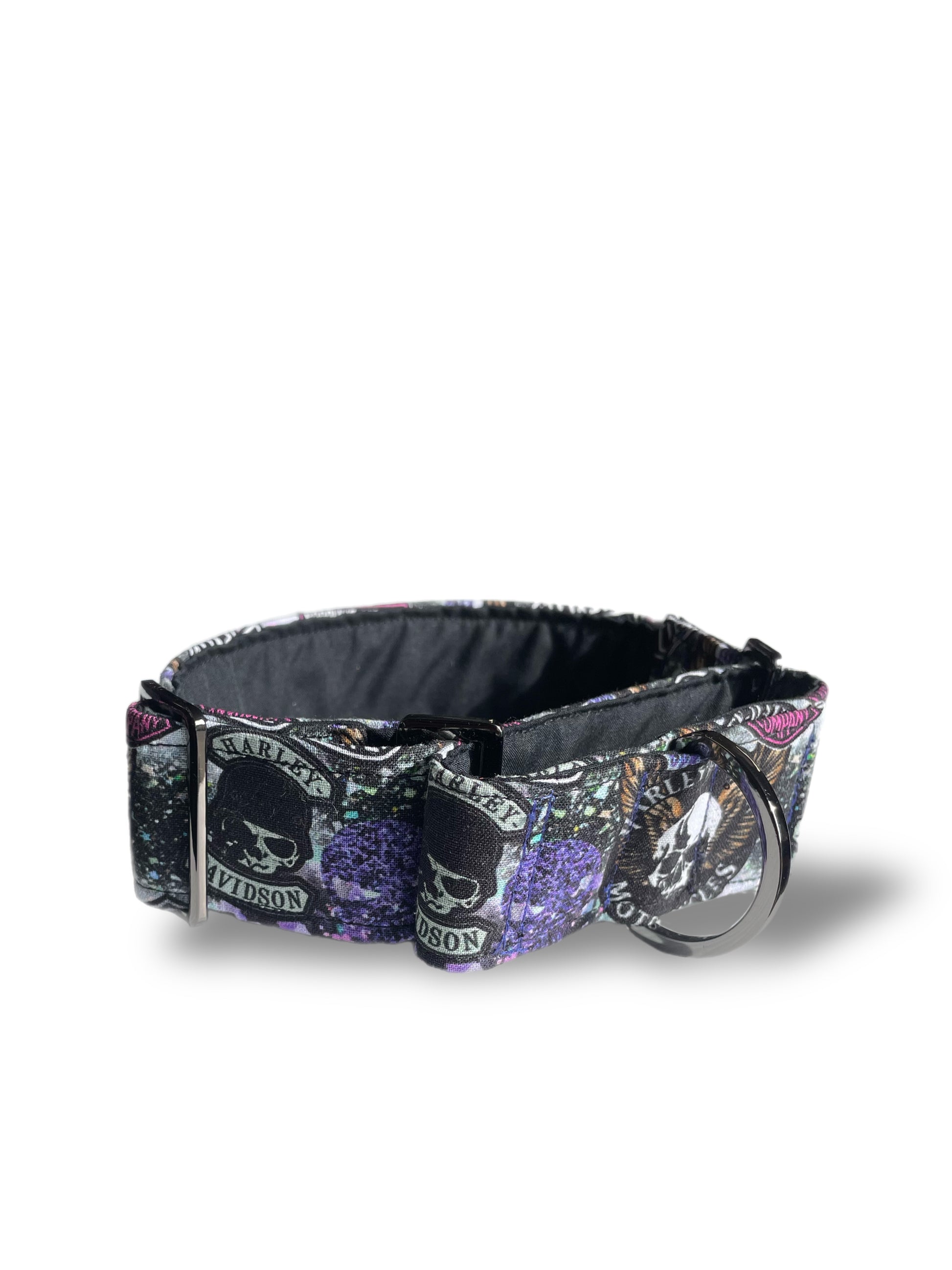 Cotton covered greyhound Martingale collar ‘Harley’ design wide super soft