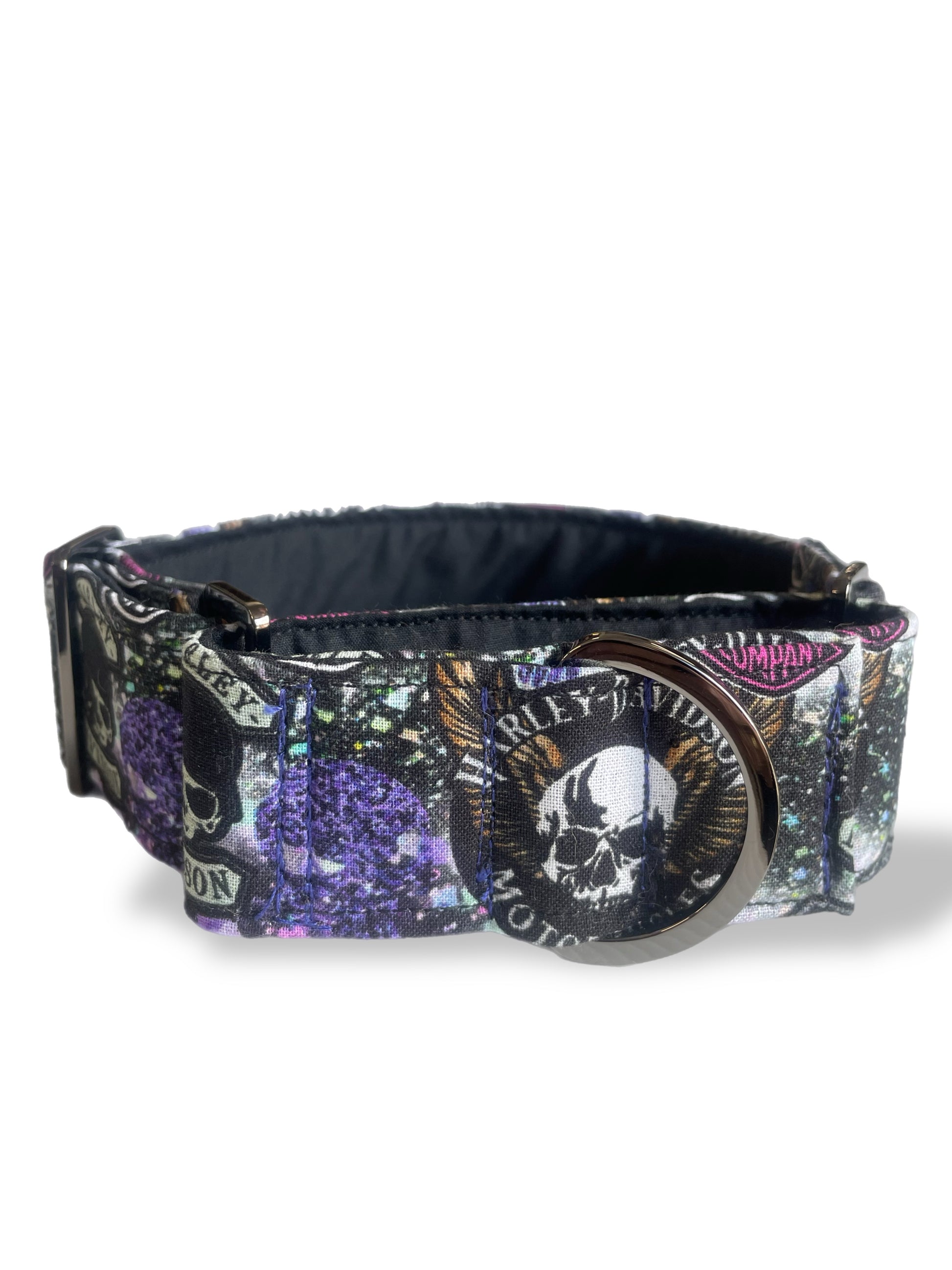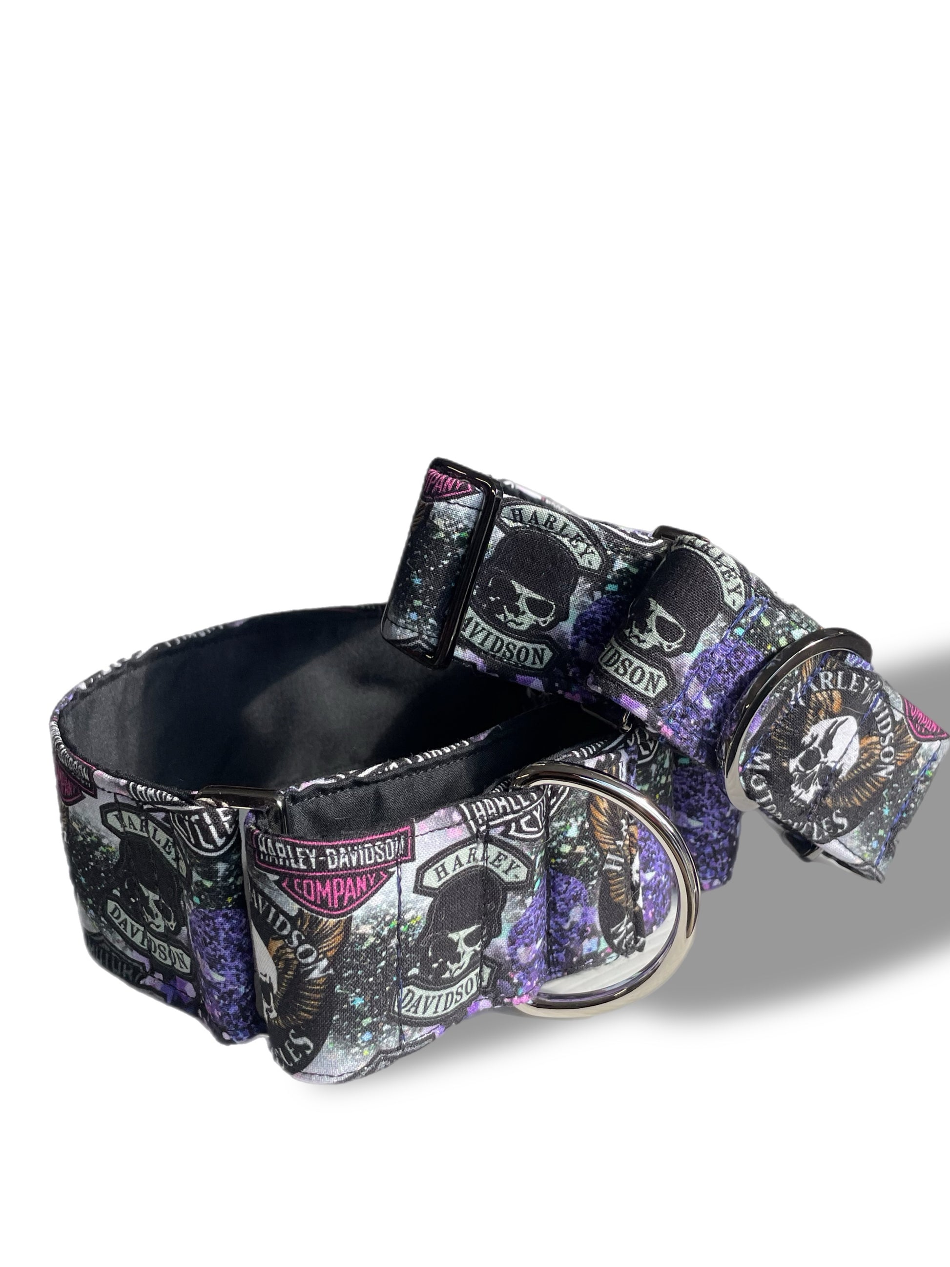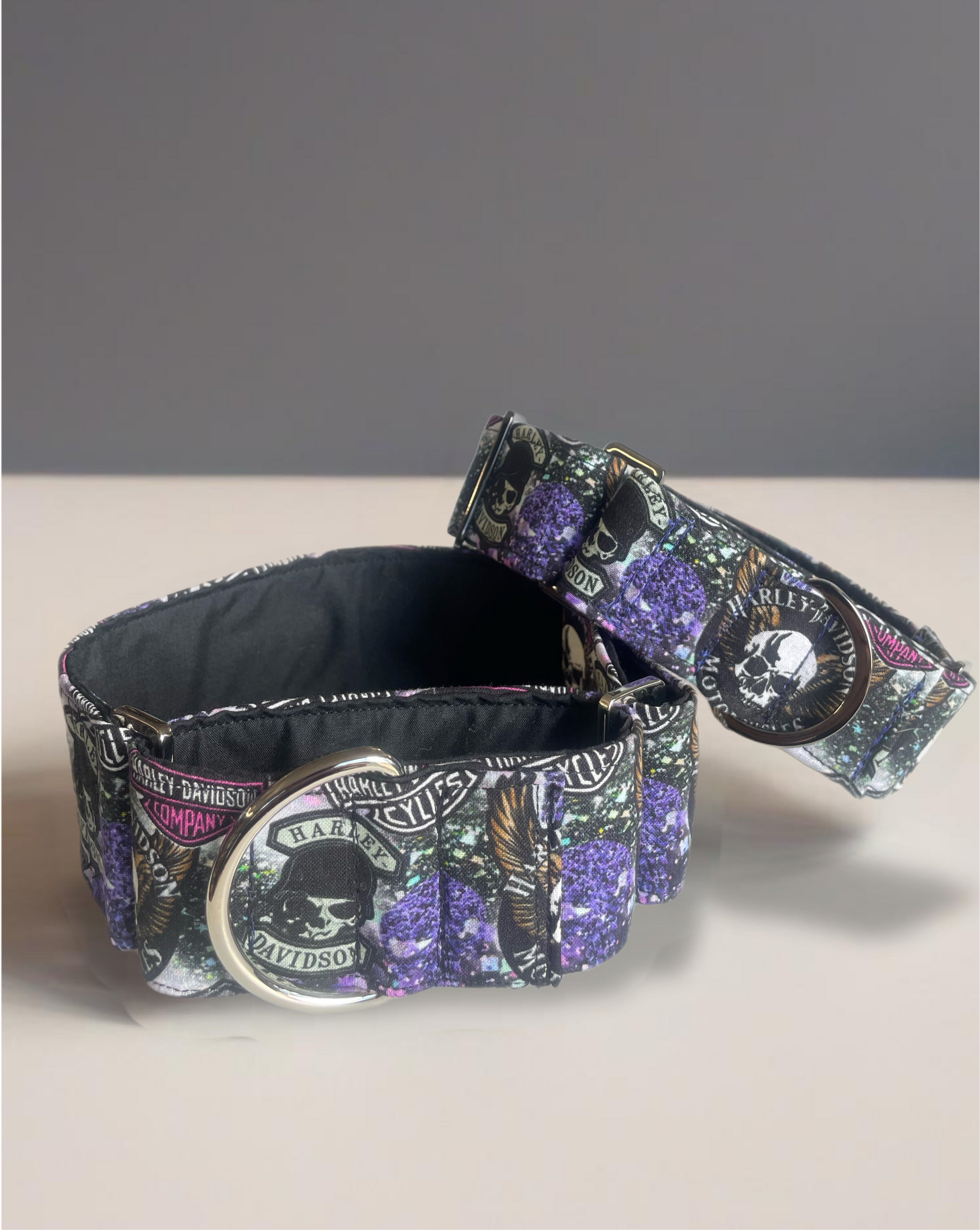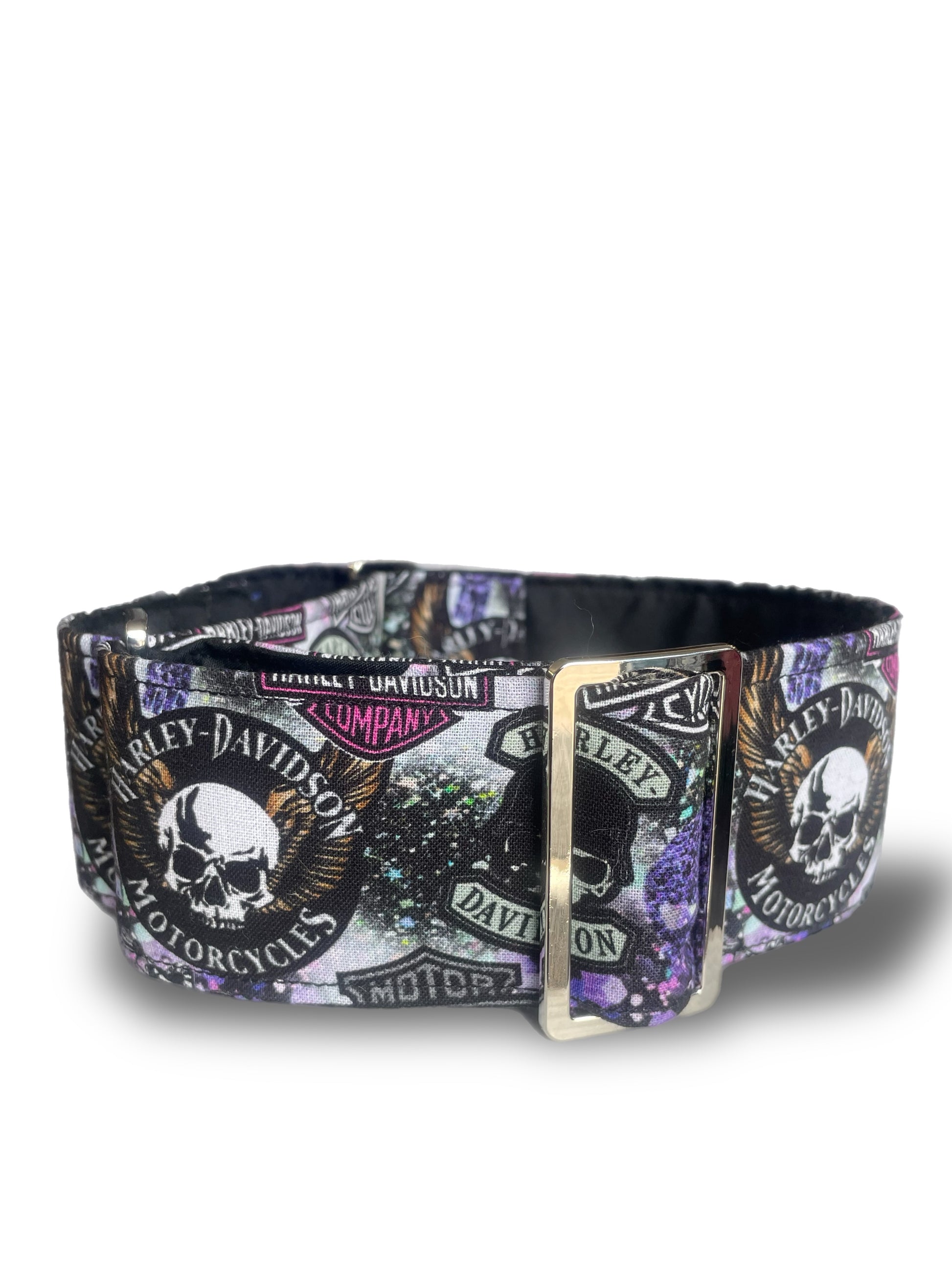 Cotton covered greyhound Martingale collar ‘Harley’ design wide super soft