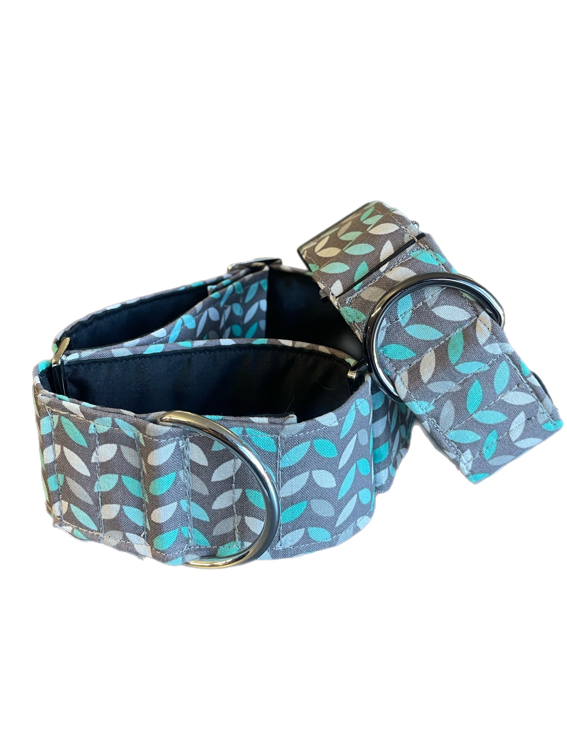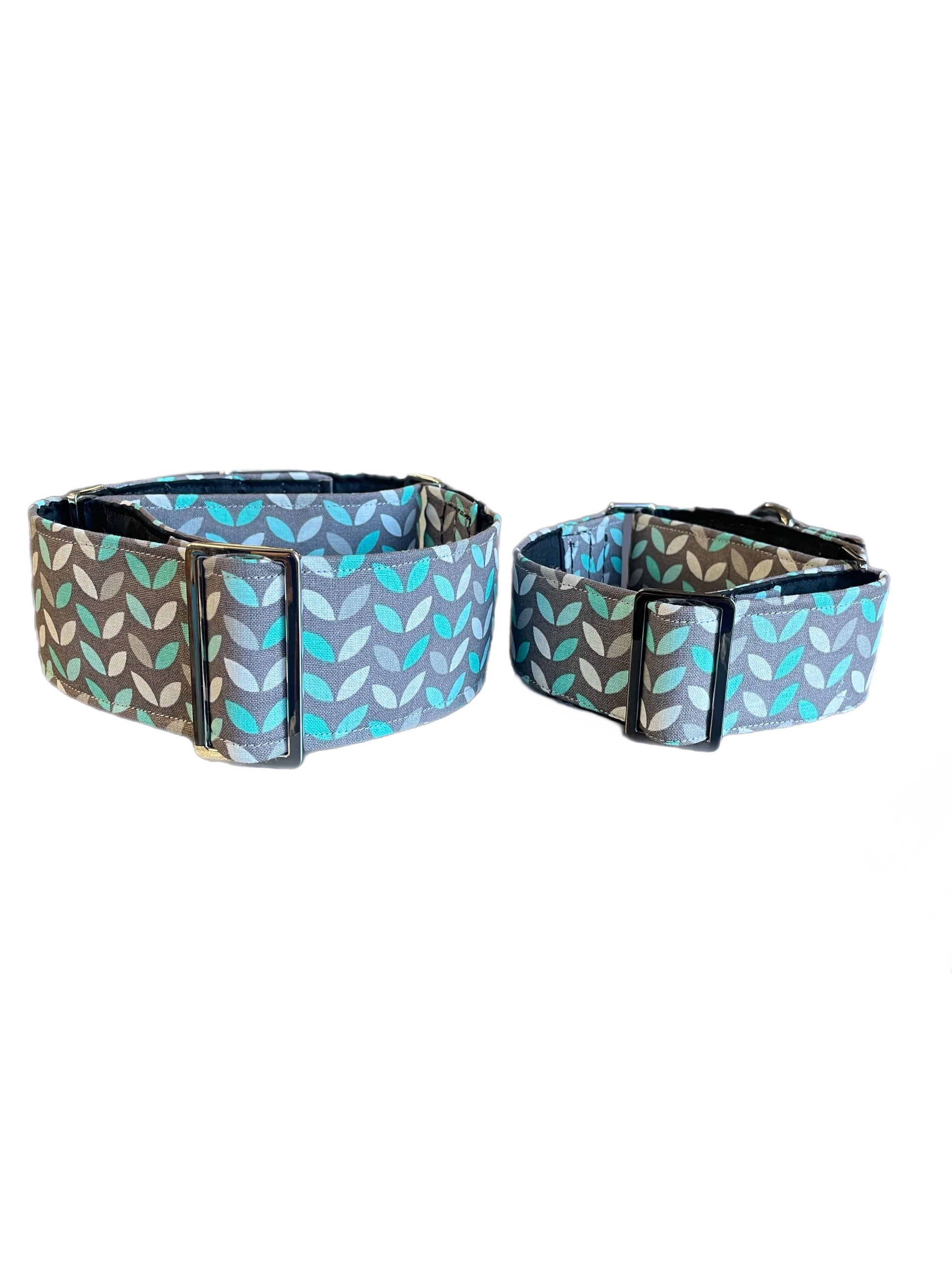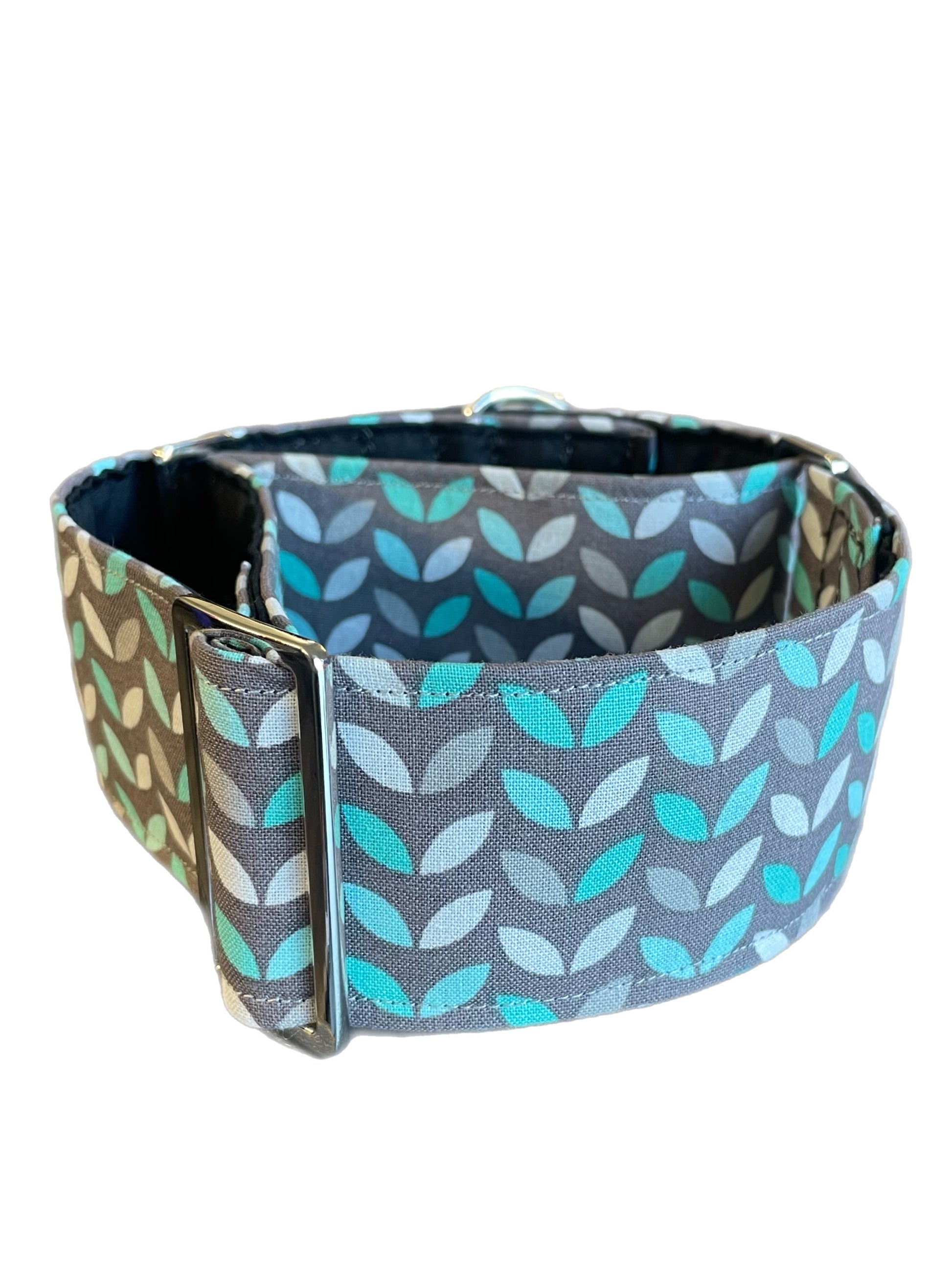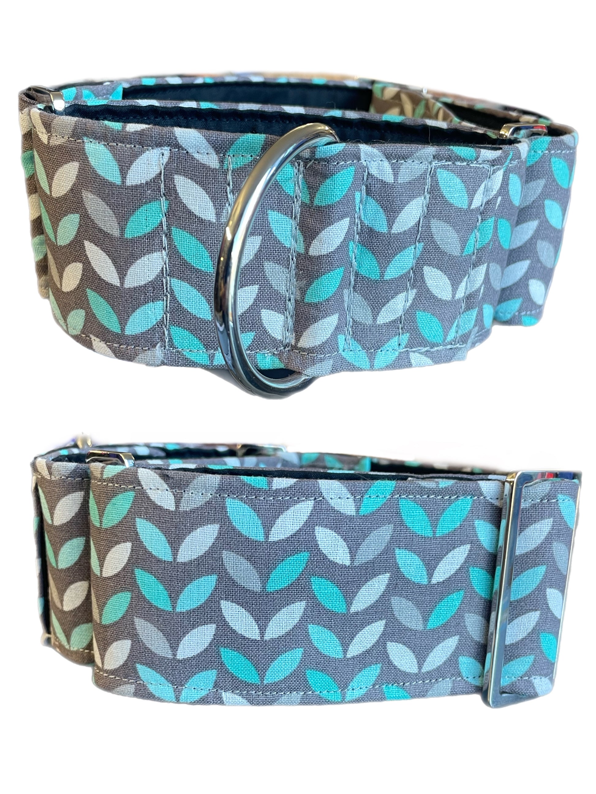 Cotton covered super soft greyhound Martingale 50mm width grey & mint aqua design whippet 38mm collar