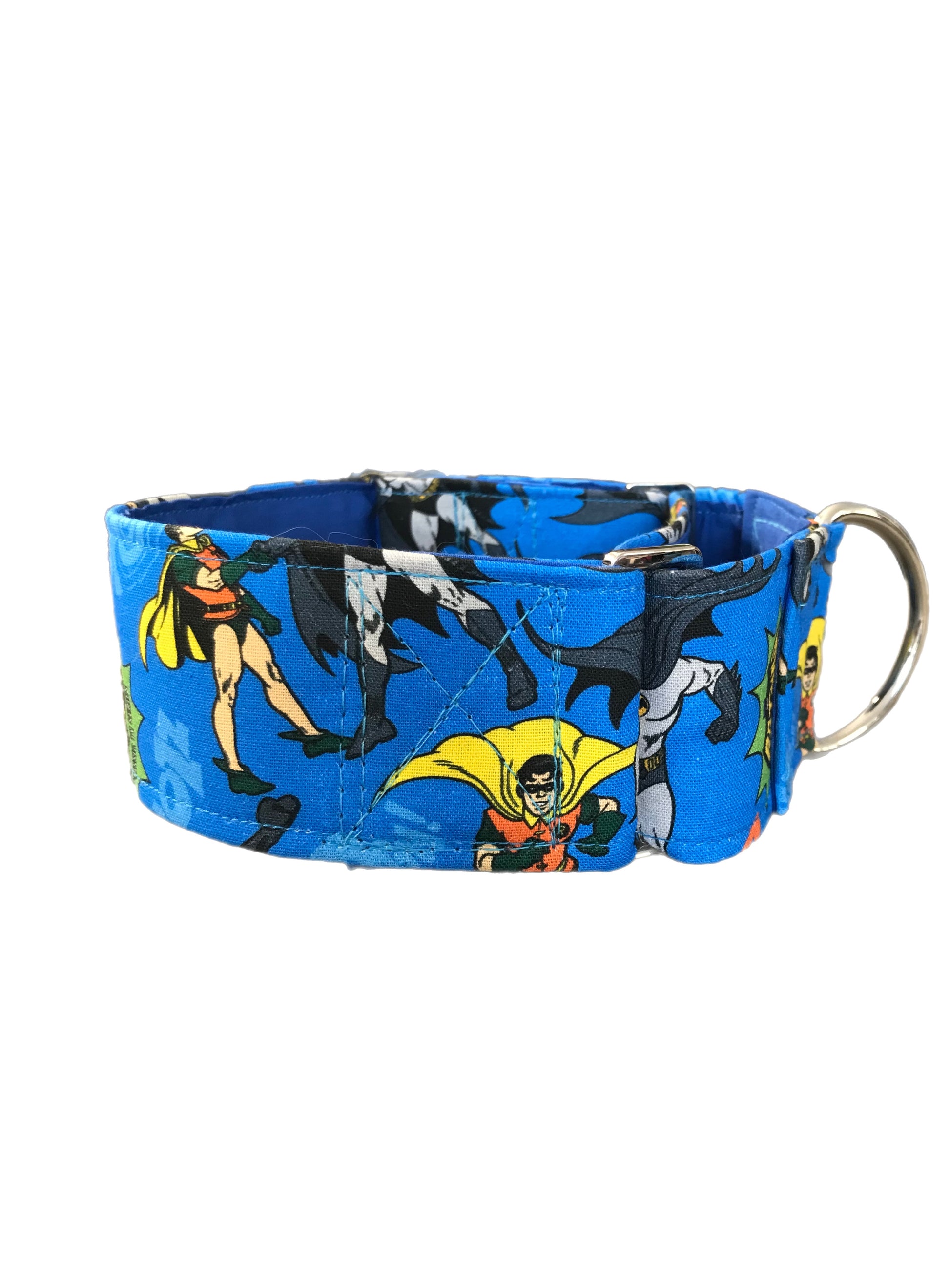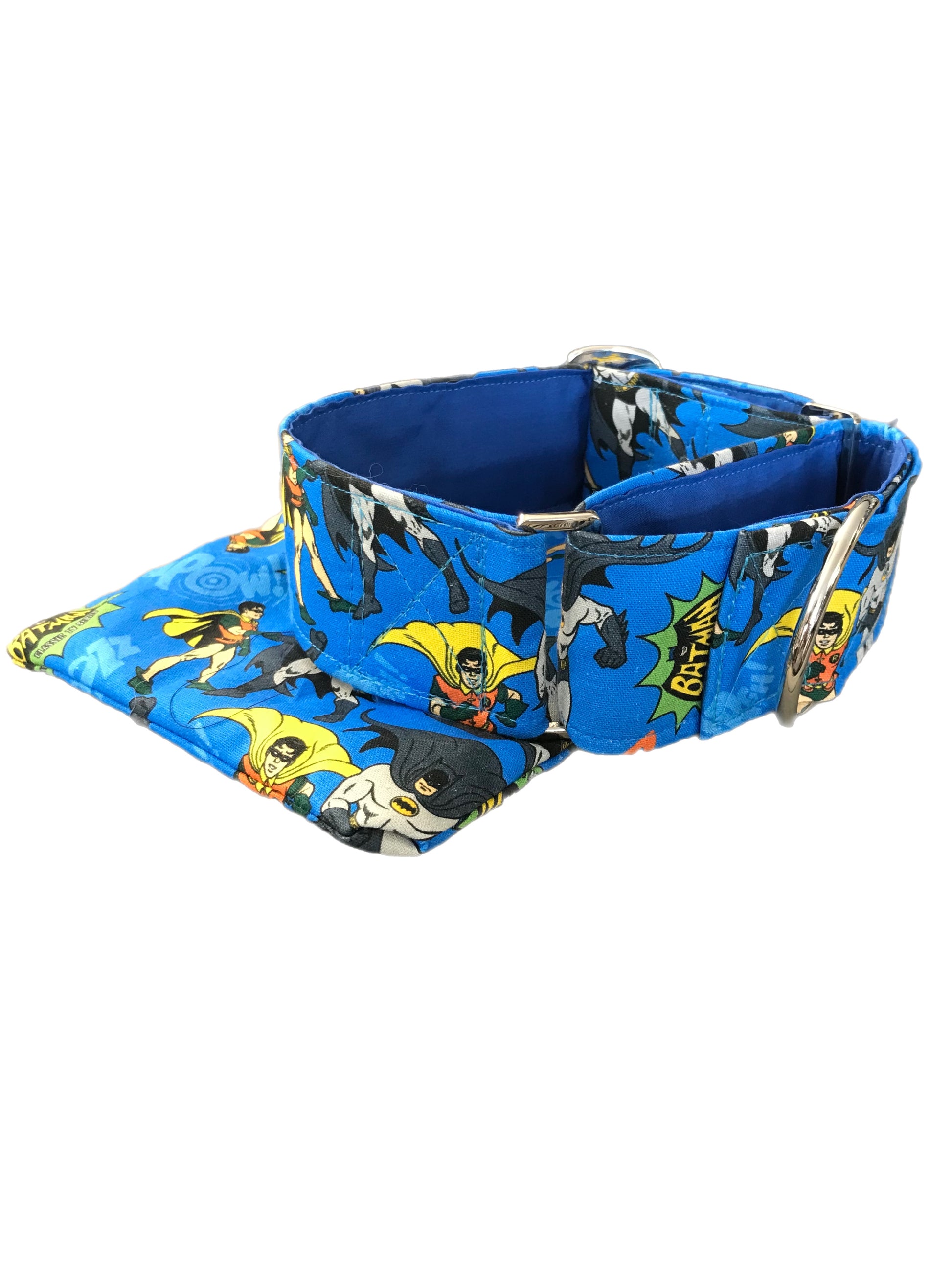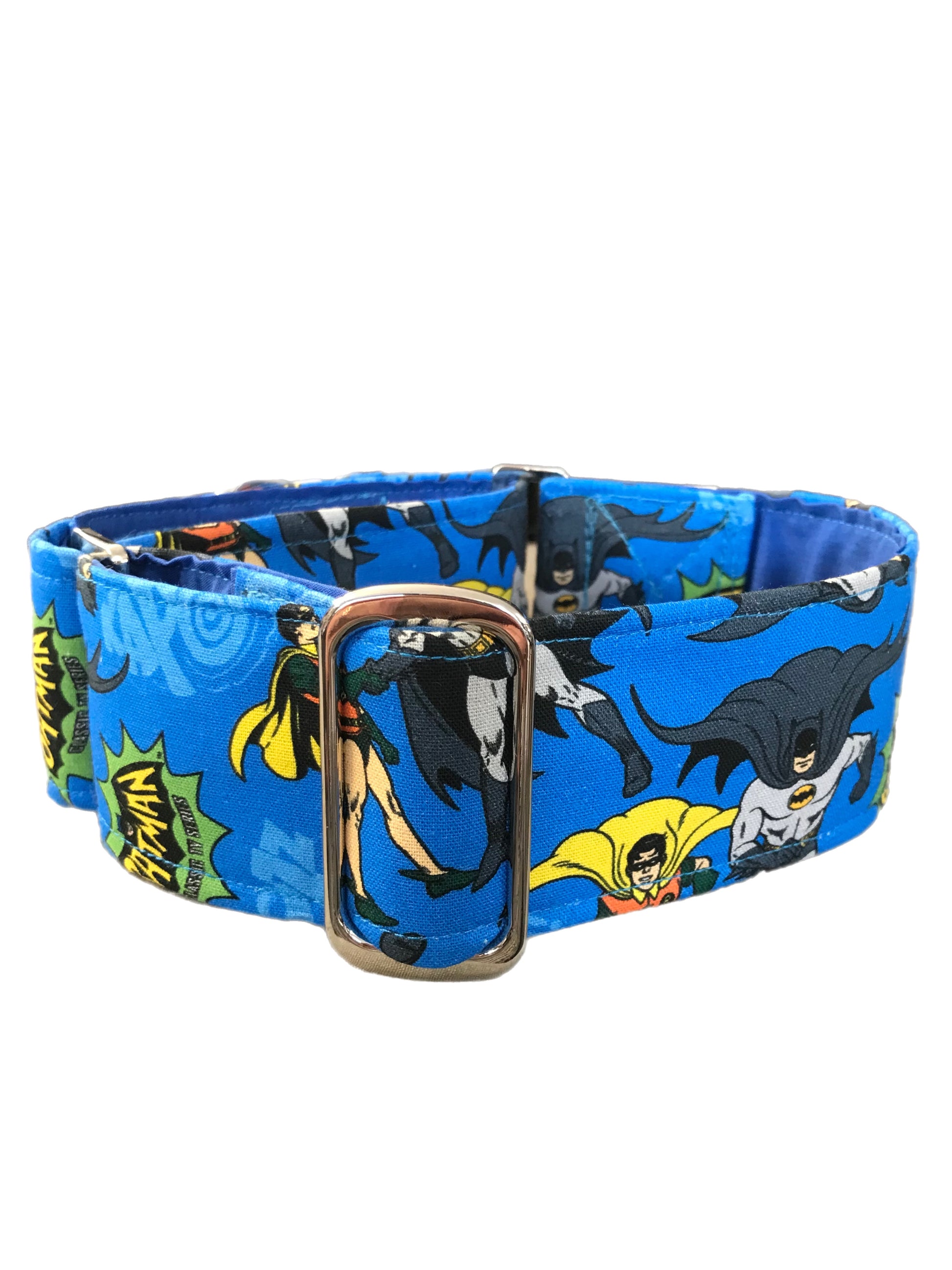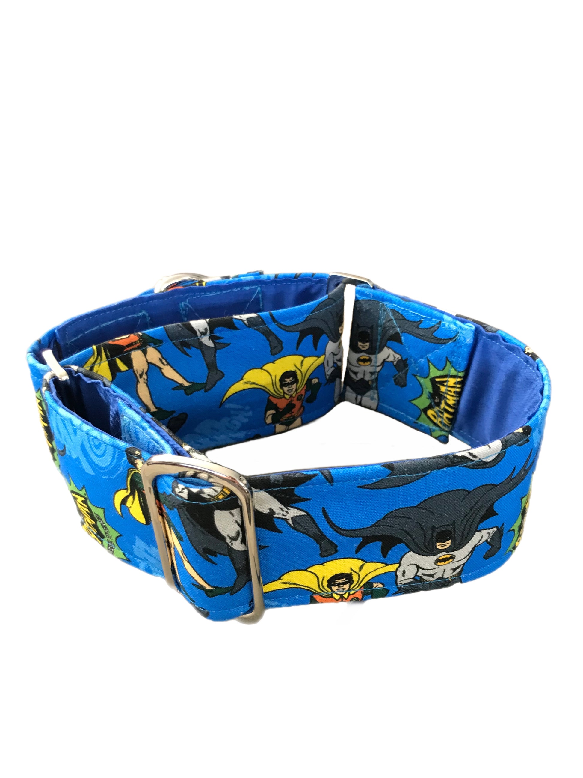 Cotton covered greyhound Martingale collar blue Batman and Robin 50mm width super soft