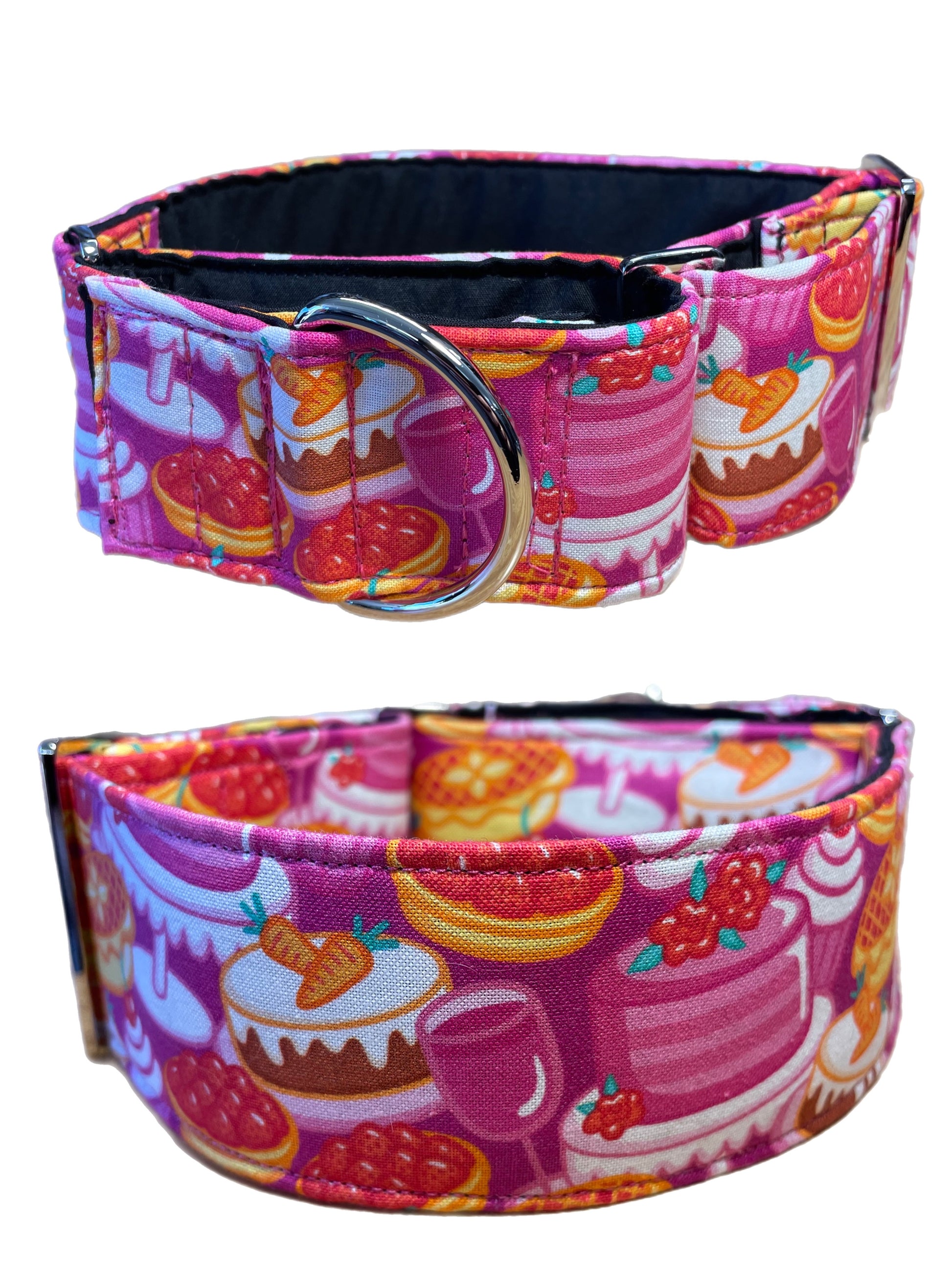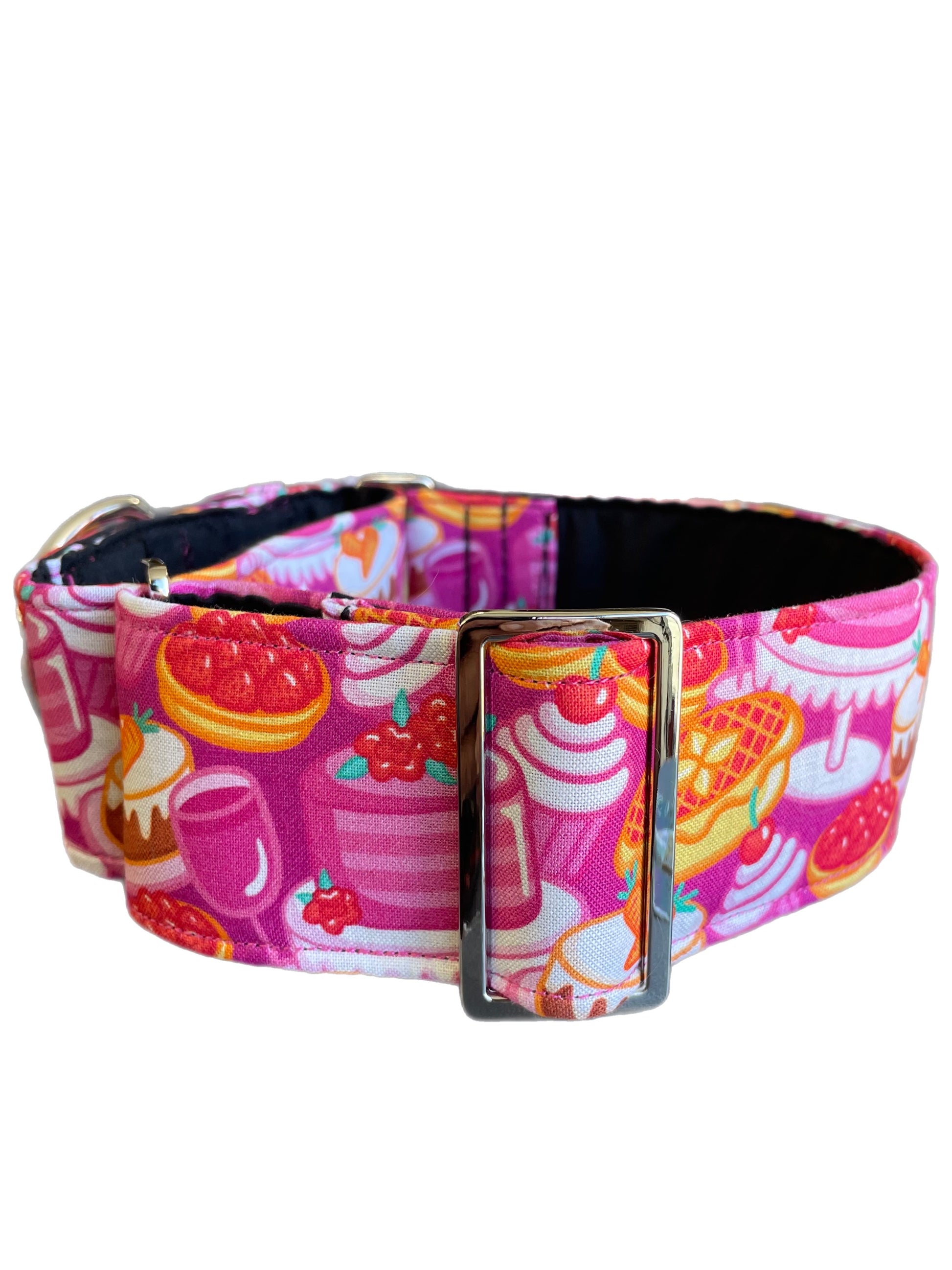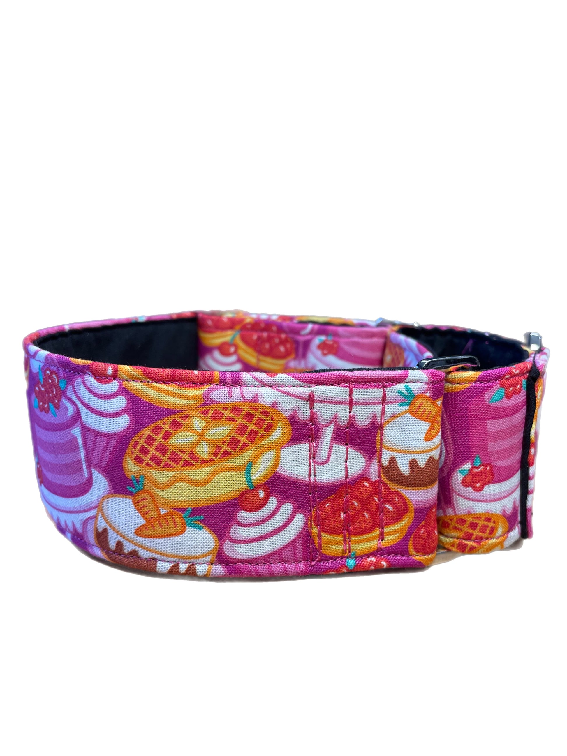 Pink cupcakes and tarts Greyhound Martingale collar cotton covered 50mm width super soft