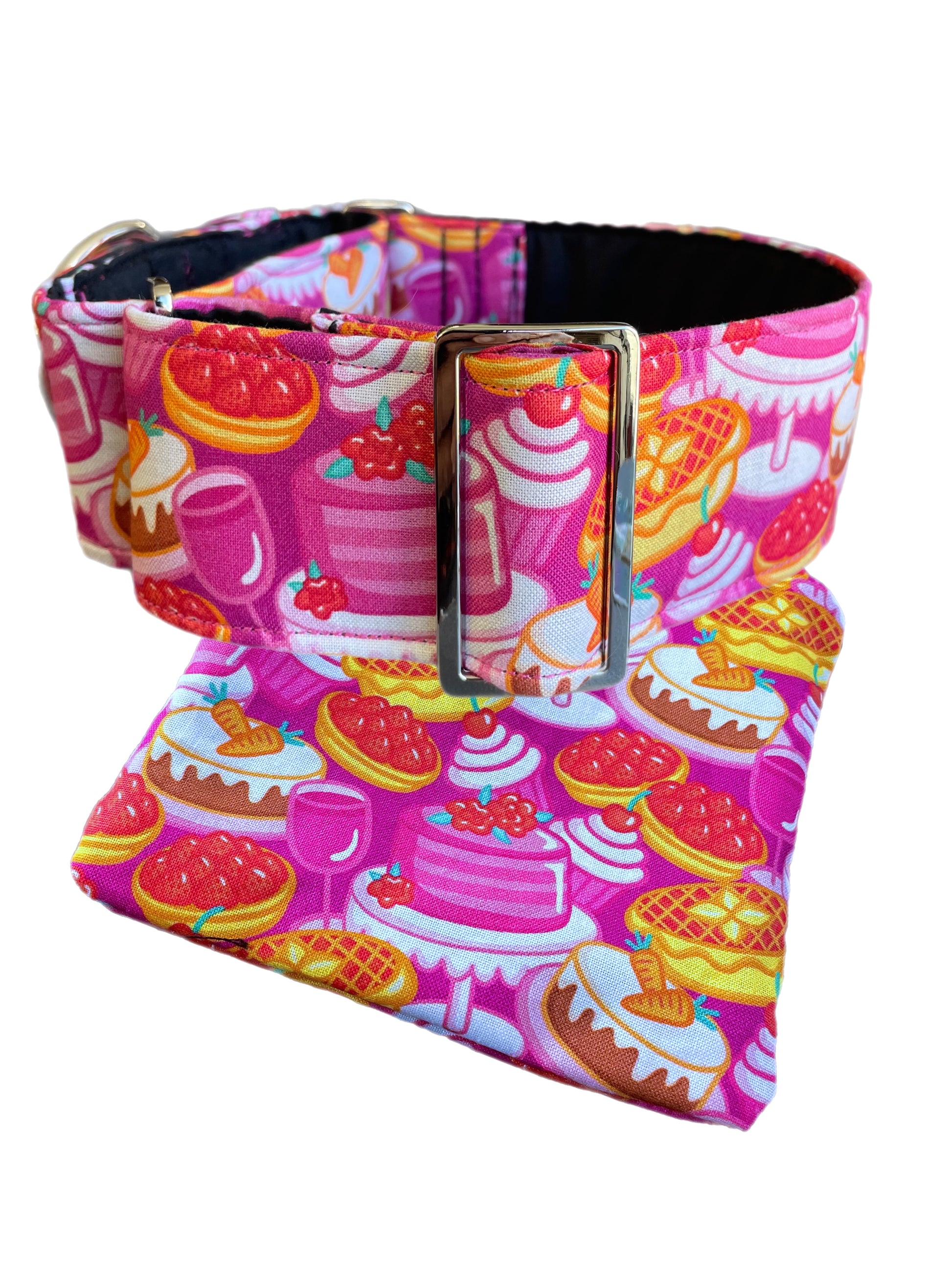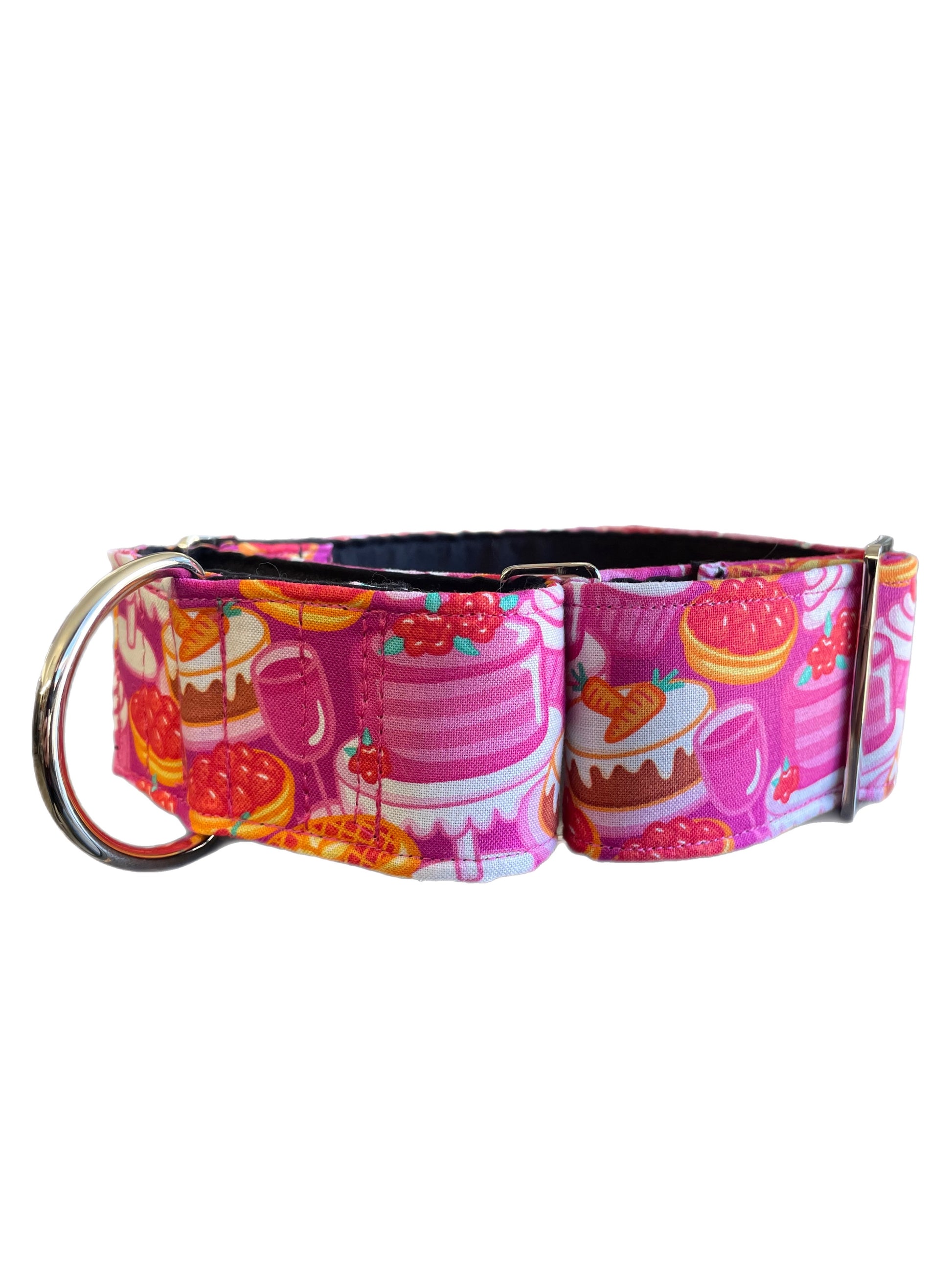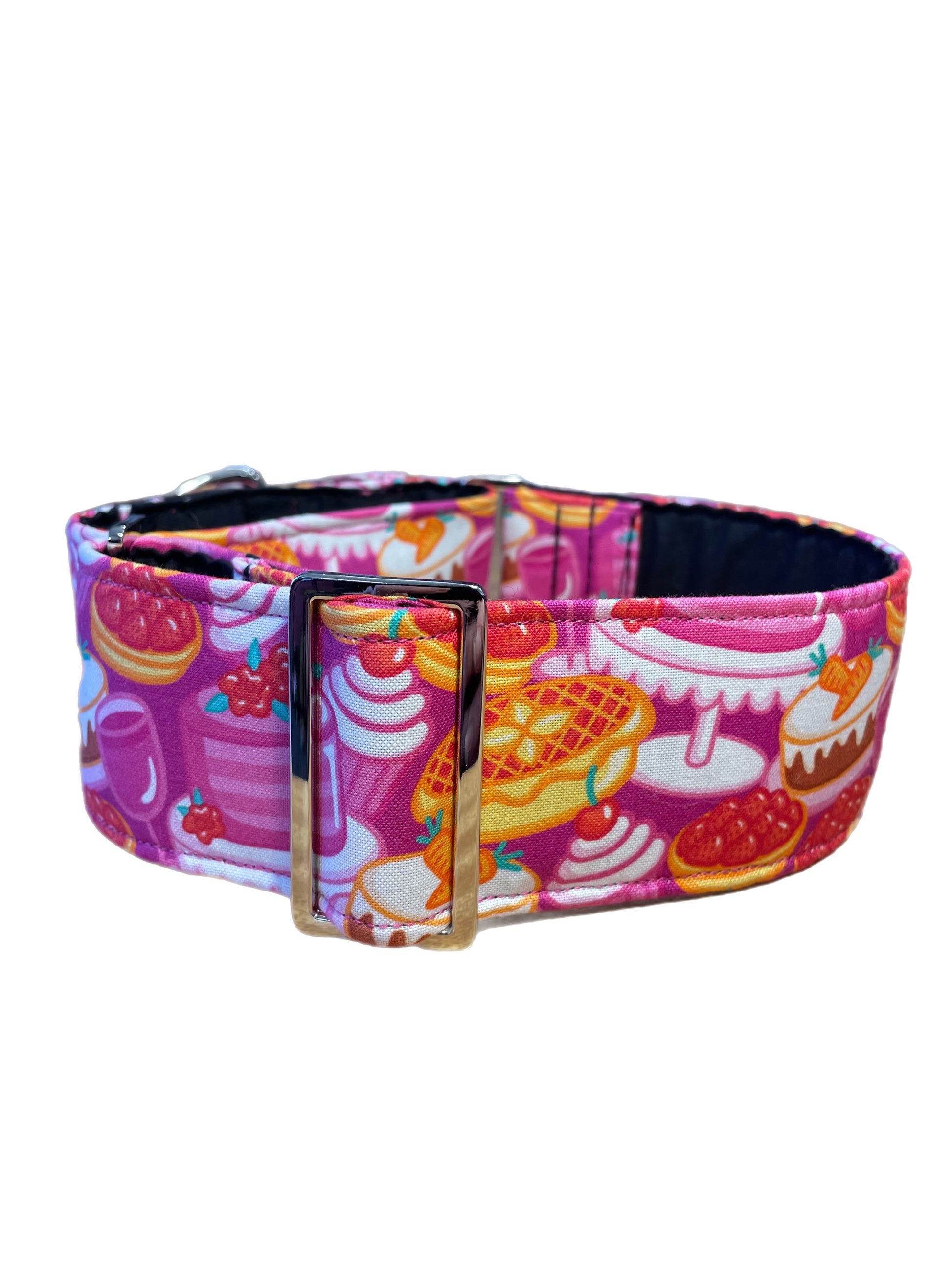 Pink cupcakes and tarts Greyhound Martingale collar cotton covered 50mm width super soft