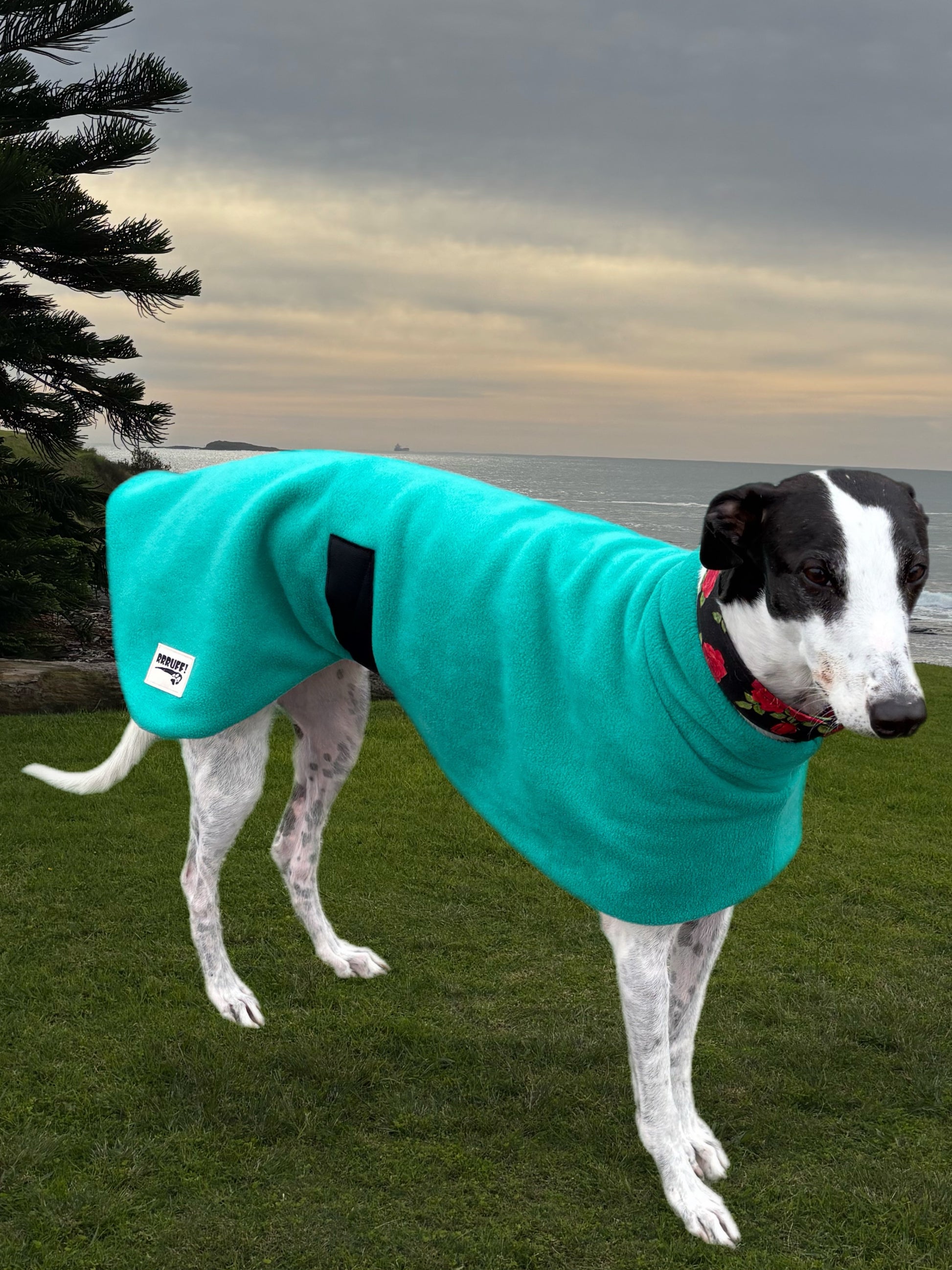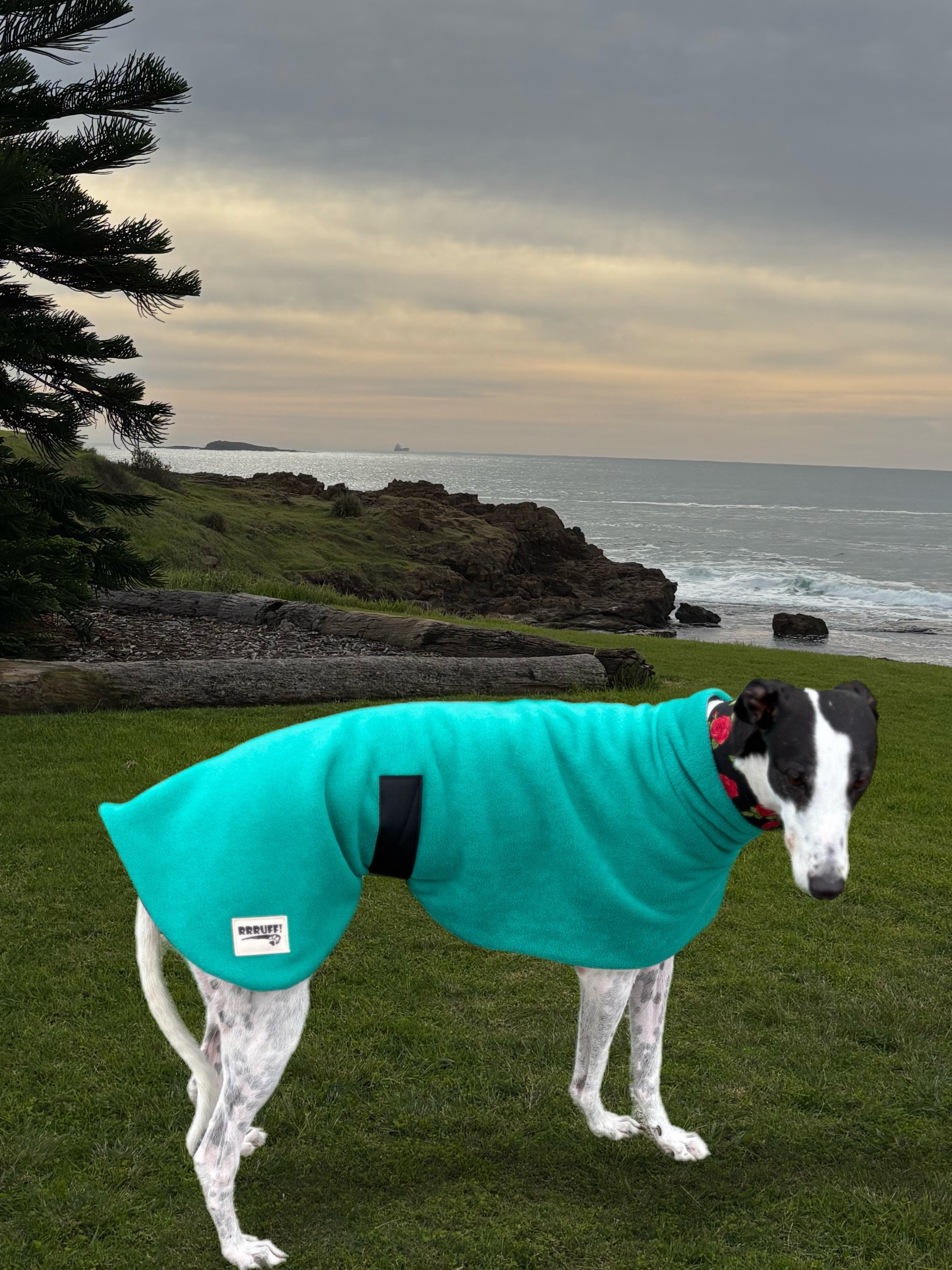 *Every coat comes with a fleece sleeve to place over the Velcro belly band if required for a softer feel against your hound’s tummy