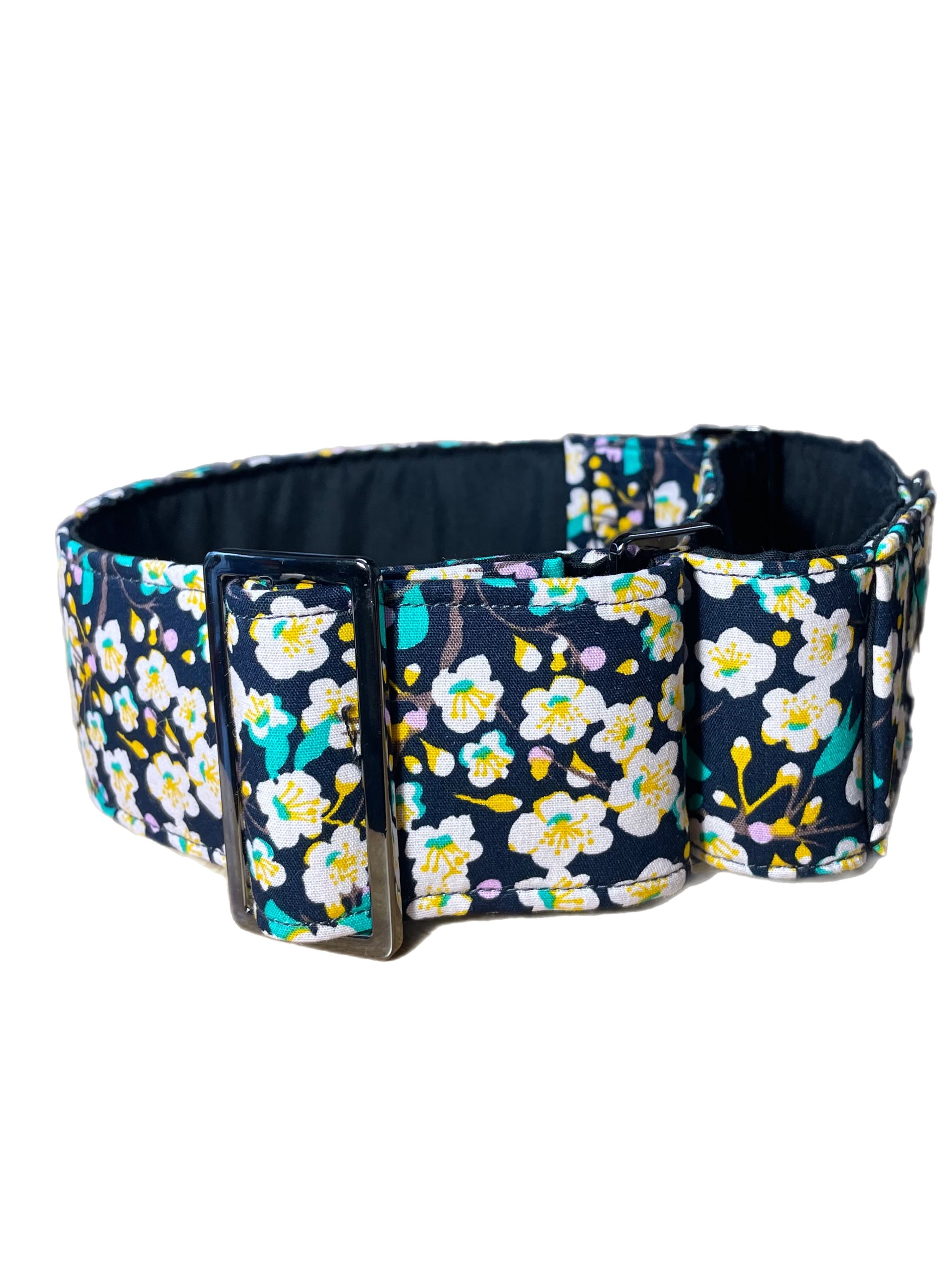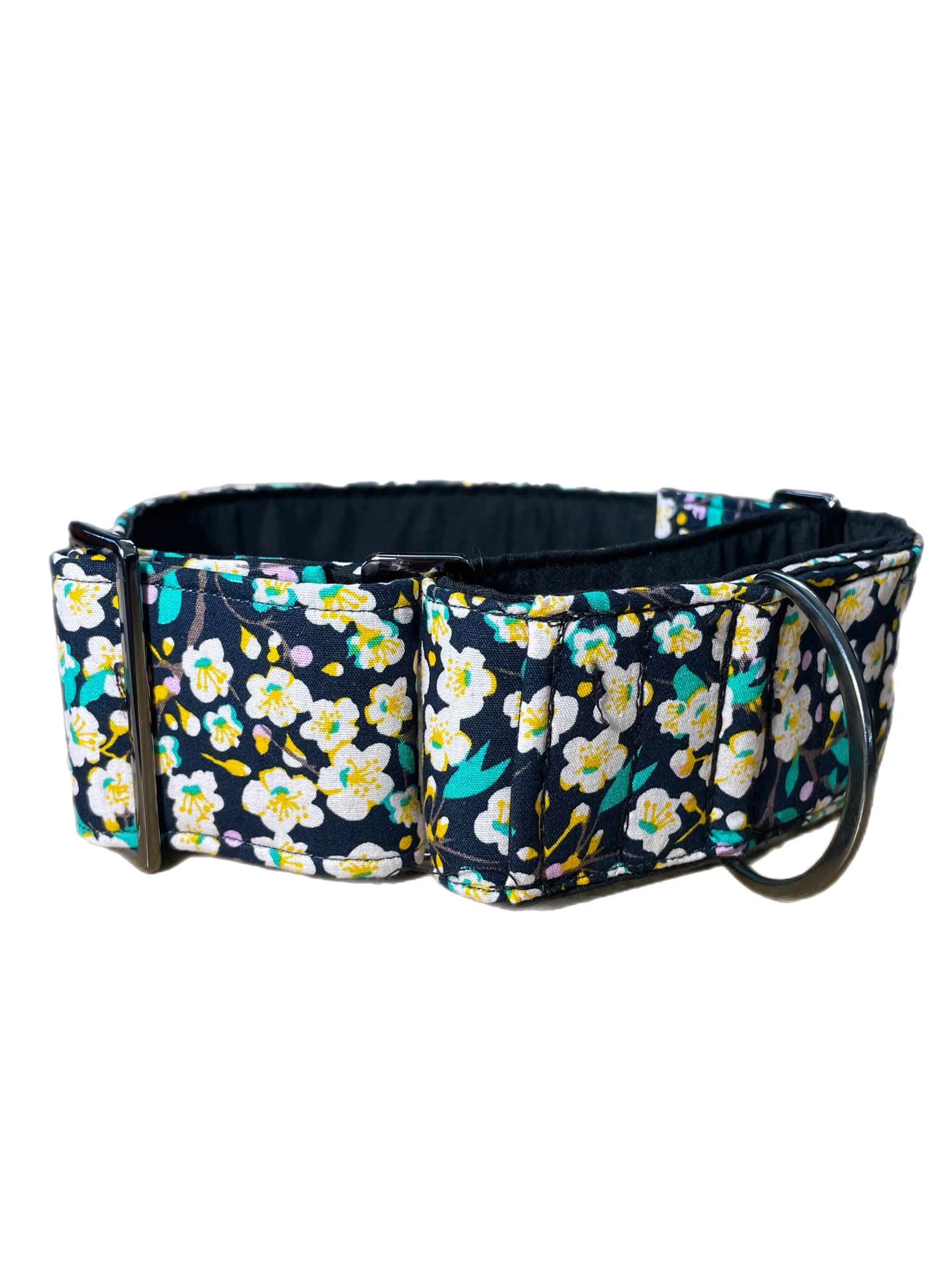Floral Cotton covered greyhound Martingale collar 50mm wide super soft whippet 38mm