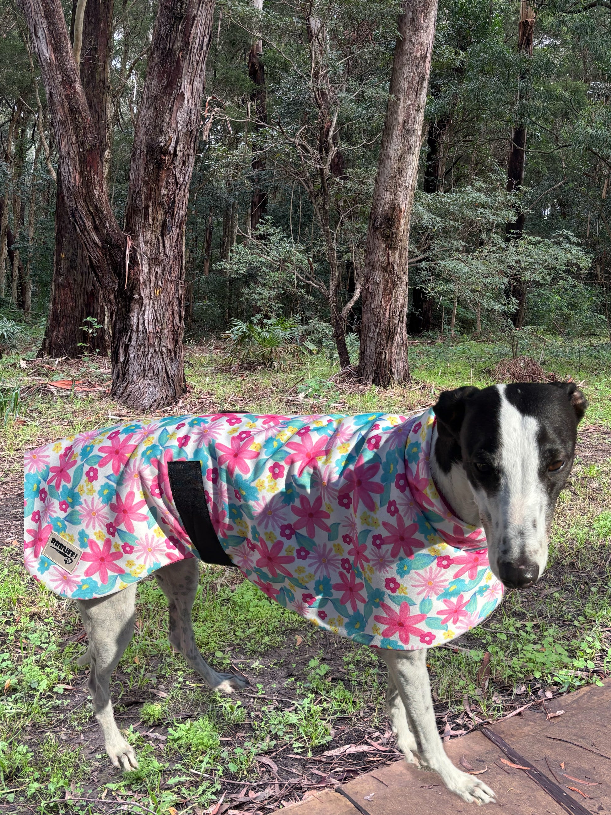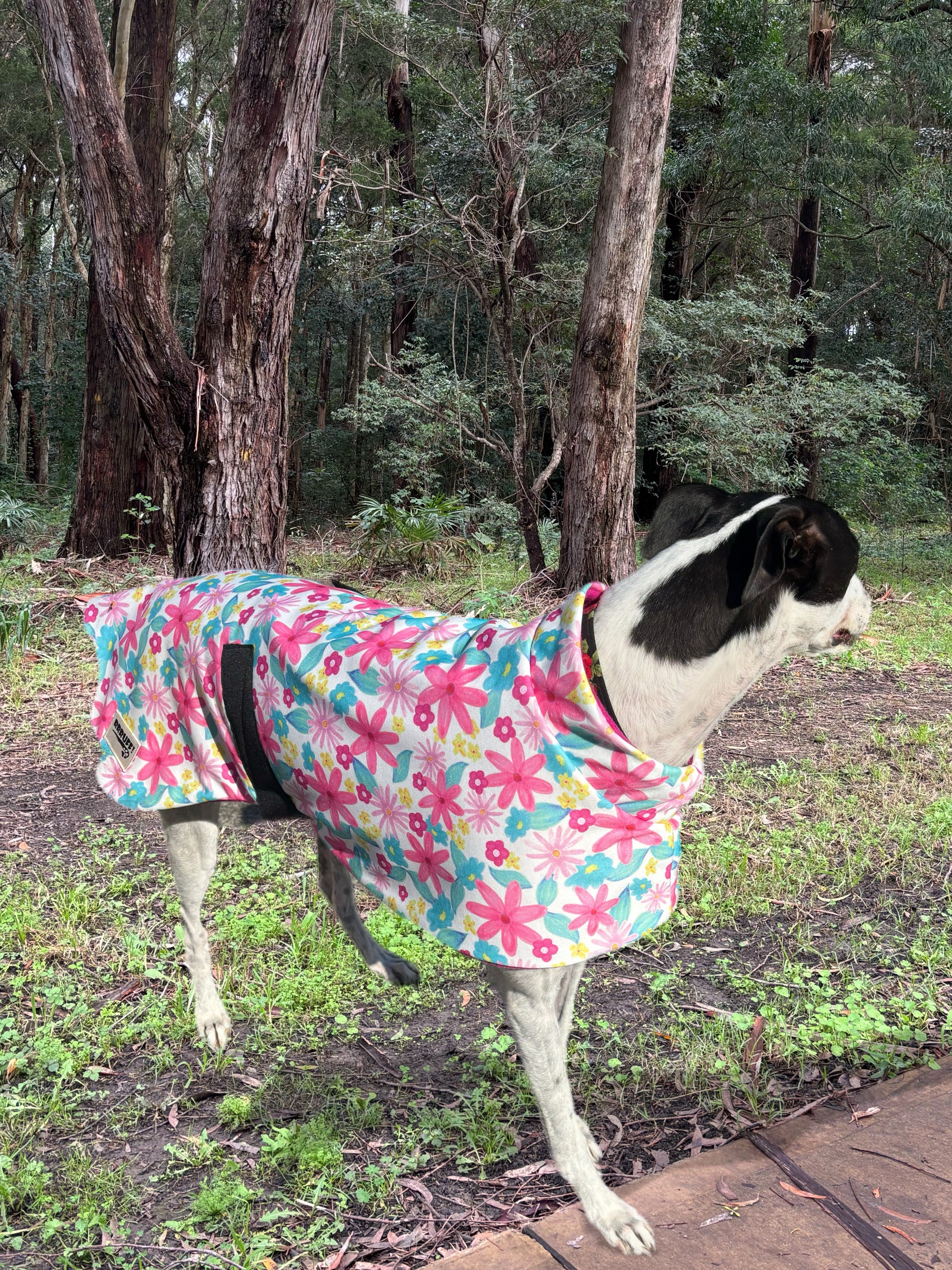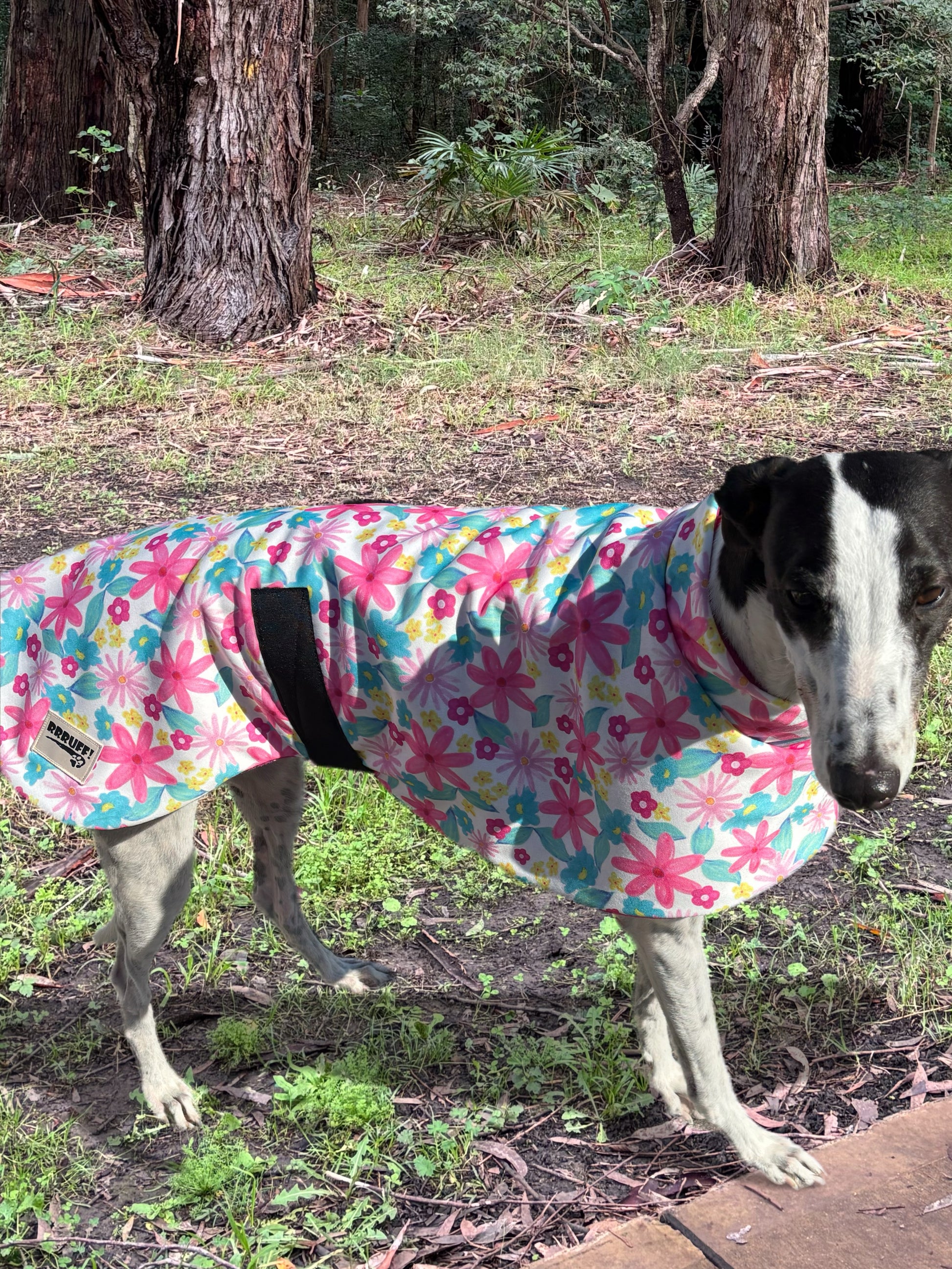 *Every coat comes with a fleece sleeve to place over the Velcro belly band if required for a softer feel against your hound’s tummy