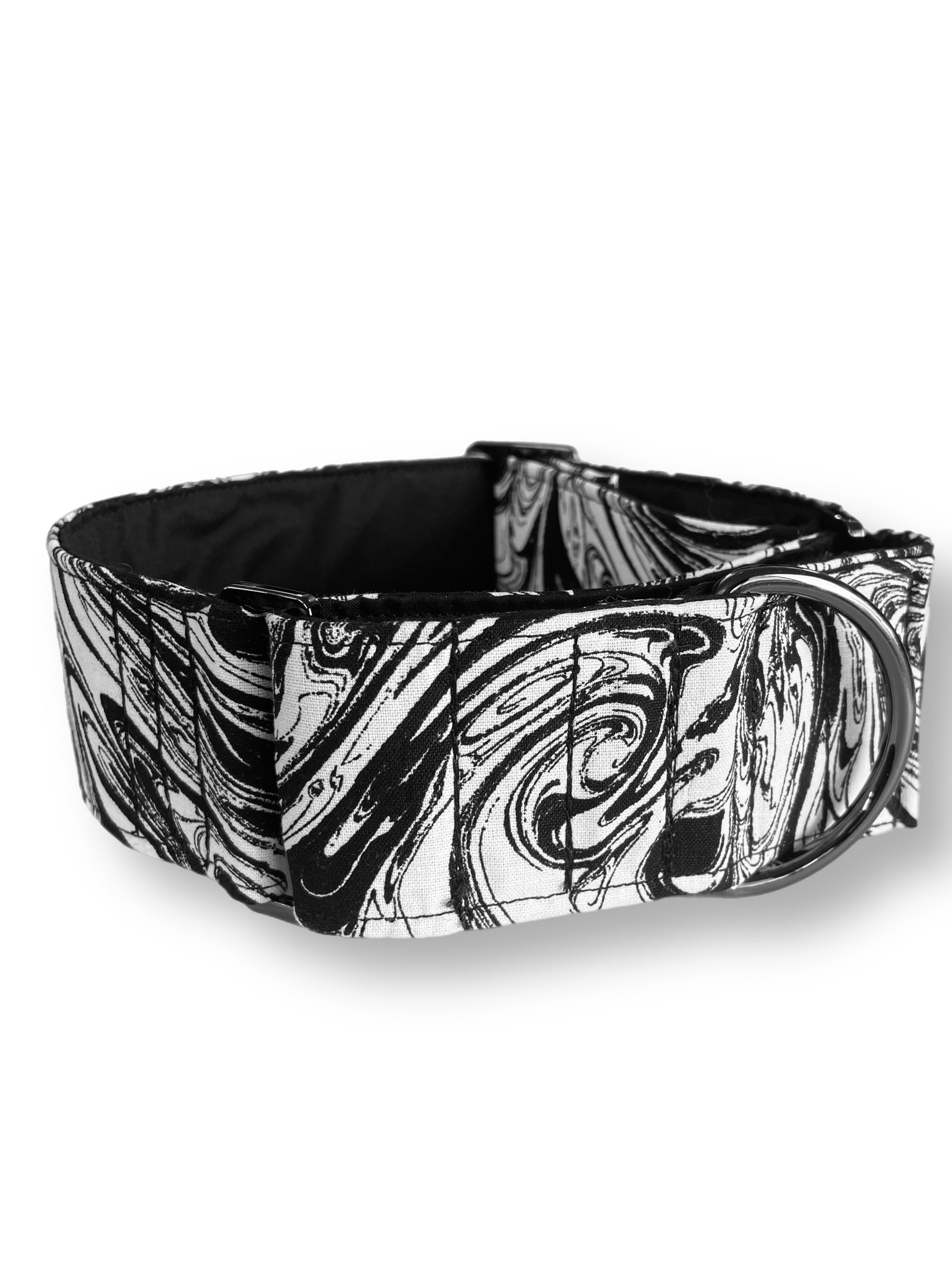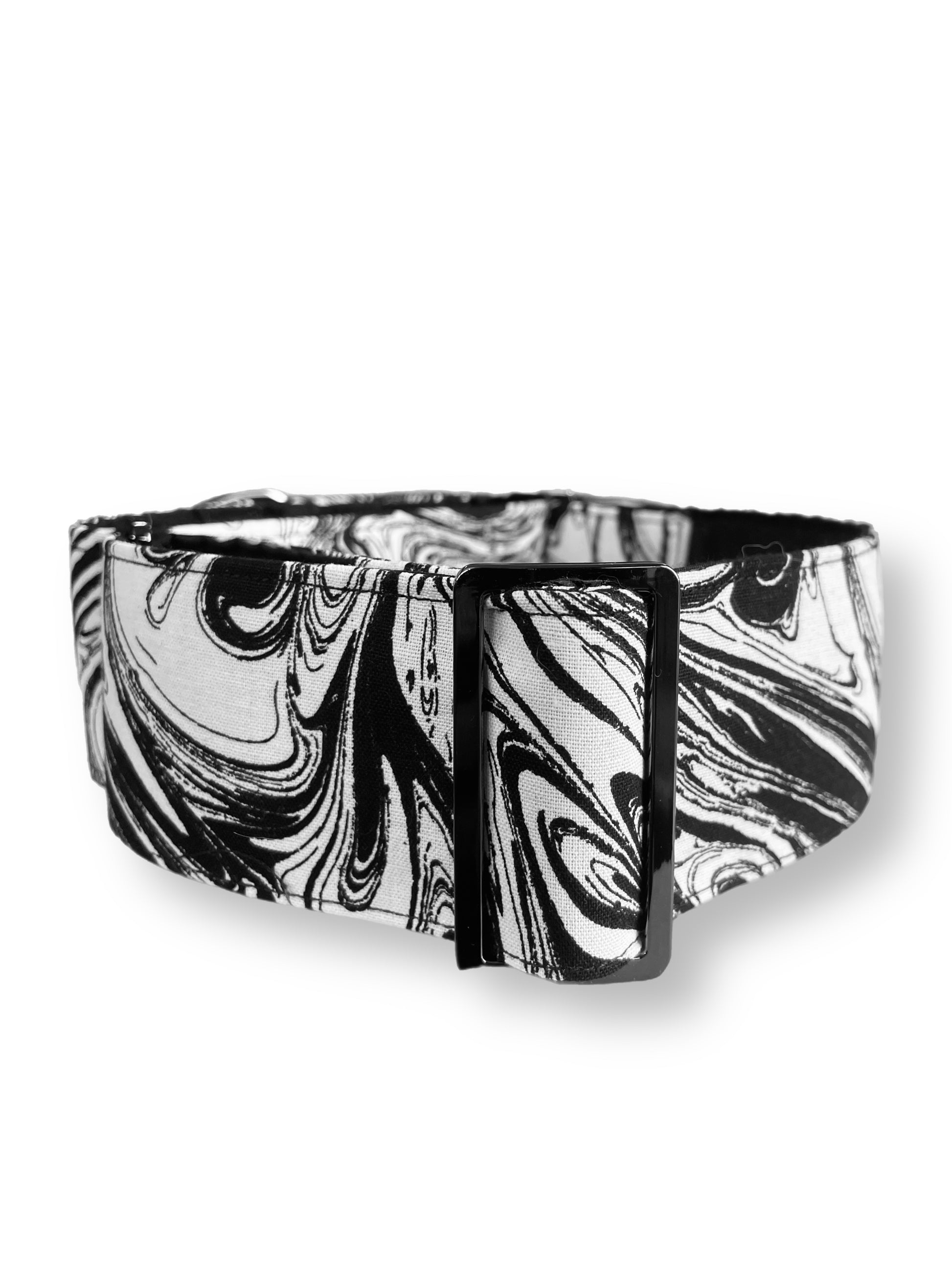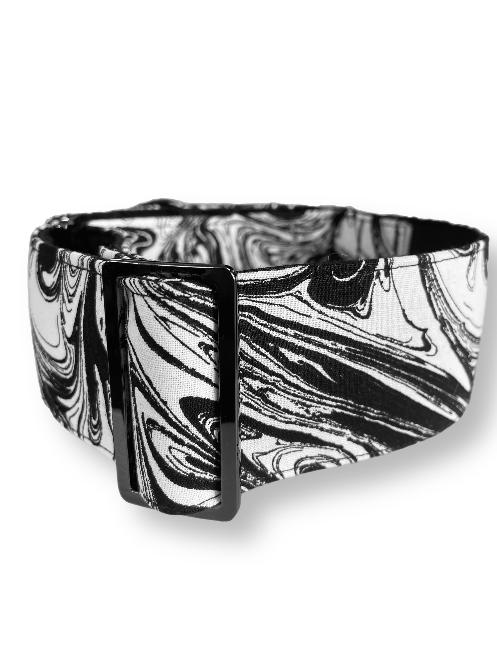Monochrome swirls in b&w greyhound 50mm martingale cotton super soft
