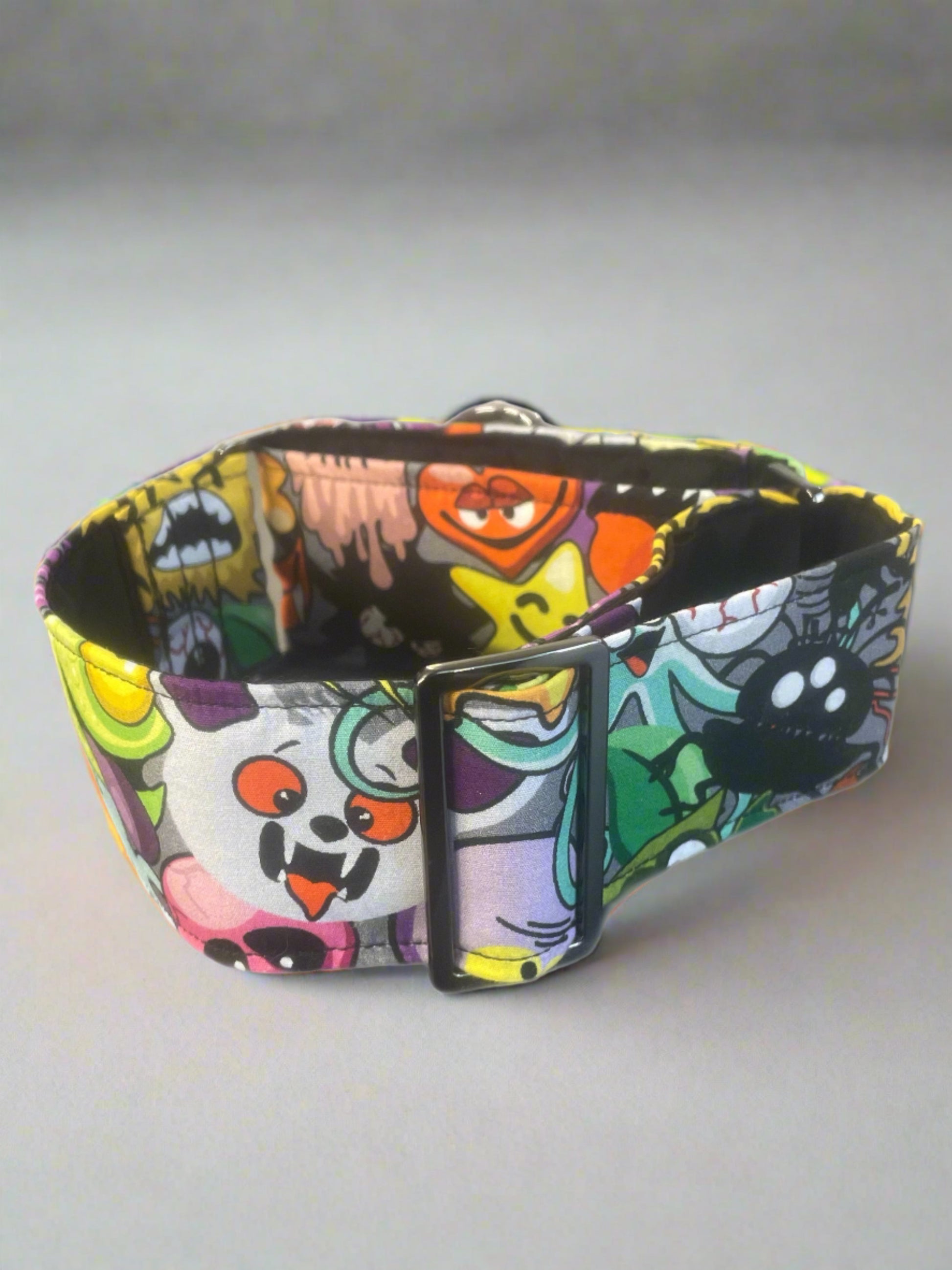 Spooky funny scary greyhound Martingale collar cotton covered 50mm width super soft
