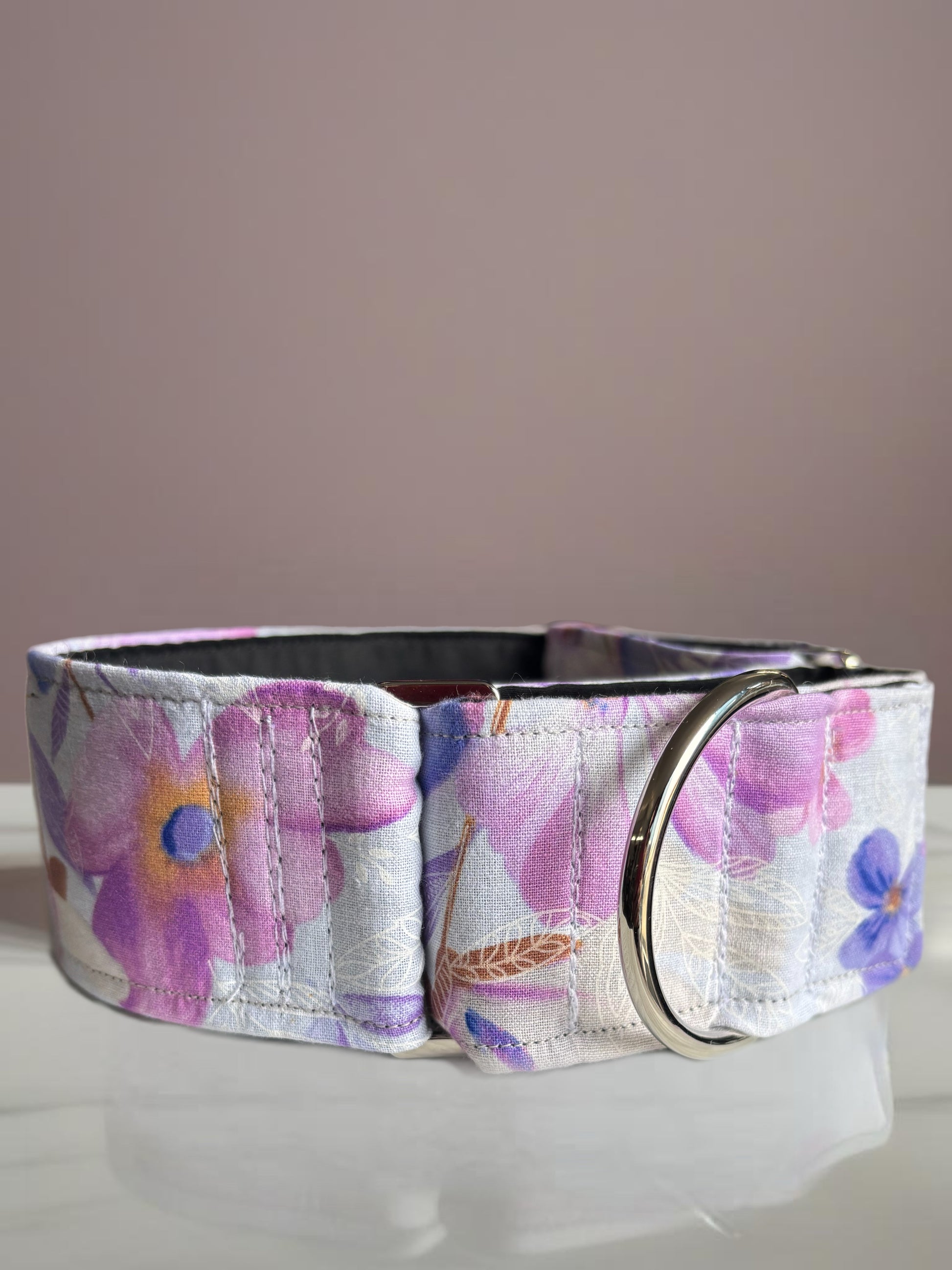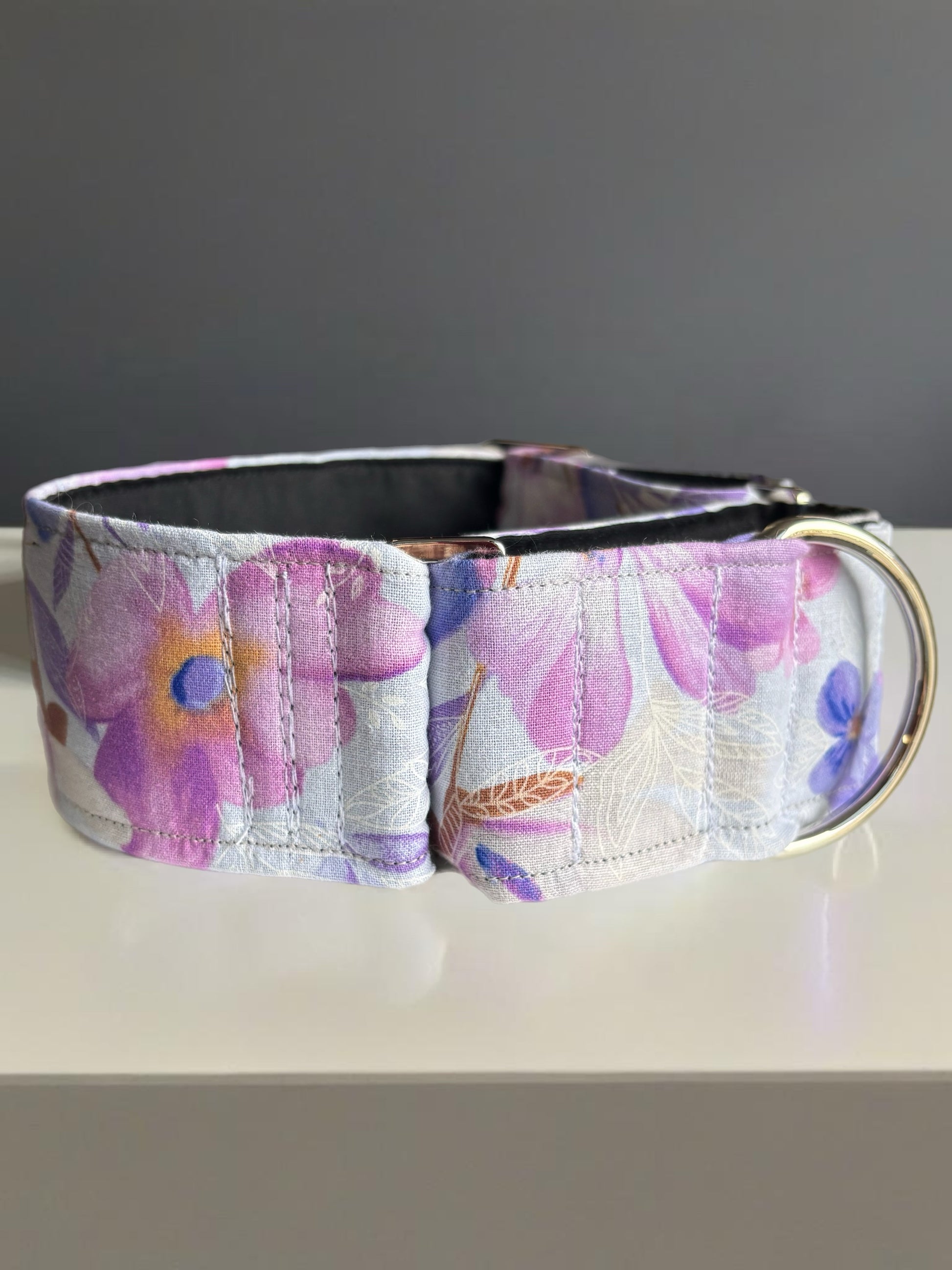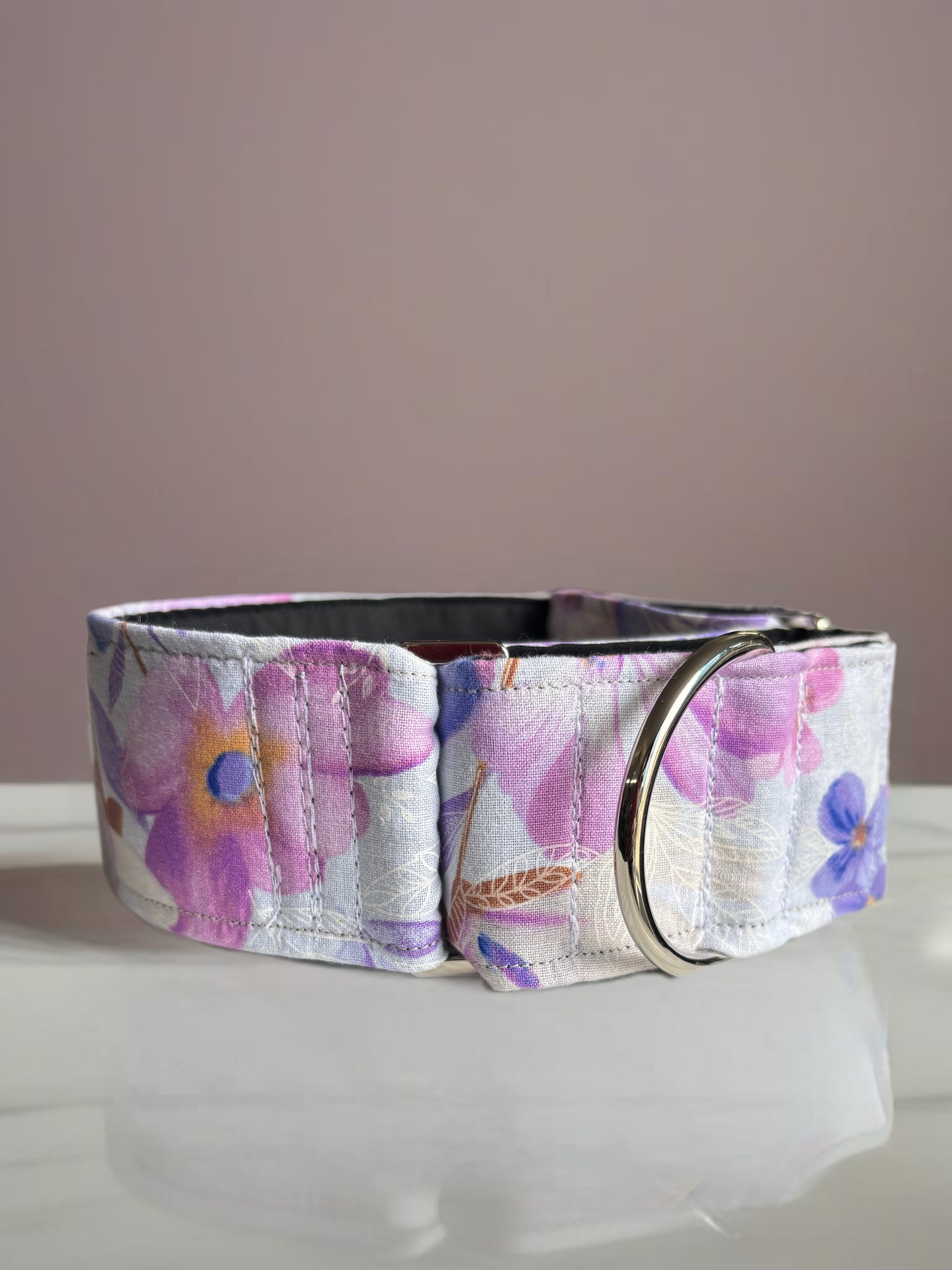 Mauve floral Greyhound Martingale collar cotton covered 50mm width soft