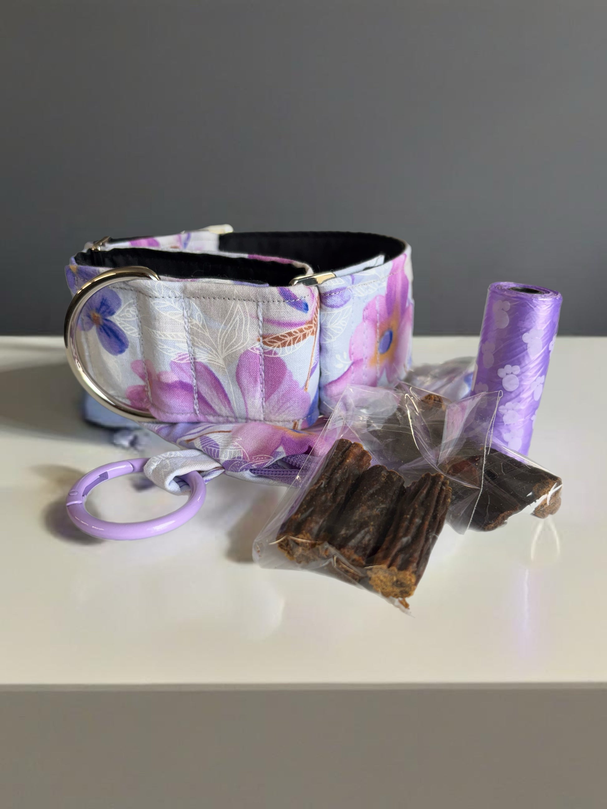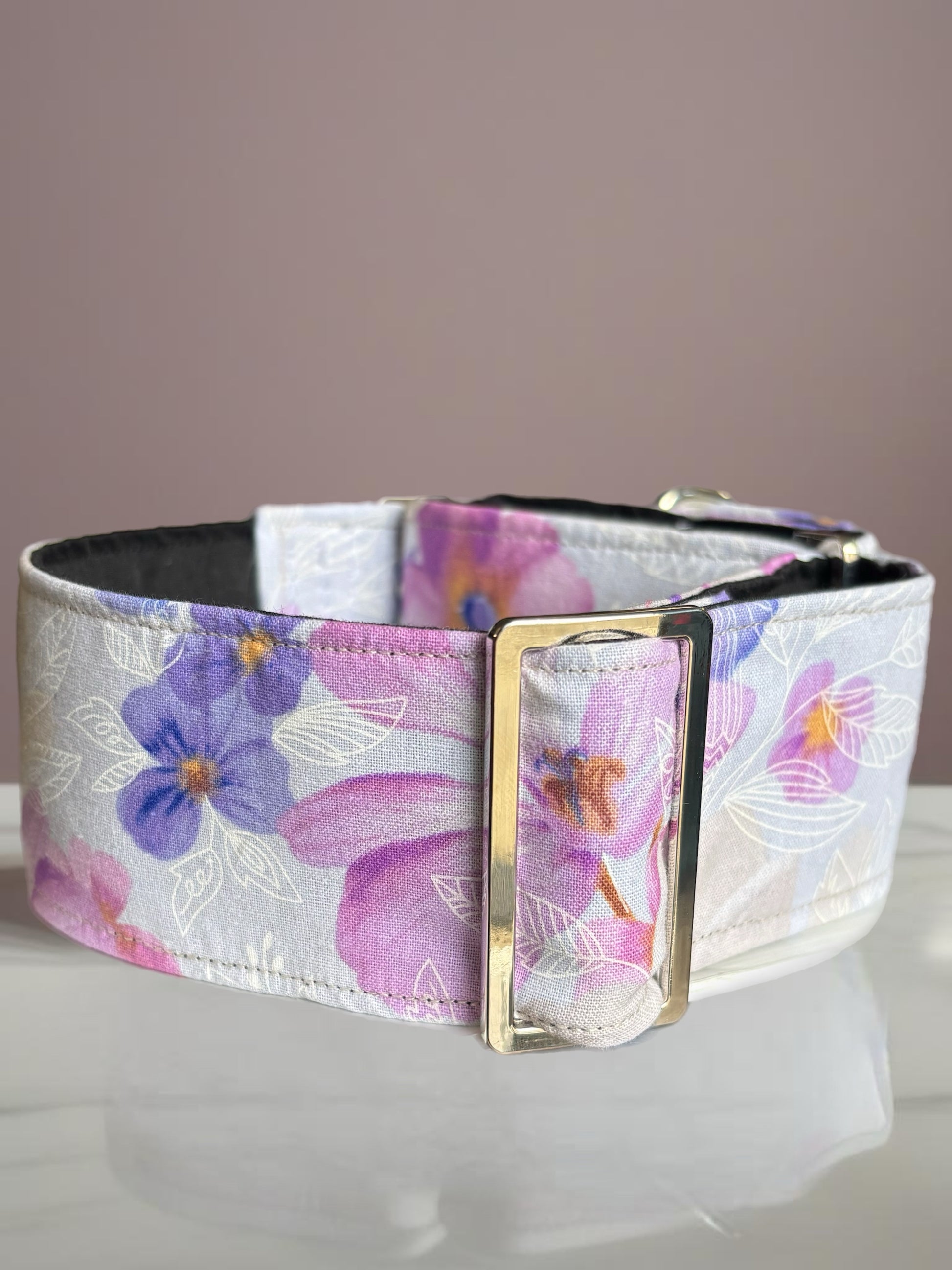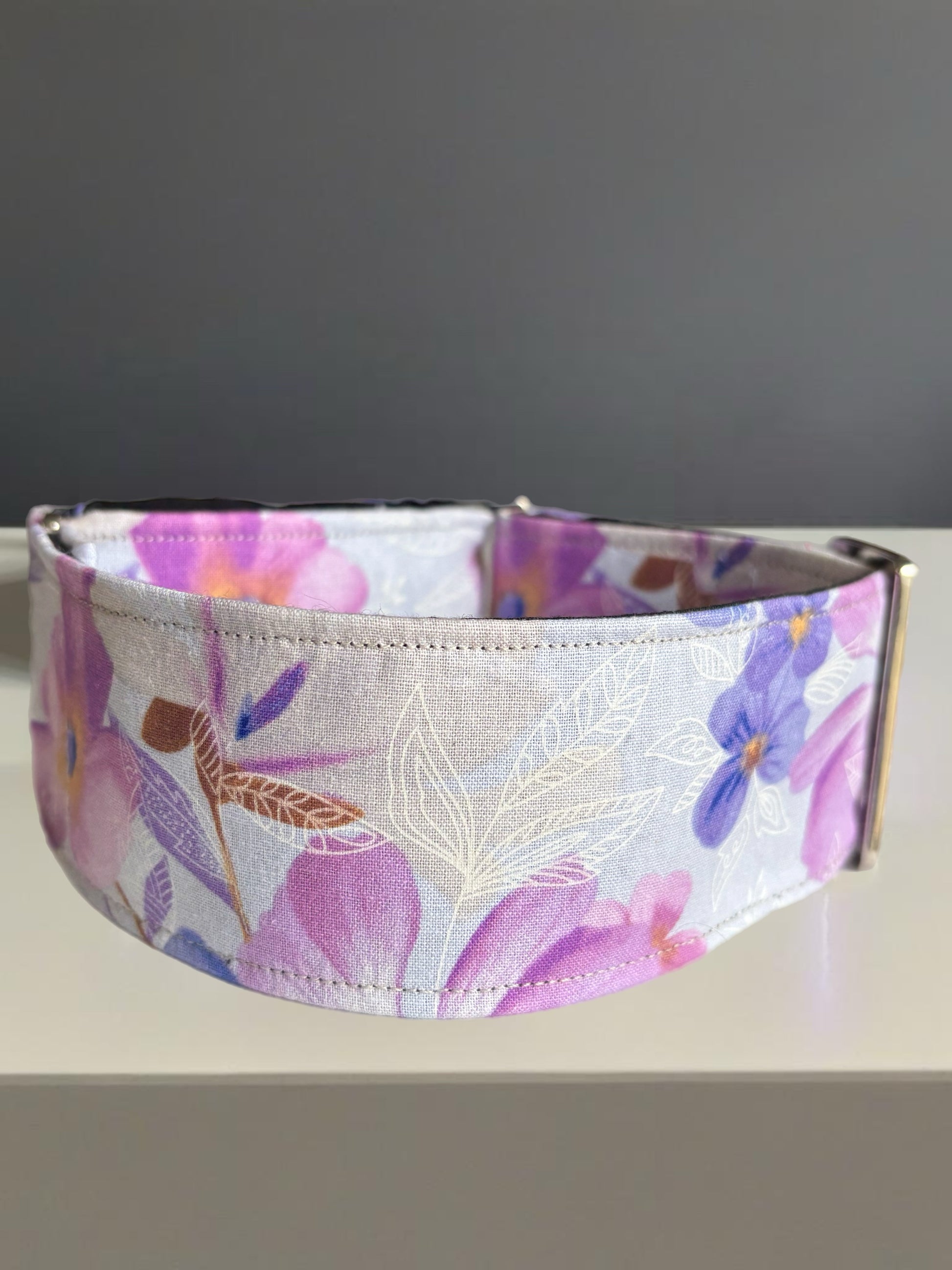 Mauve floral Greyhound Martingale collar cotton covered 50mm width soft
