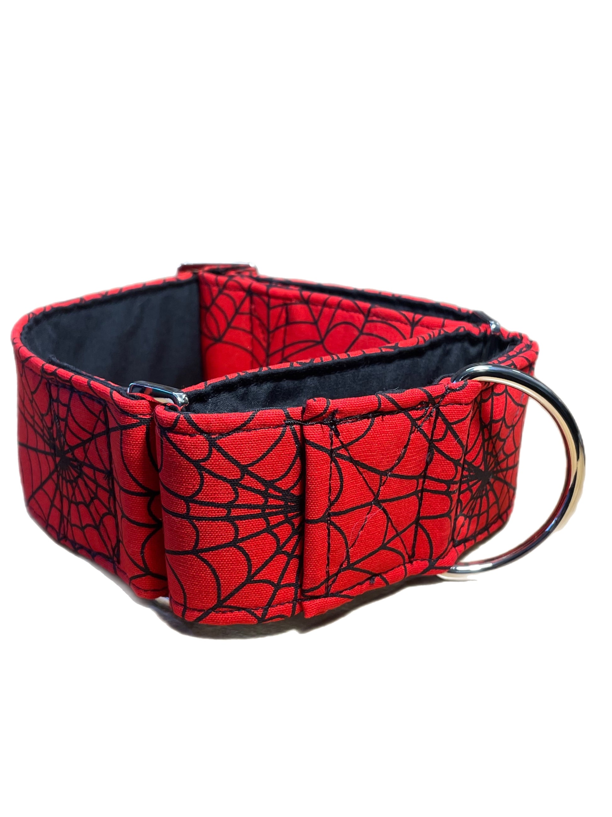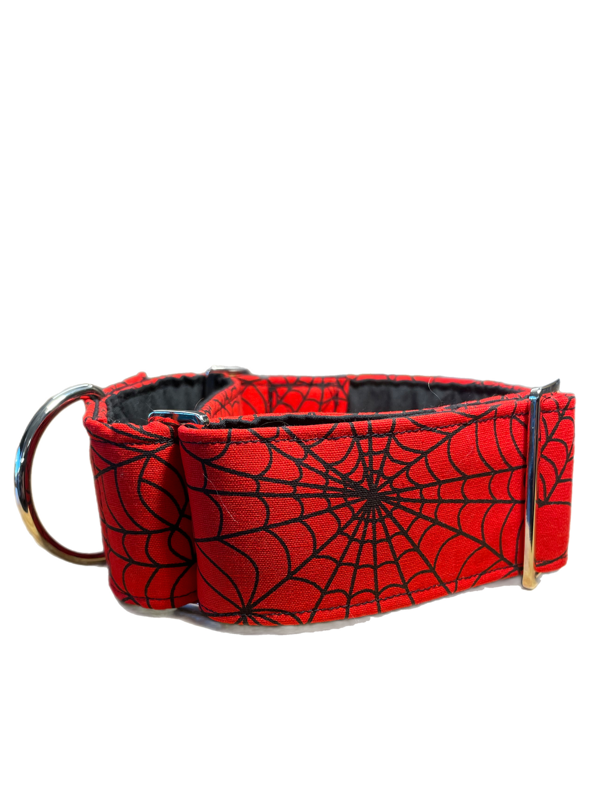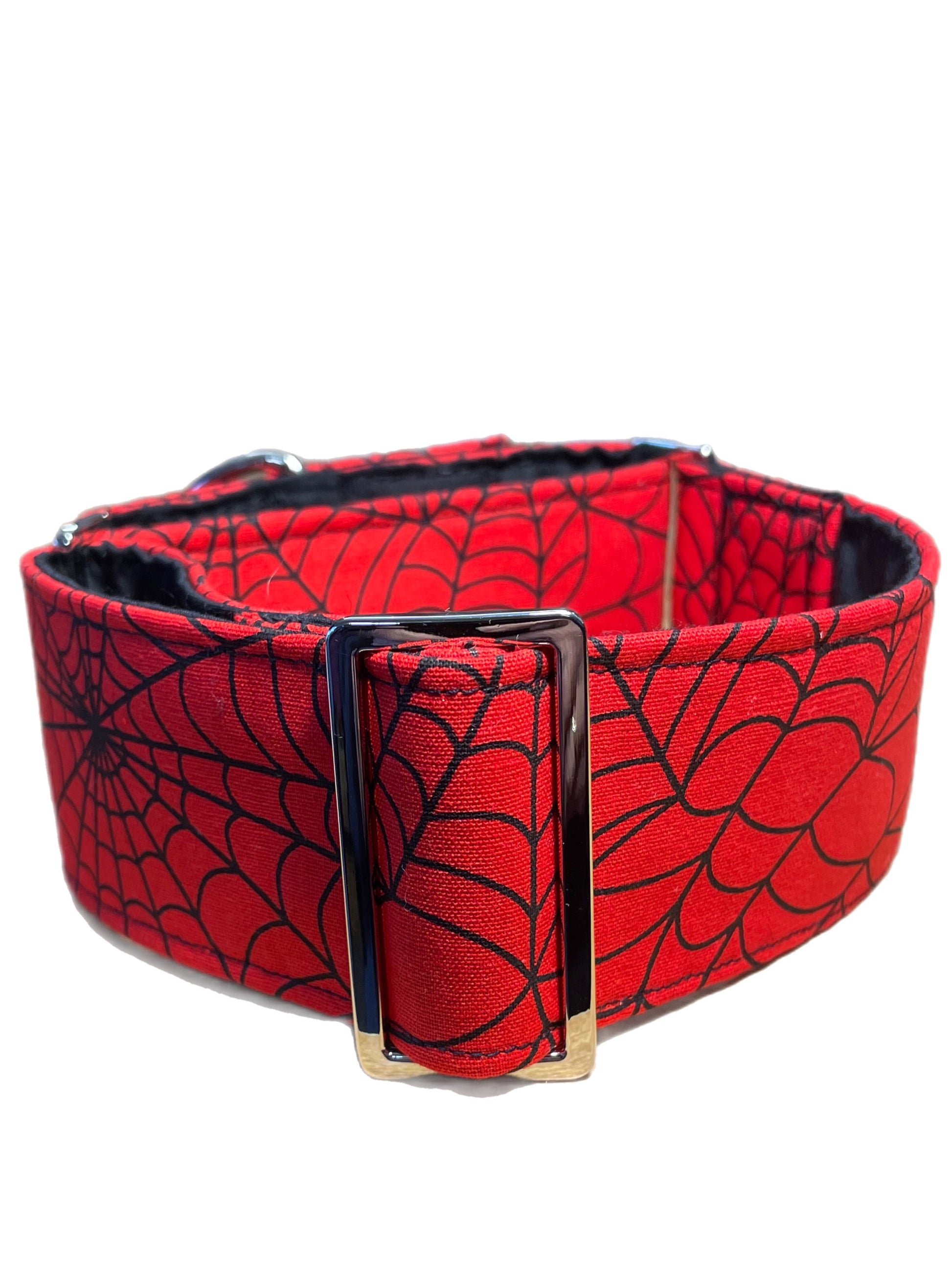 Greyhound Martingale collar in red Spiderman webs cotton wide 50cms