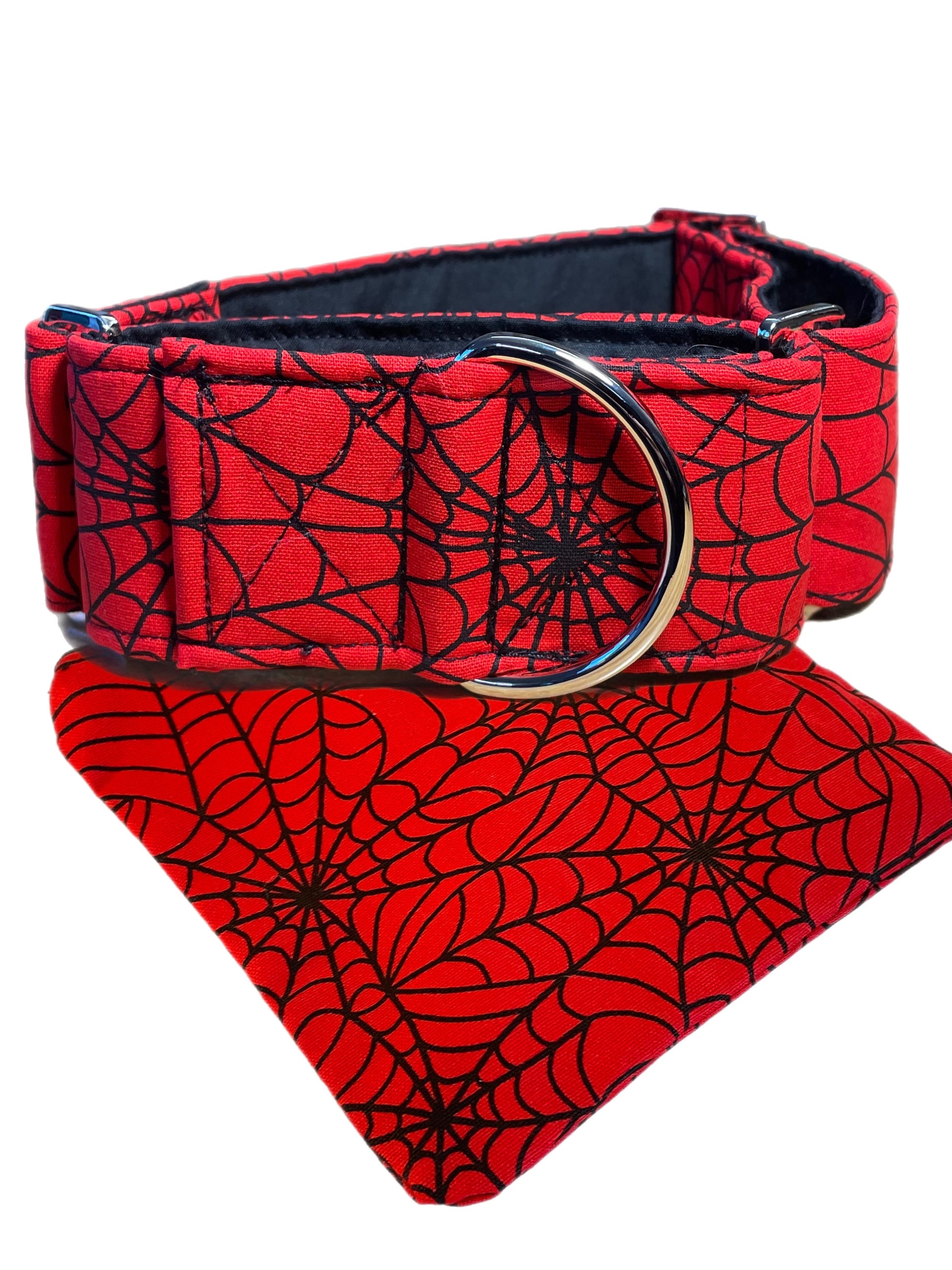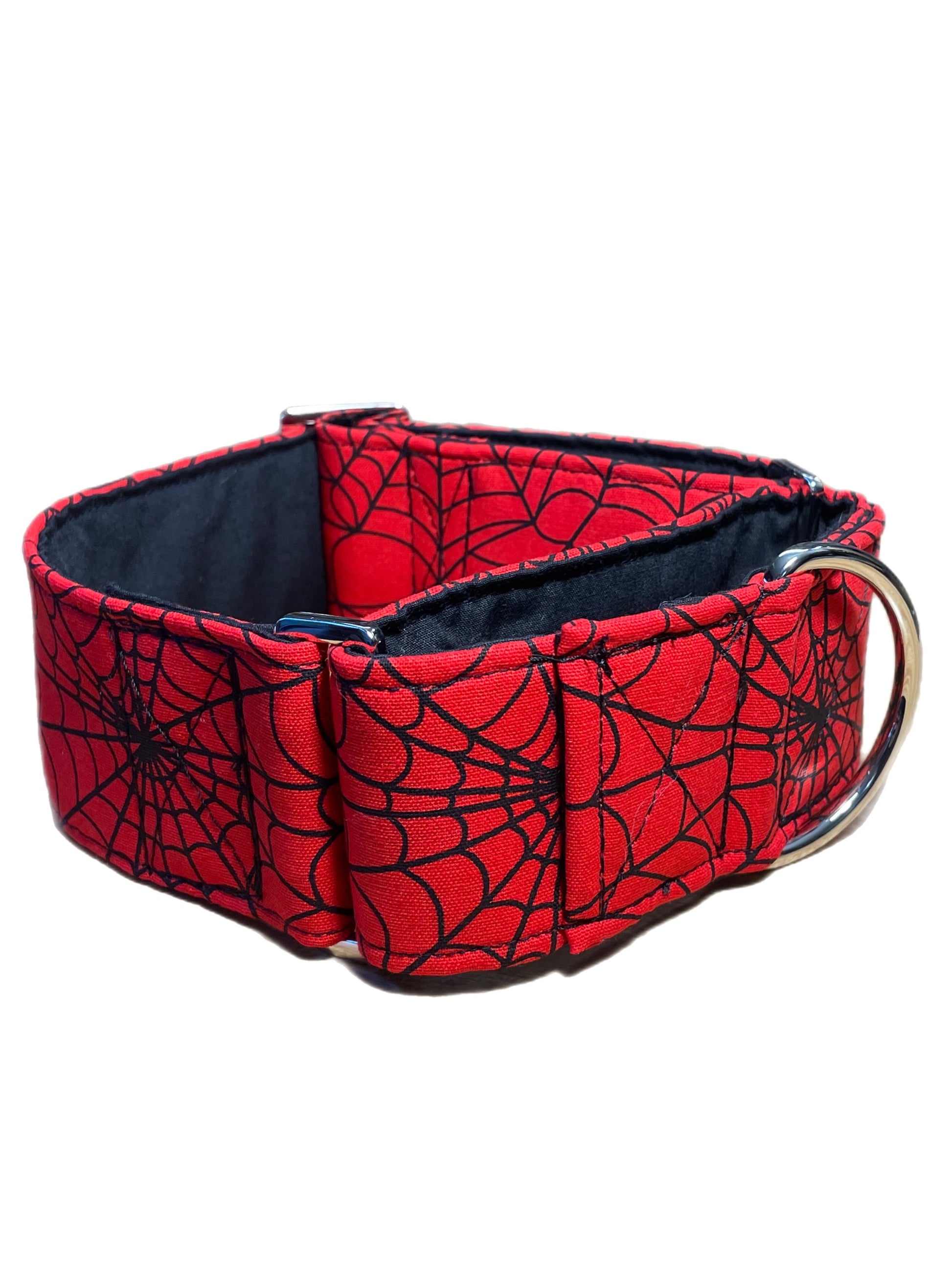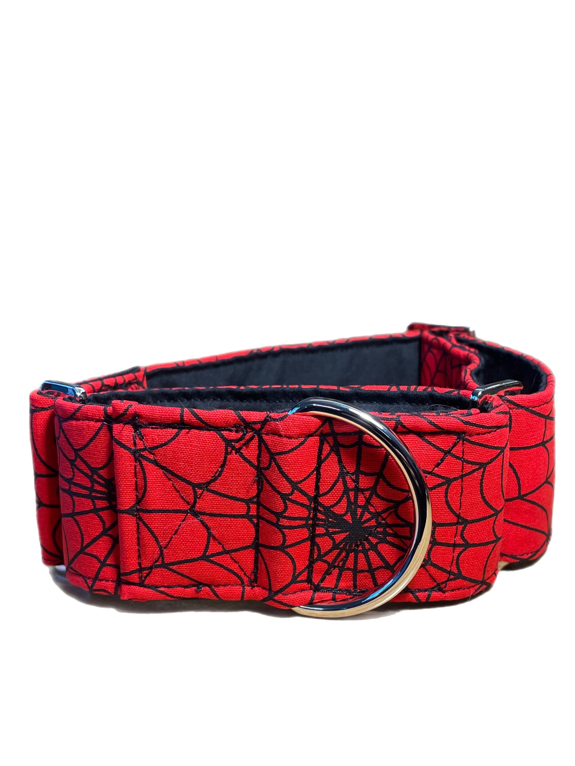 Greyhound Martingale collar in red Spiderman webs cotton wide 50cms
