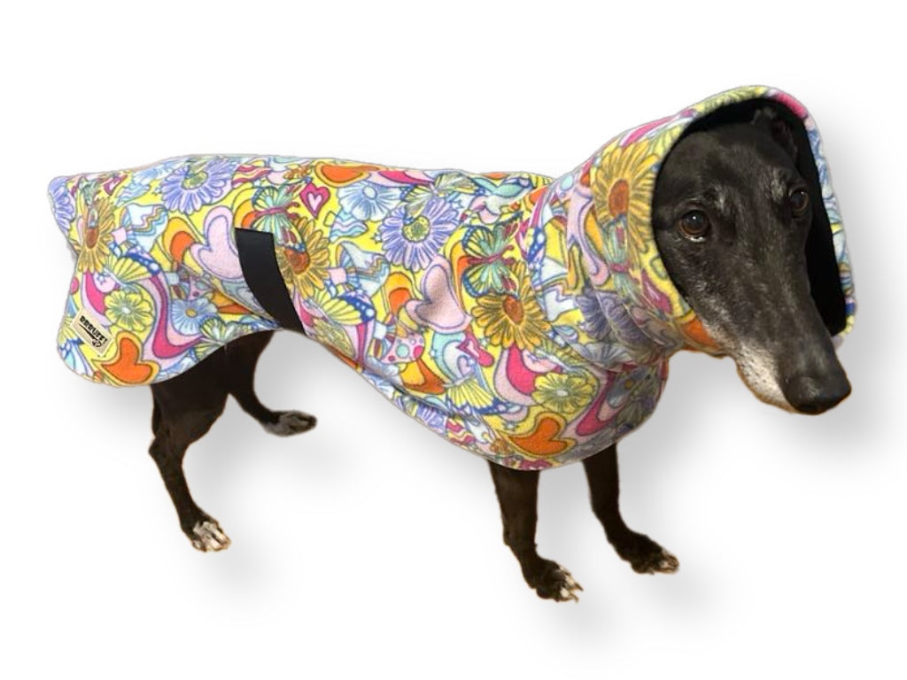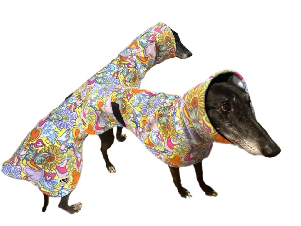 Hippy new age flower child bohemian greyhound deluxe style rug polar fleece washable extra wide neck