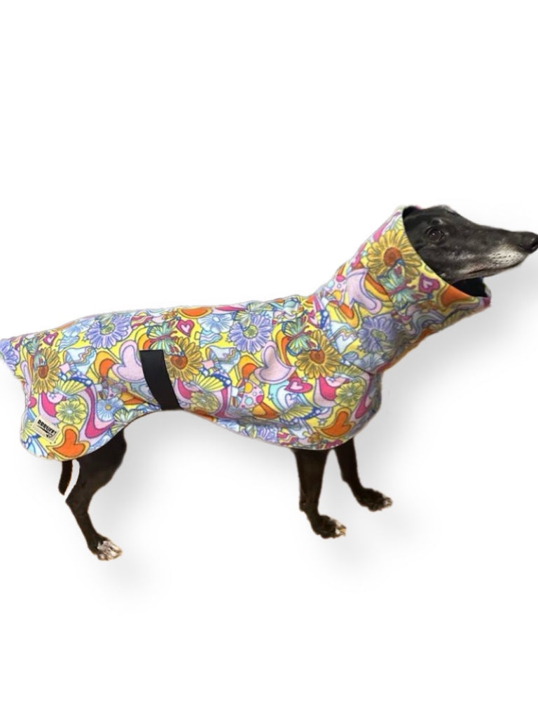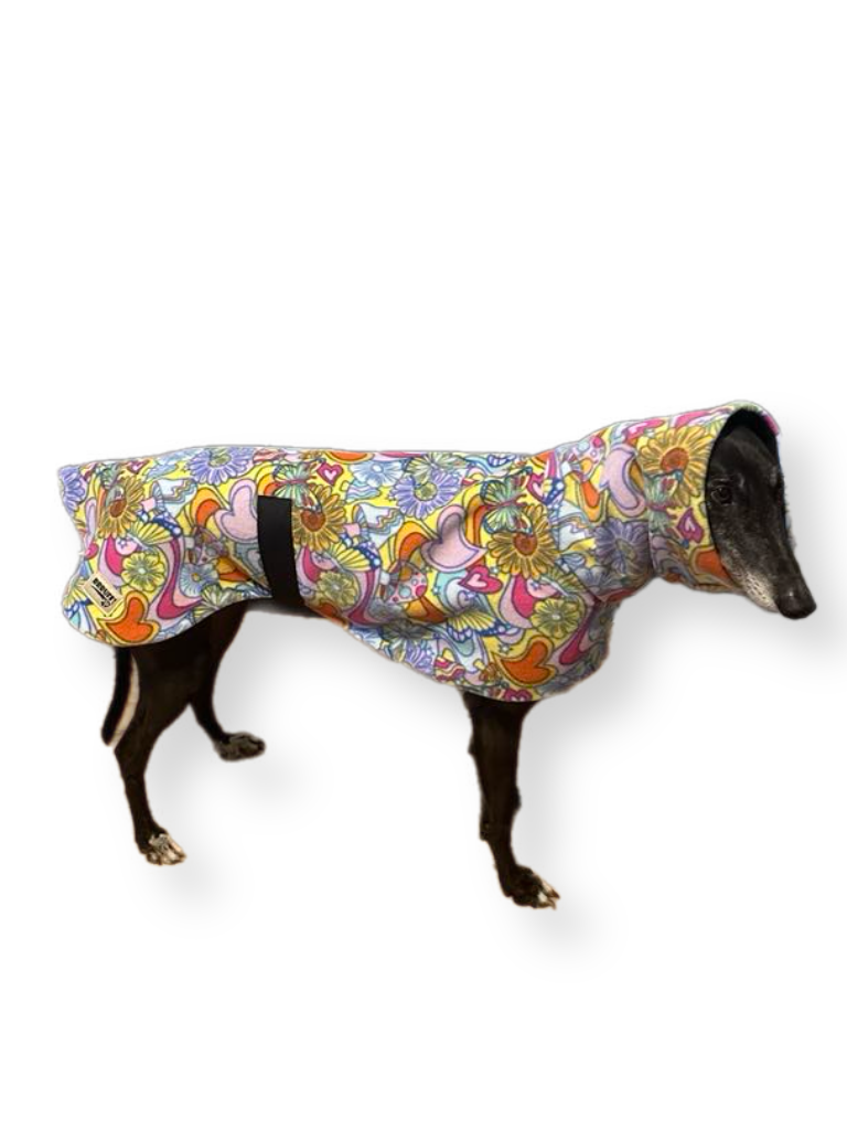 Our coats now come with a sleeve of fleece to slide over the Velcro for a softer feel on your greyhound’s tummy