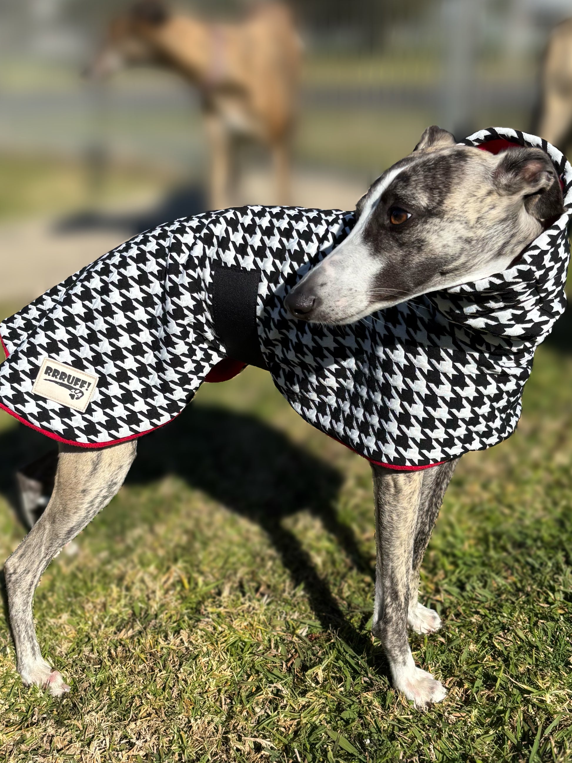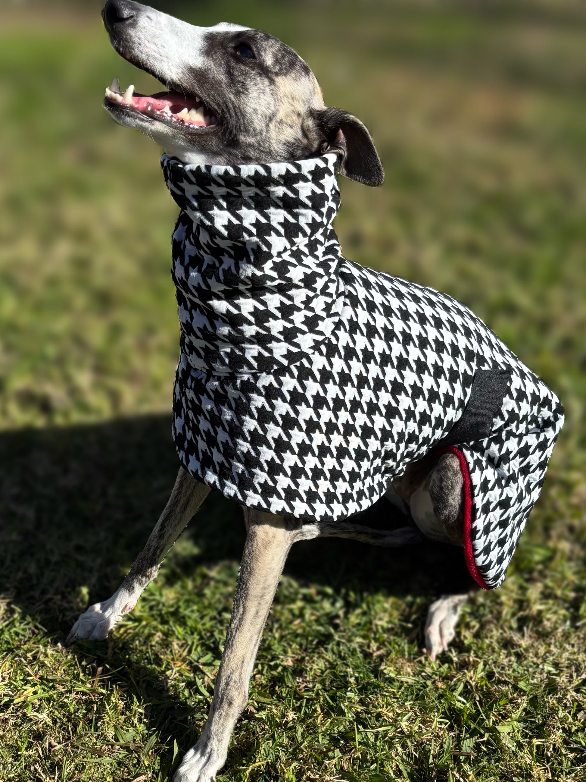 Houndstooth black and white with red whippet snuggly fleece