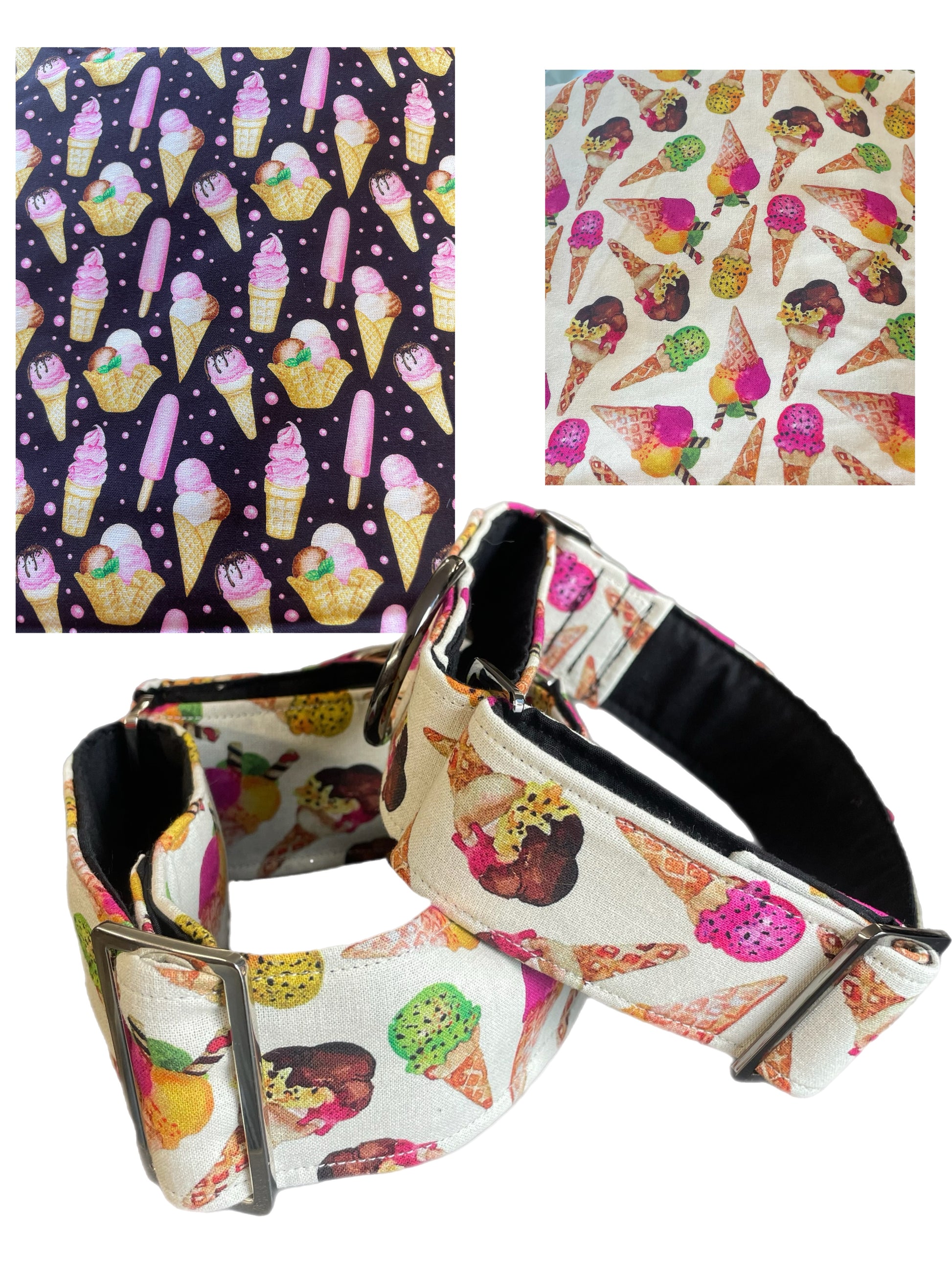 Ice cream greyhound Martingale collar cotton covered 50mm width