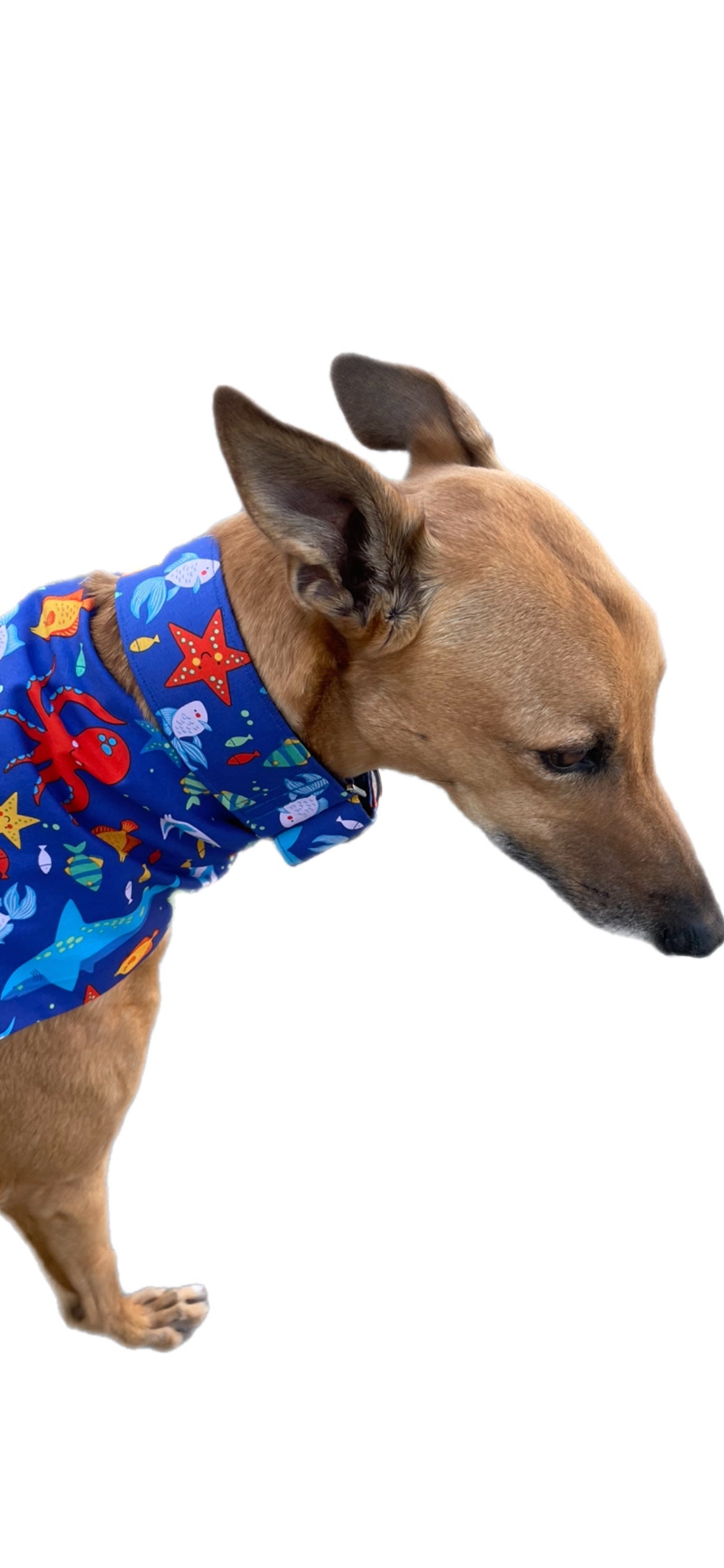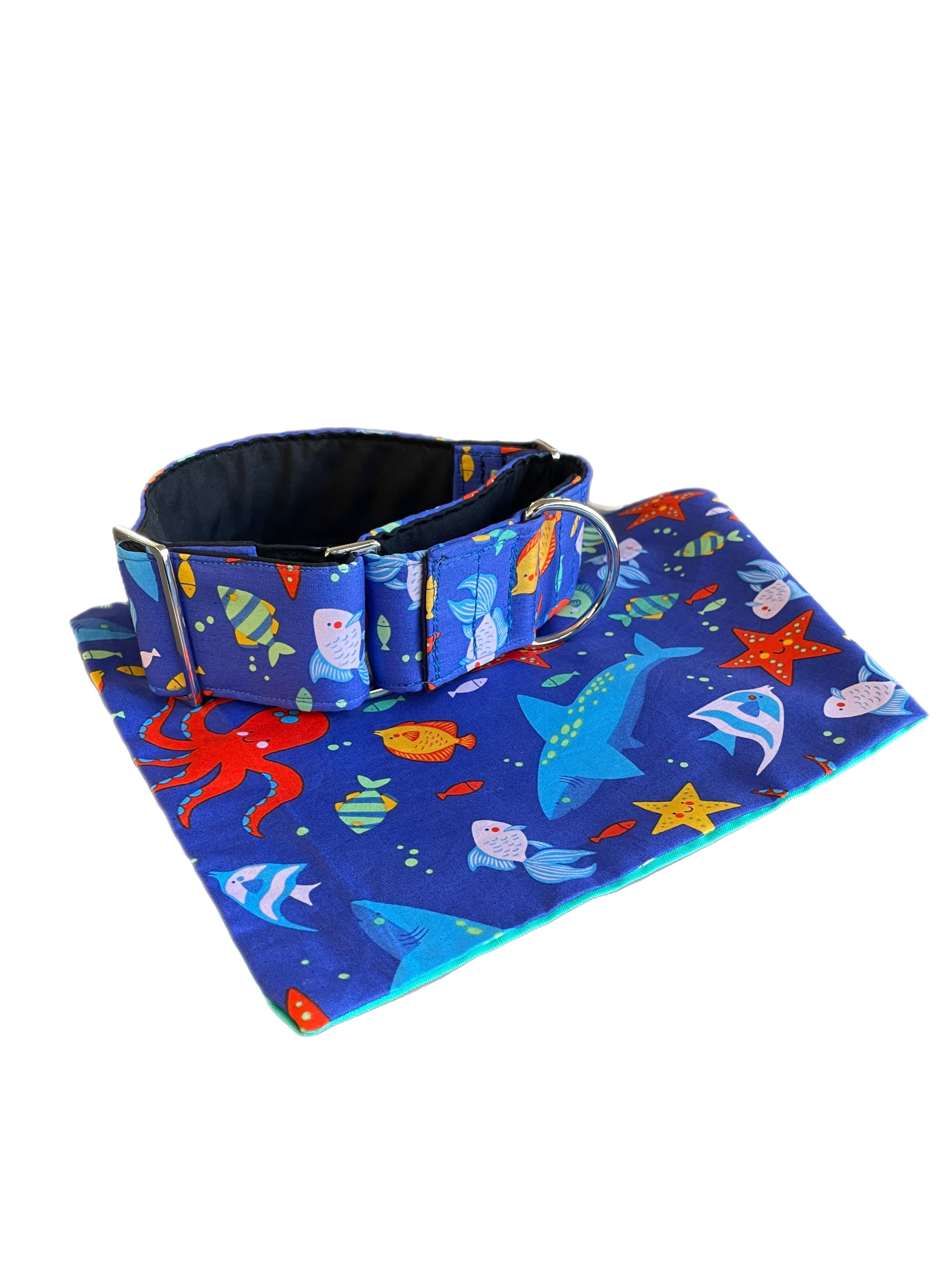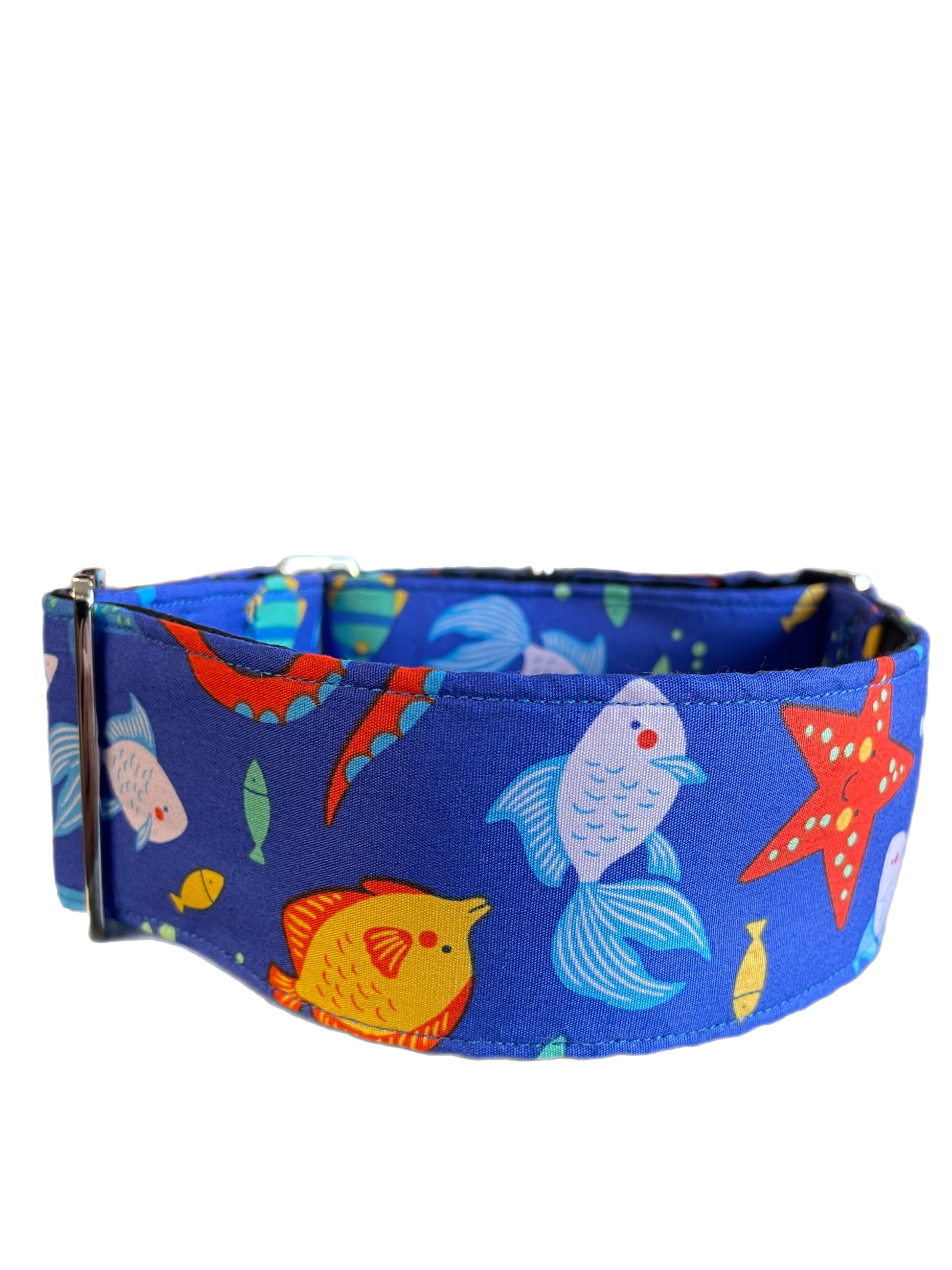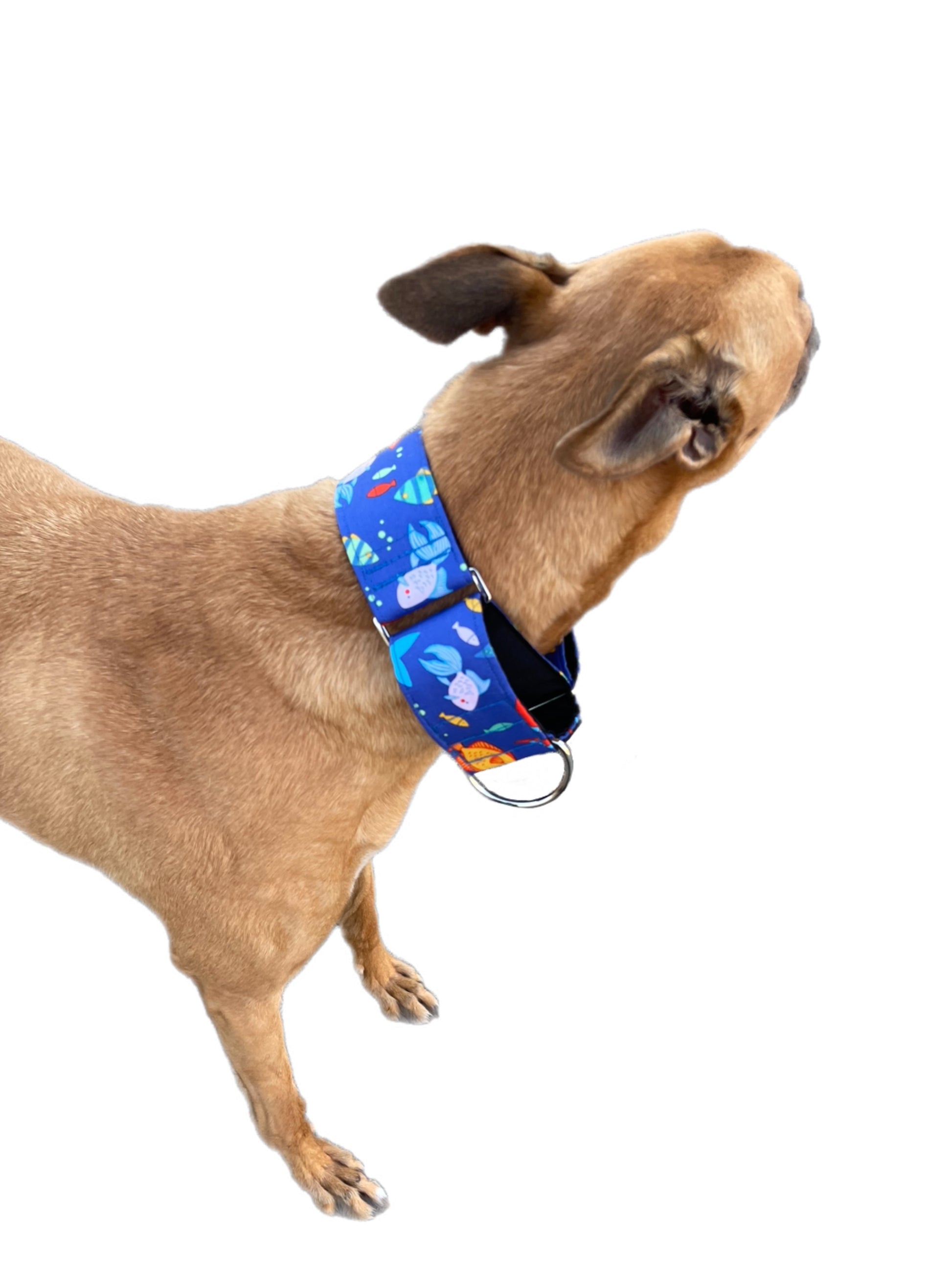 Little fishy Greyhound Martingale collar cotton covered 50mm width super soft