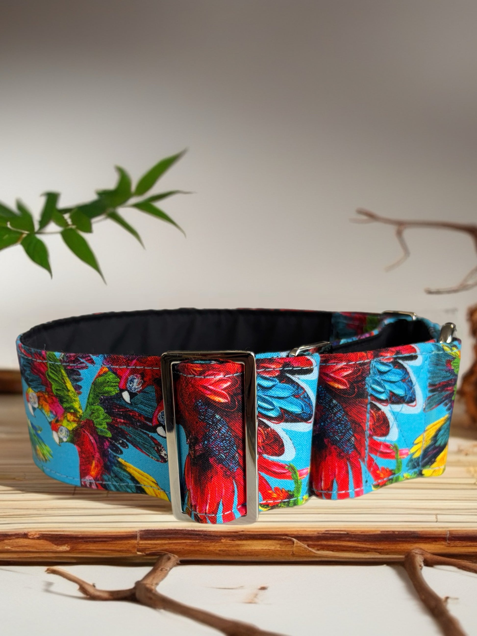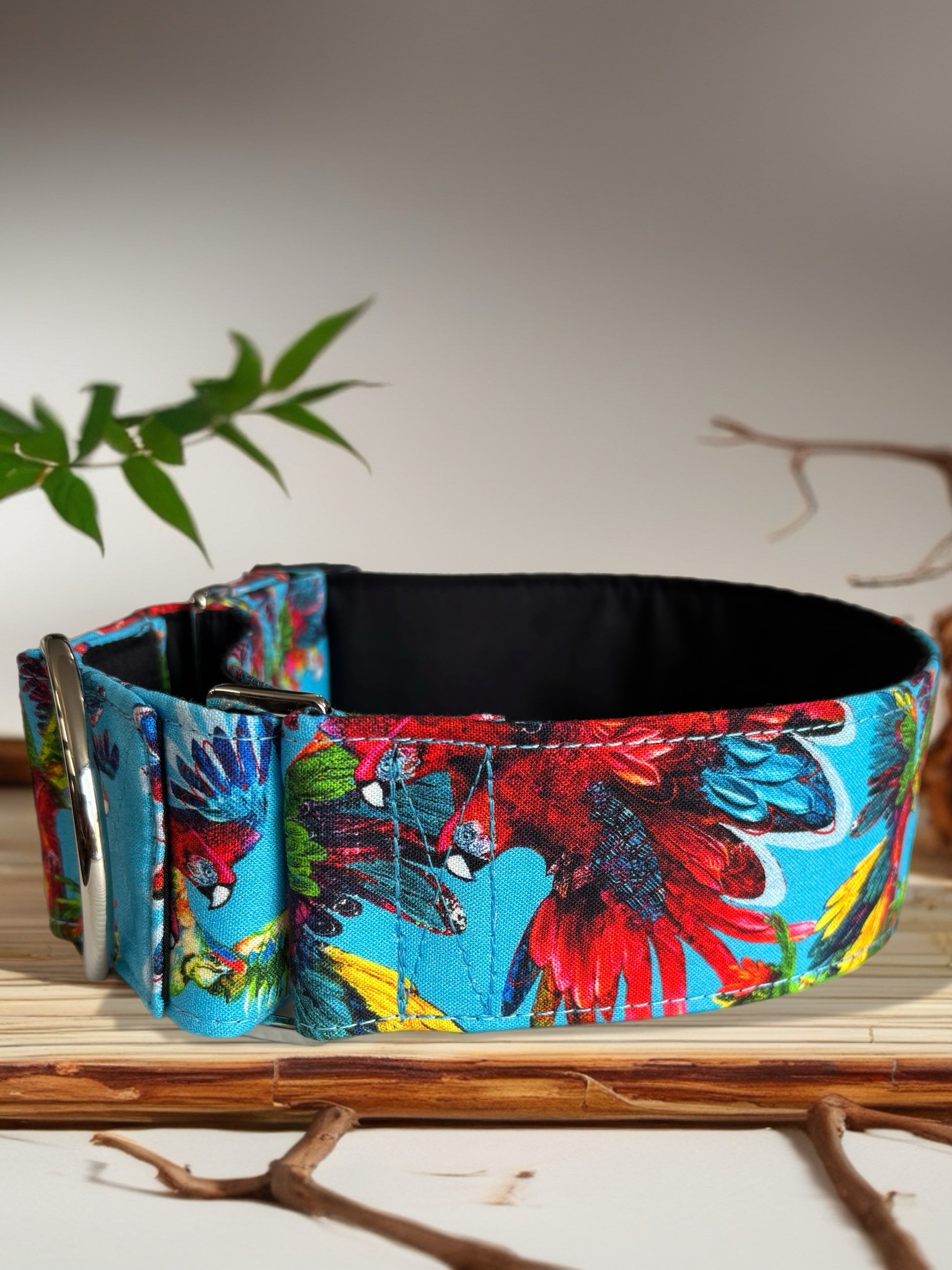 Macaw Cotton covered greyhound Martingale collar aqua turquoise gold shimmer wide super soft. Limited stock until after Christmas
