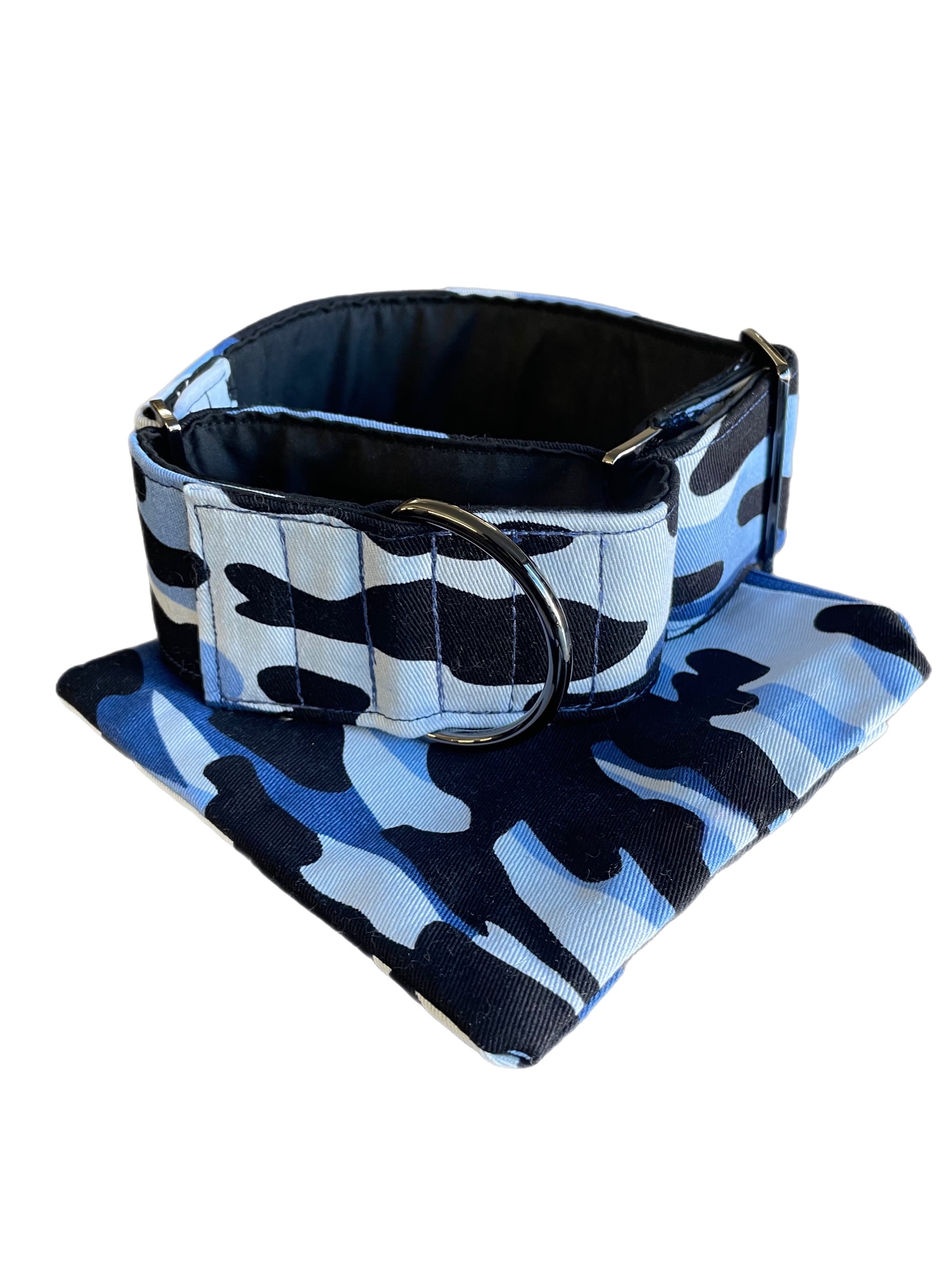Martingale collar greyhound collar navy blue Cammo design cotton fabric