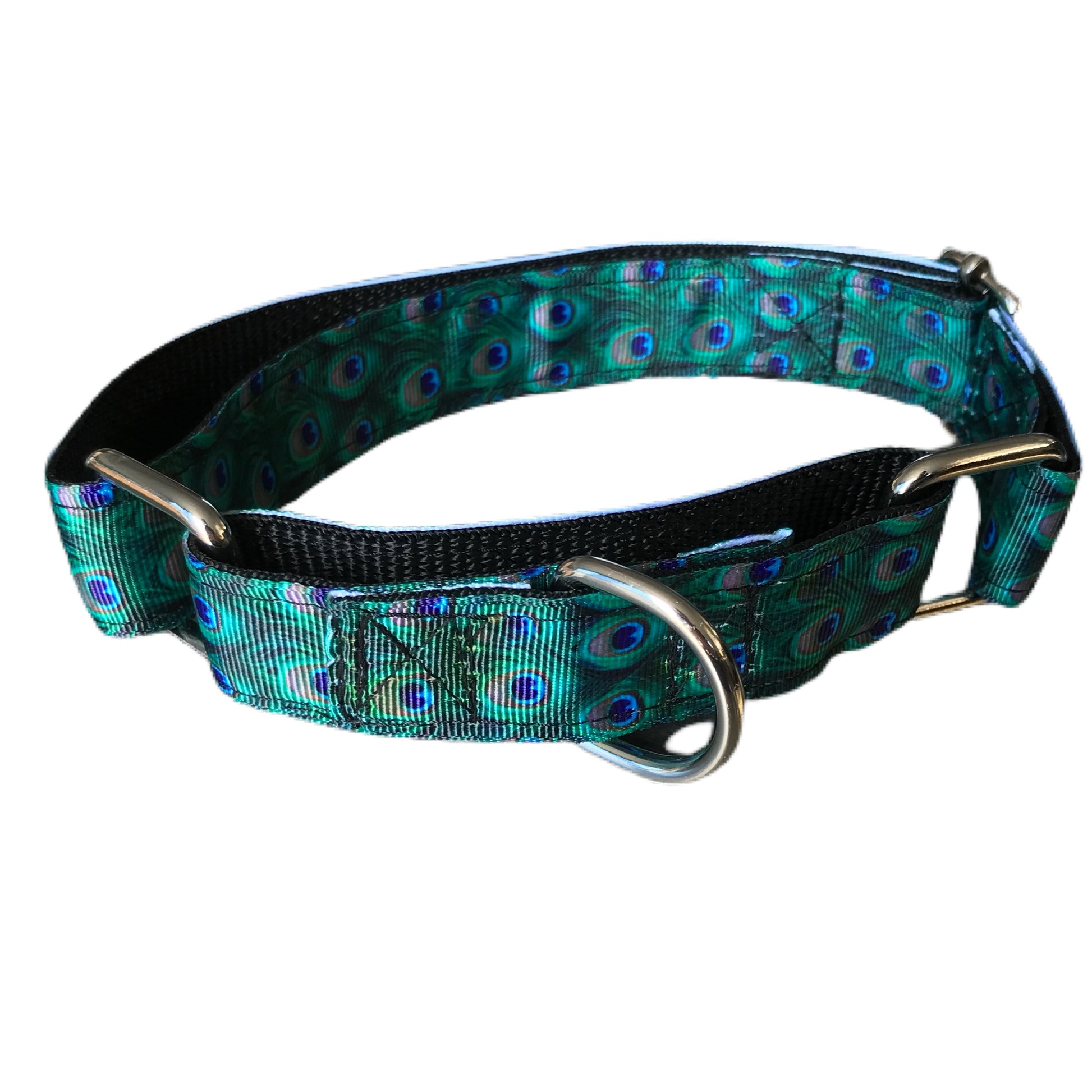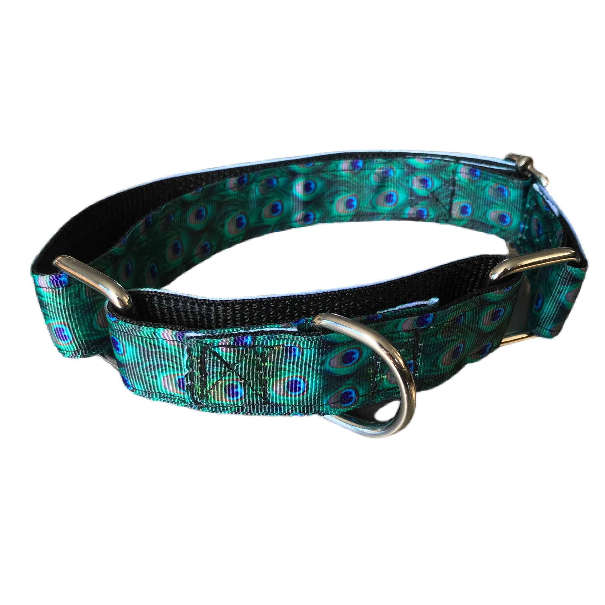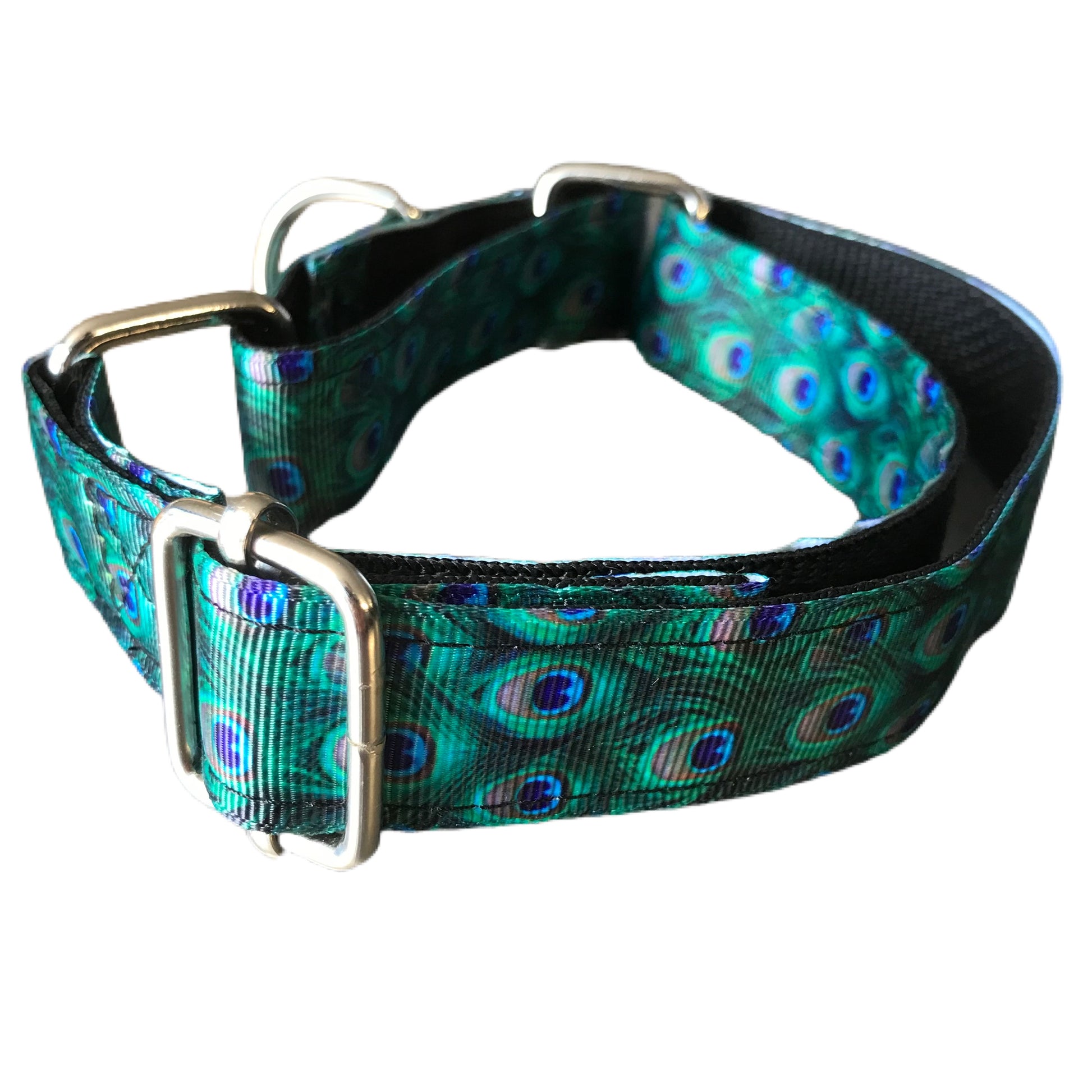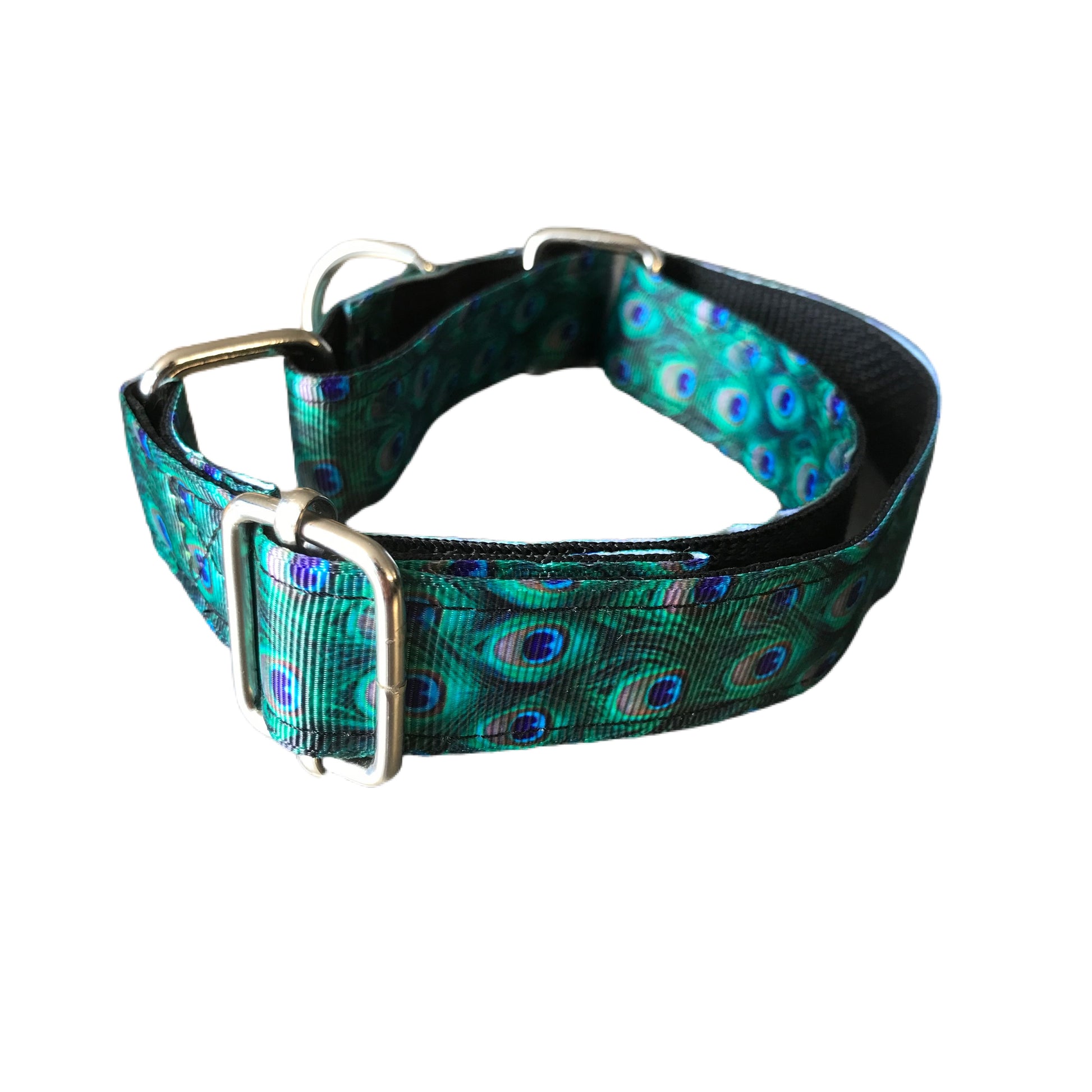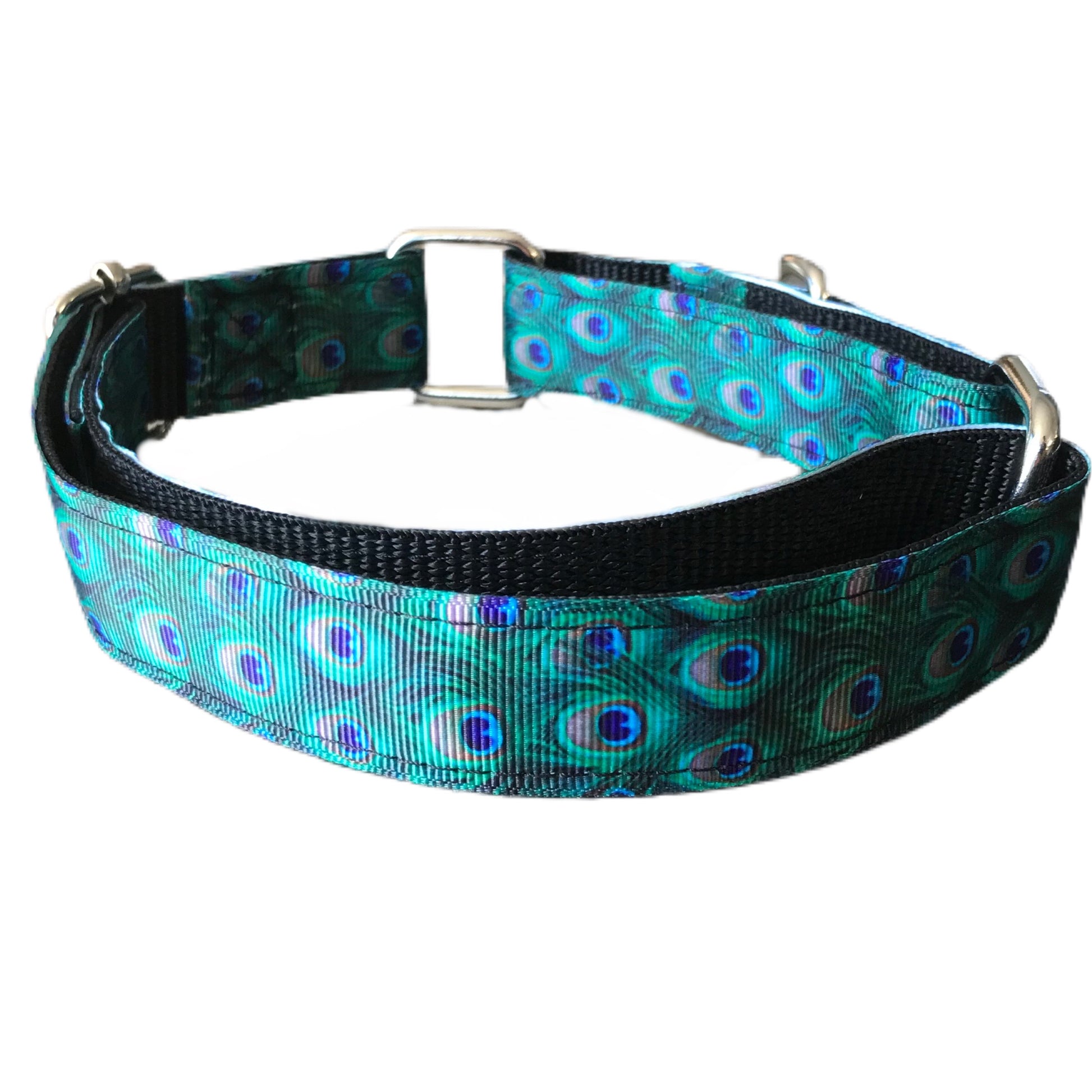 Greyhound house collar, metal hardware, hand made, washable, peacock design