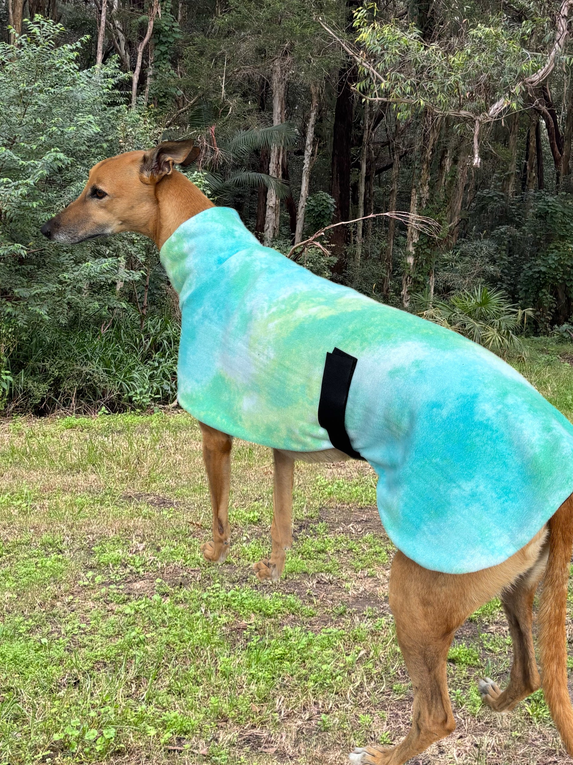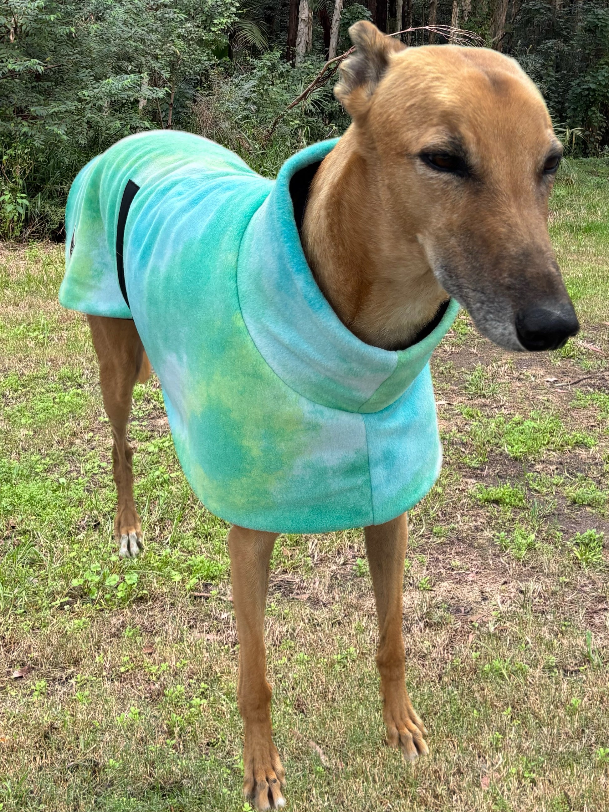 *Every coat comes with a fleece sleeve to place over the Velcro belly band if required for a softer feel against your hound’s tummy