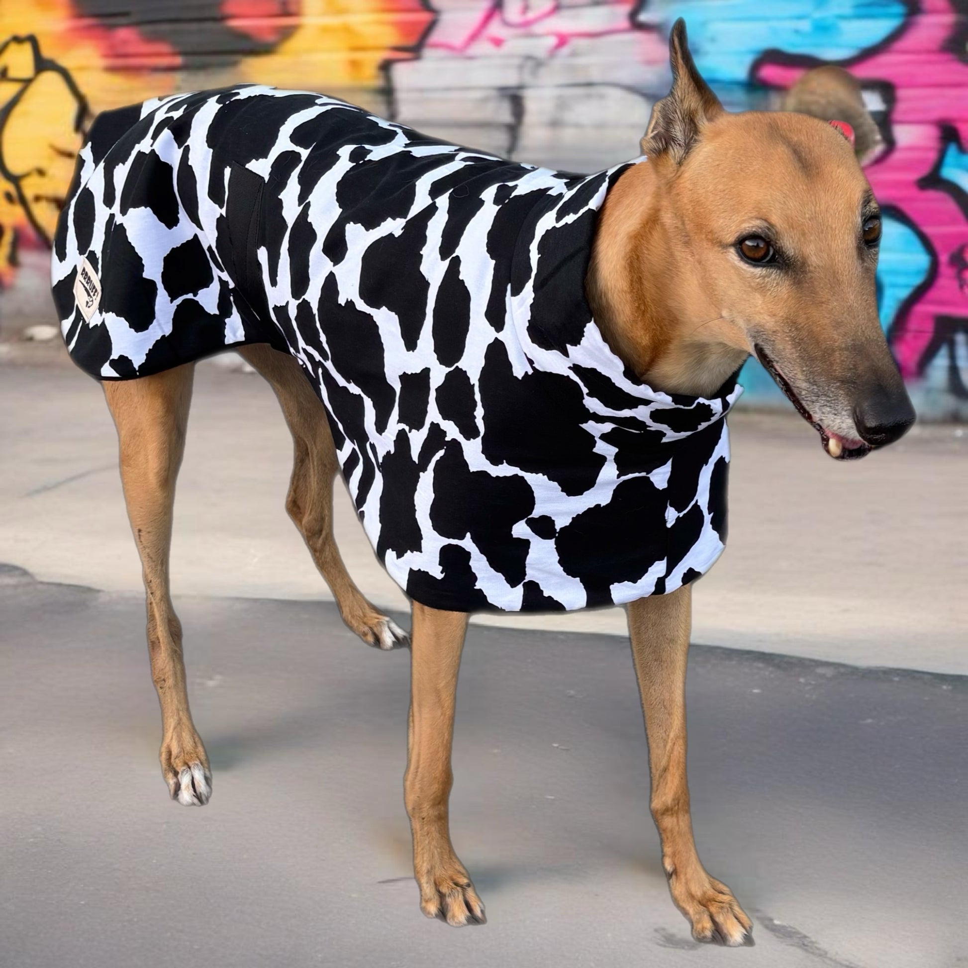 Our queen Pinkie looks ridiculously cute in her moo cow jacket. It is her favourite and ours too. The quality and fit is beyond perfect and we love that it came with a felt cover for the Velcro strap so it is nice and soft on her belly. Will 100% be buying more jackets in the future. Pinkie also has had the most compliments from random people when taking her for walks :)