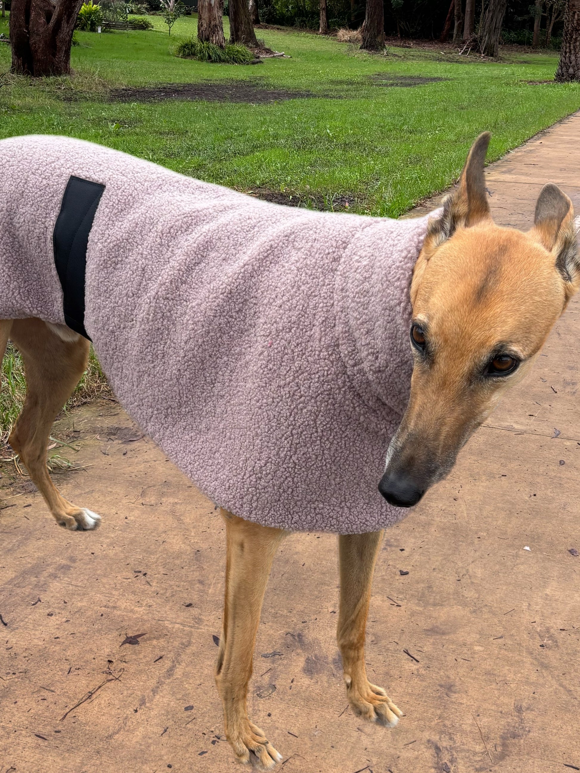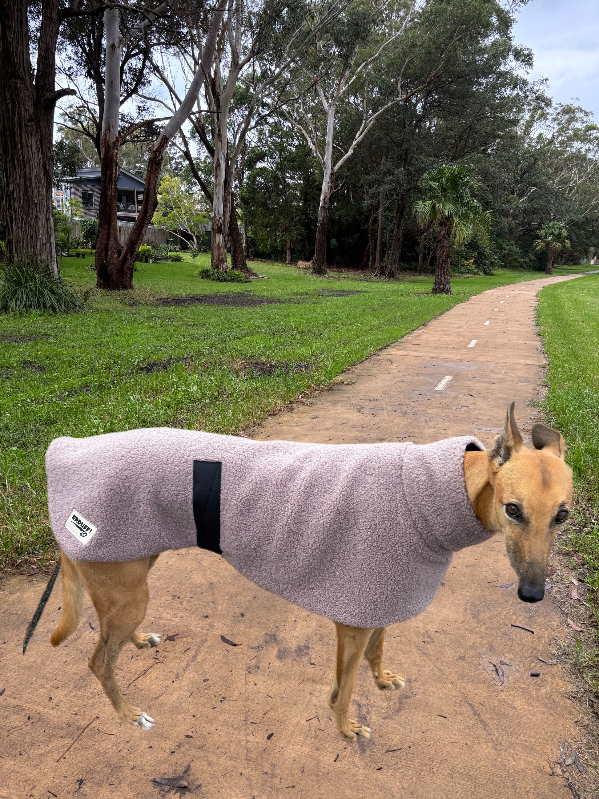 *Every coat comes with a fleece sleeve to place over the Velcro belly band if required for a softer feel against your hound’s tummy