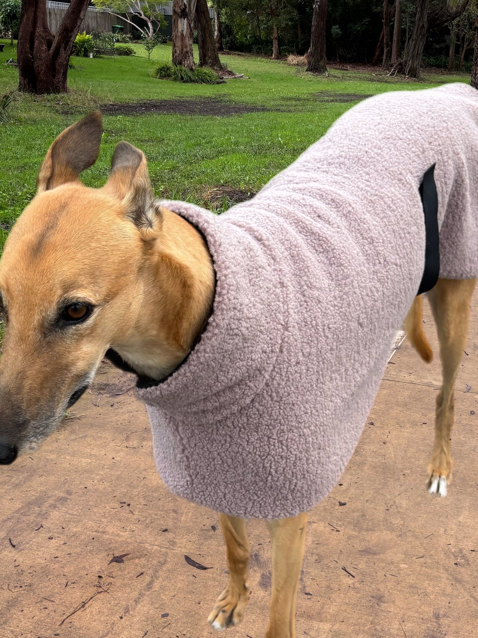 We’ve listened to our customers and have introduced our ‘in between’ coat to deal with the colder times ahead without the huge collar and longer length to keep our hounds fully covered. A cardigan for your greyhound 😊