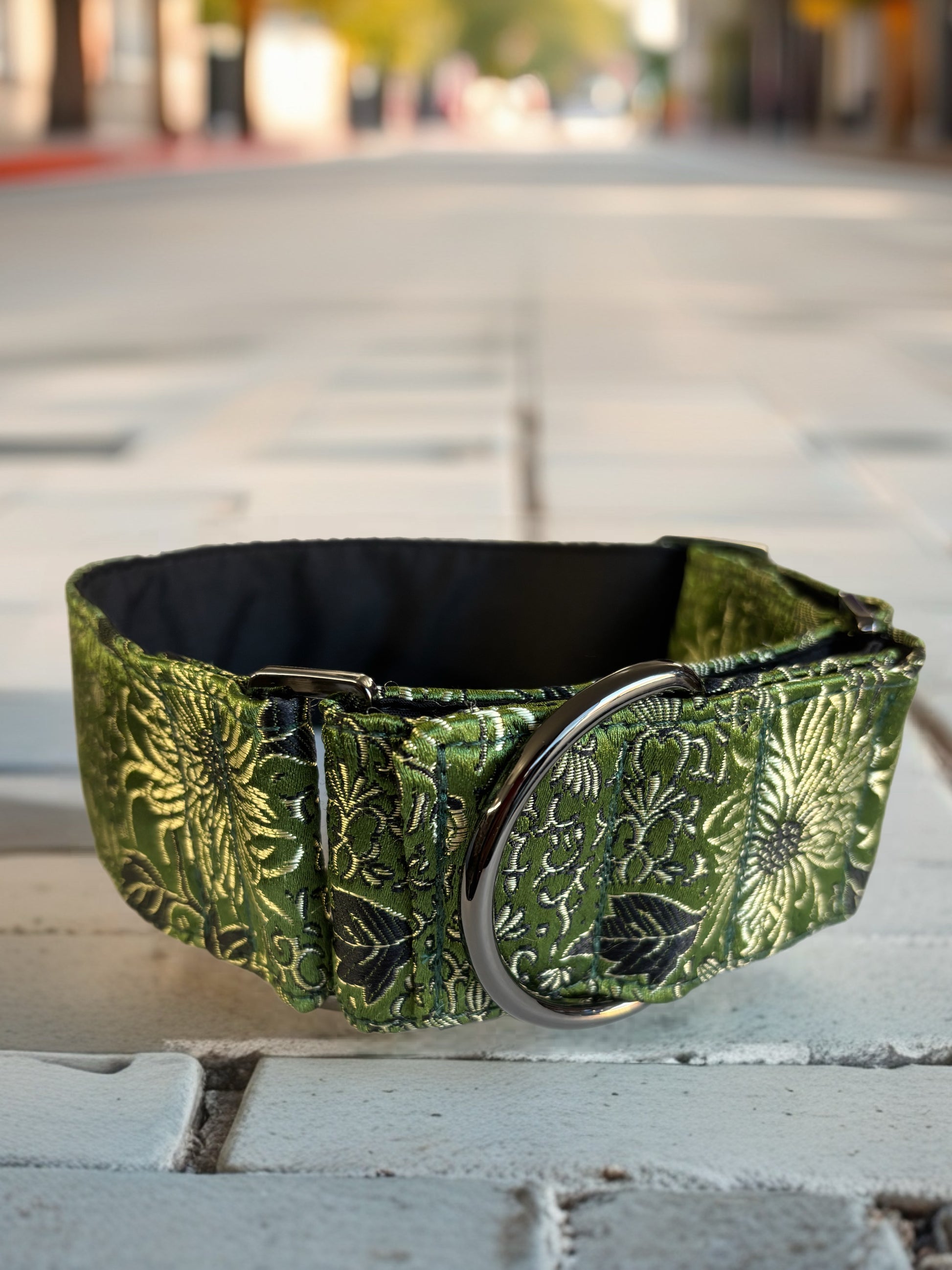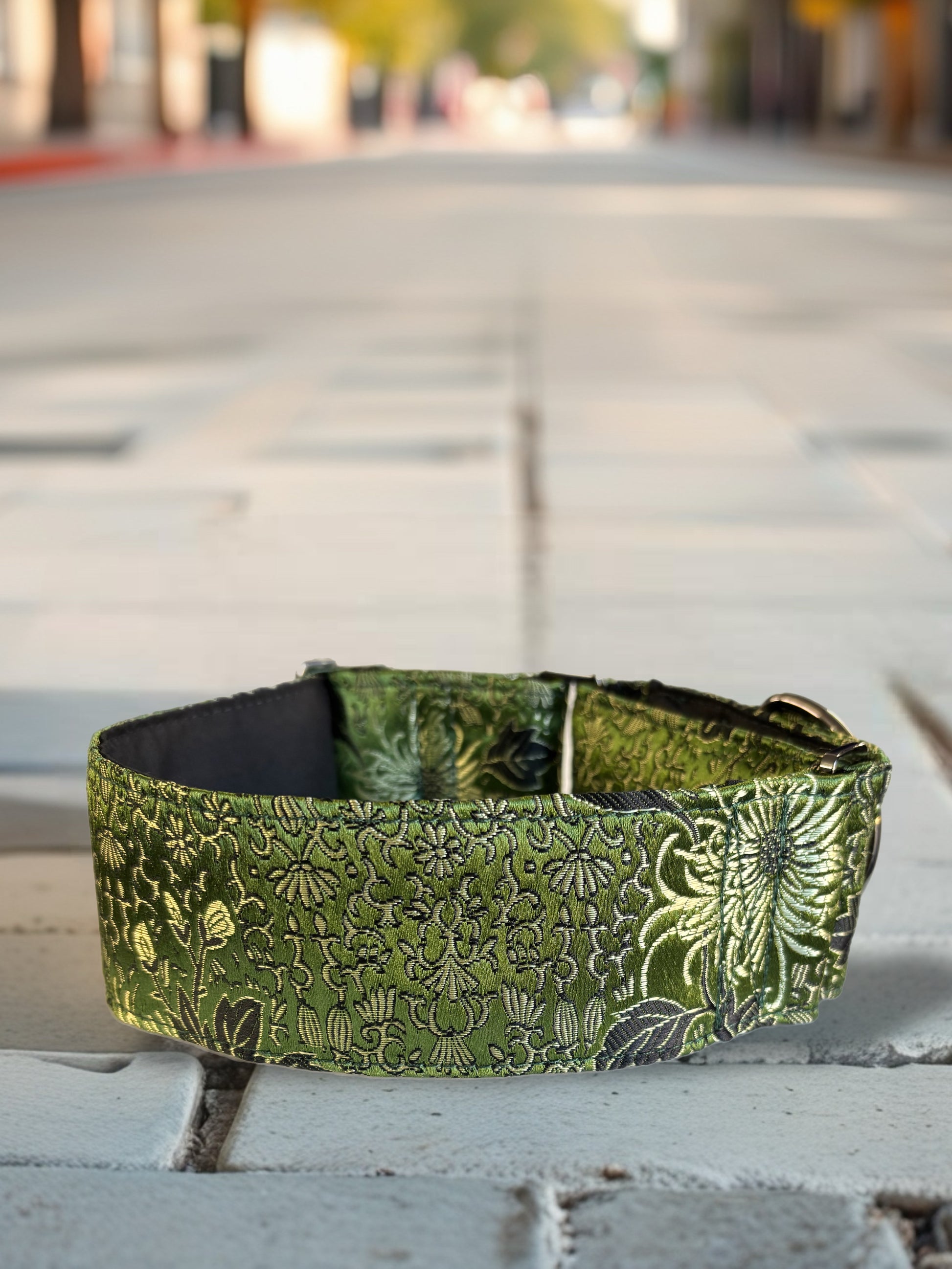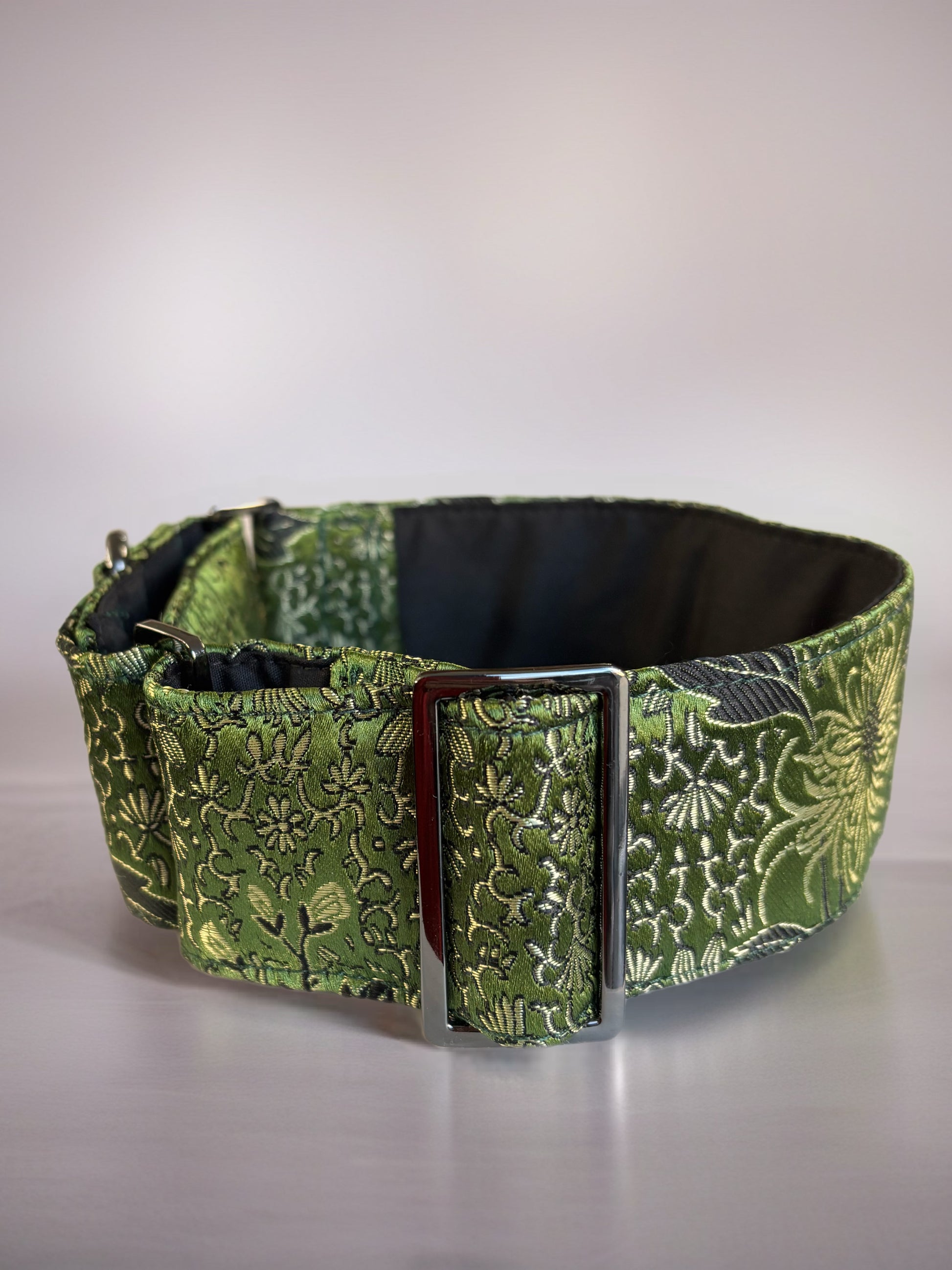 Oriental Printed Brocade in Sage Greyhound Martingale collar 50mm width soft