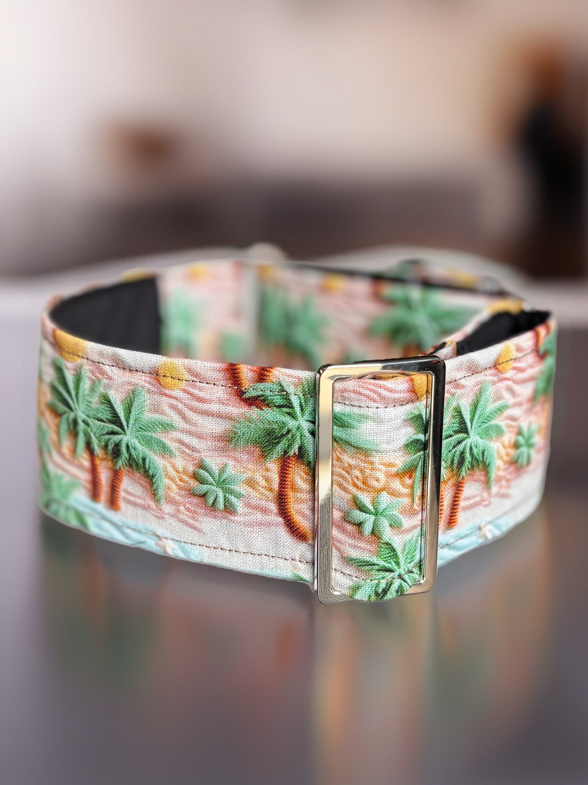 Palm trees splendour Greyhound Martingale collar cotton covered 50mm width soft