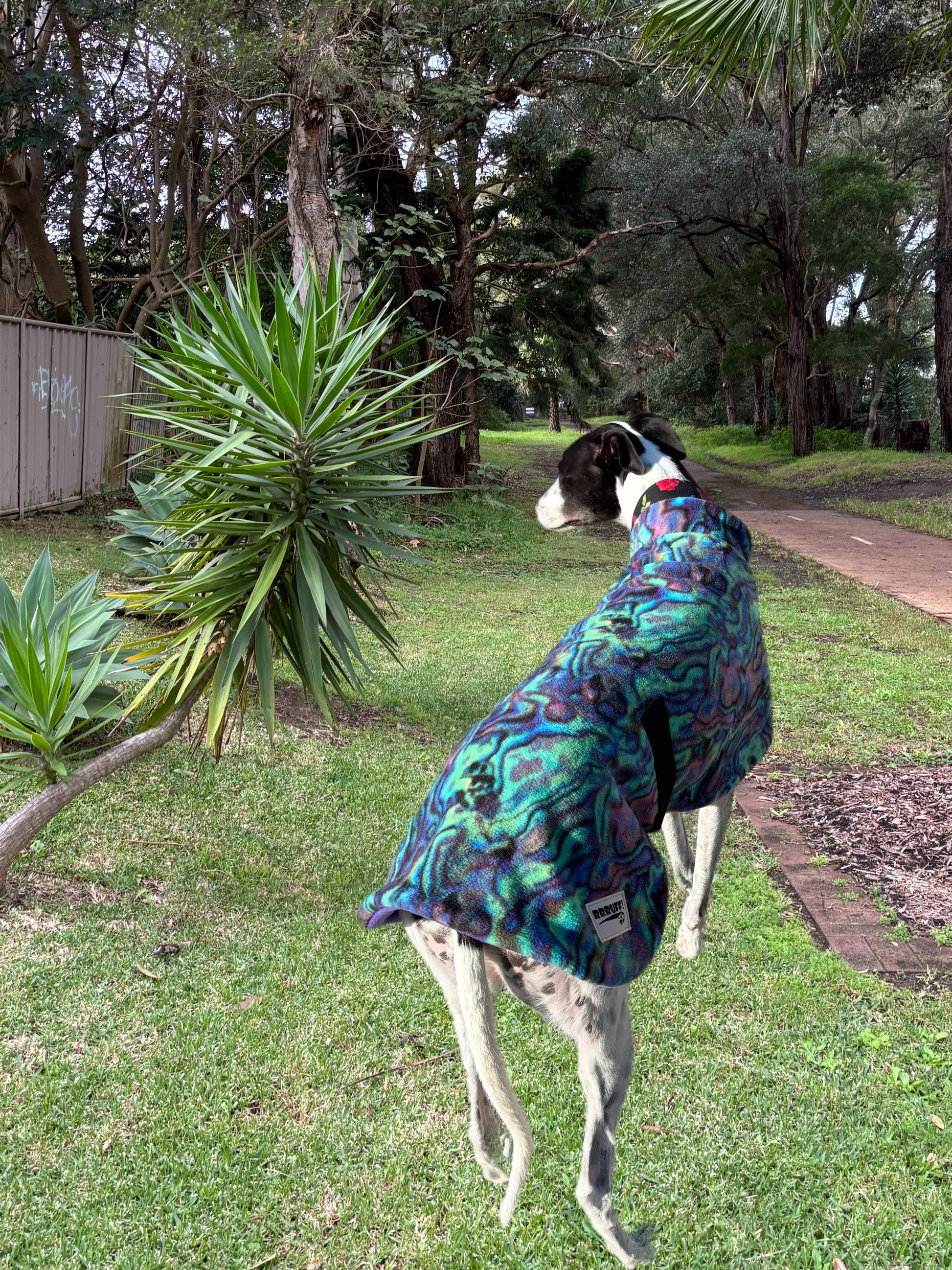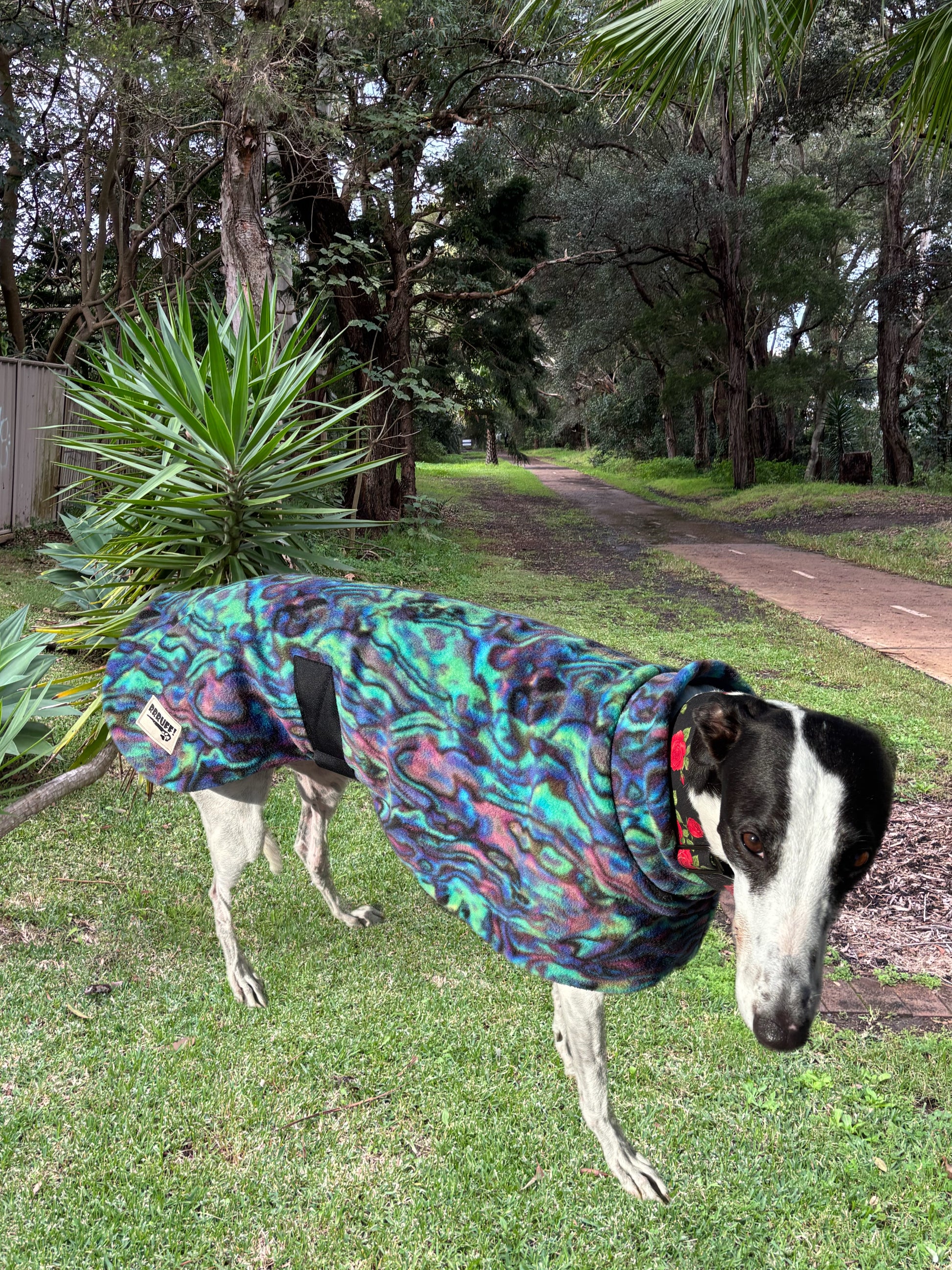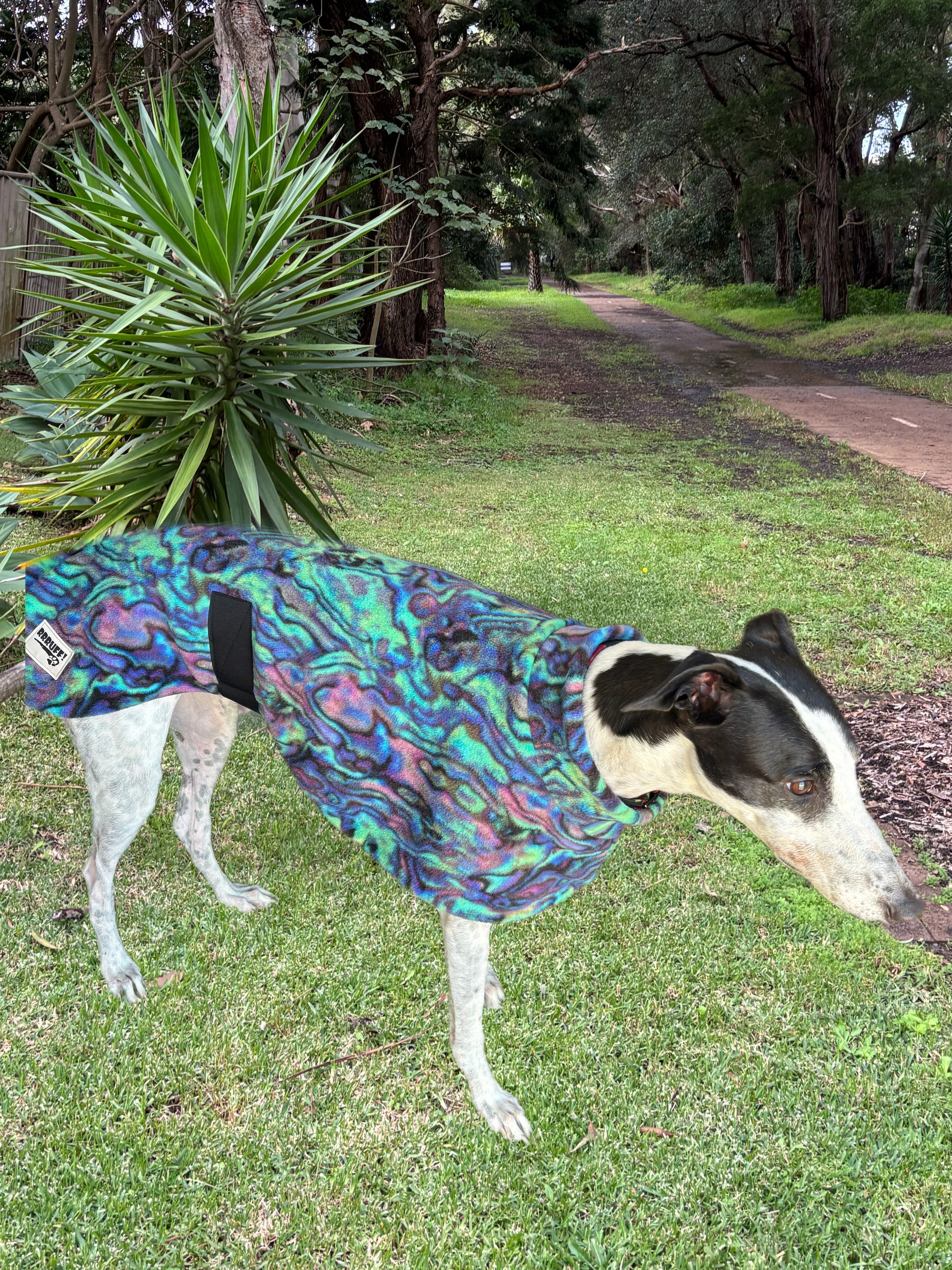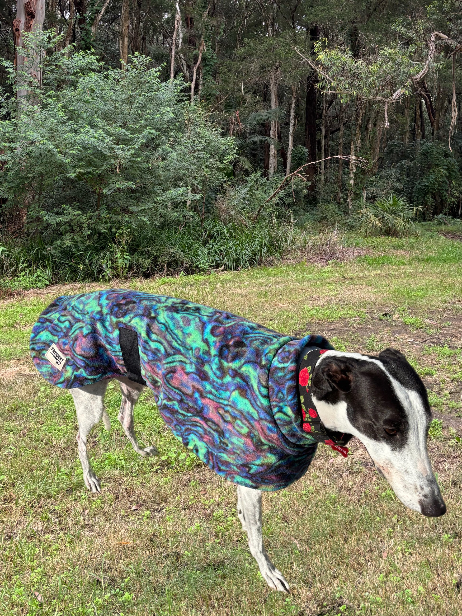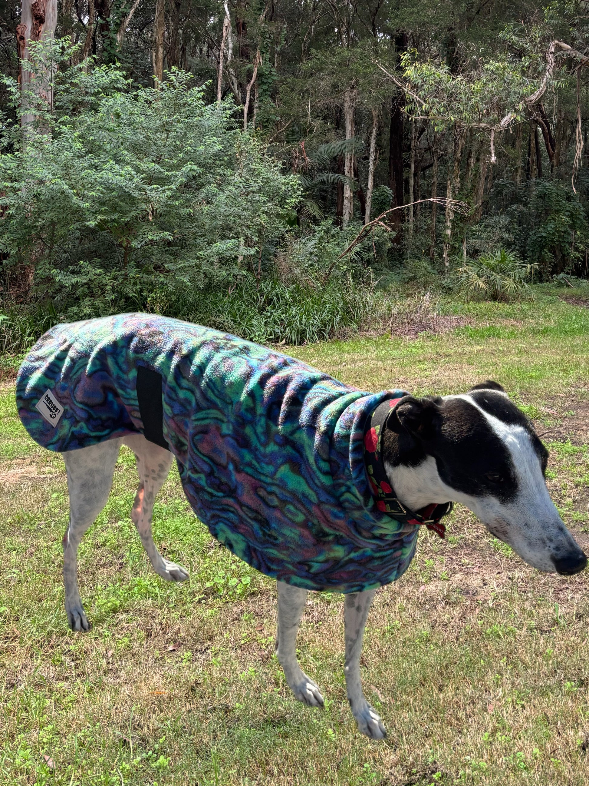 *Every coat comes with a fleece sleeve to place over the Velcro belly band if required for a softer feel against your hound’s tummy
