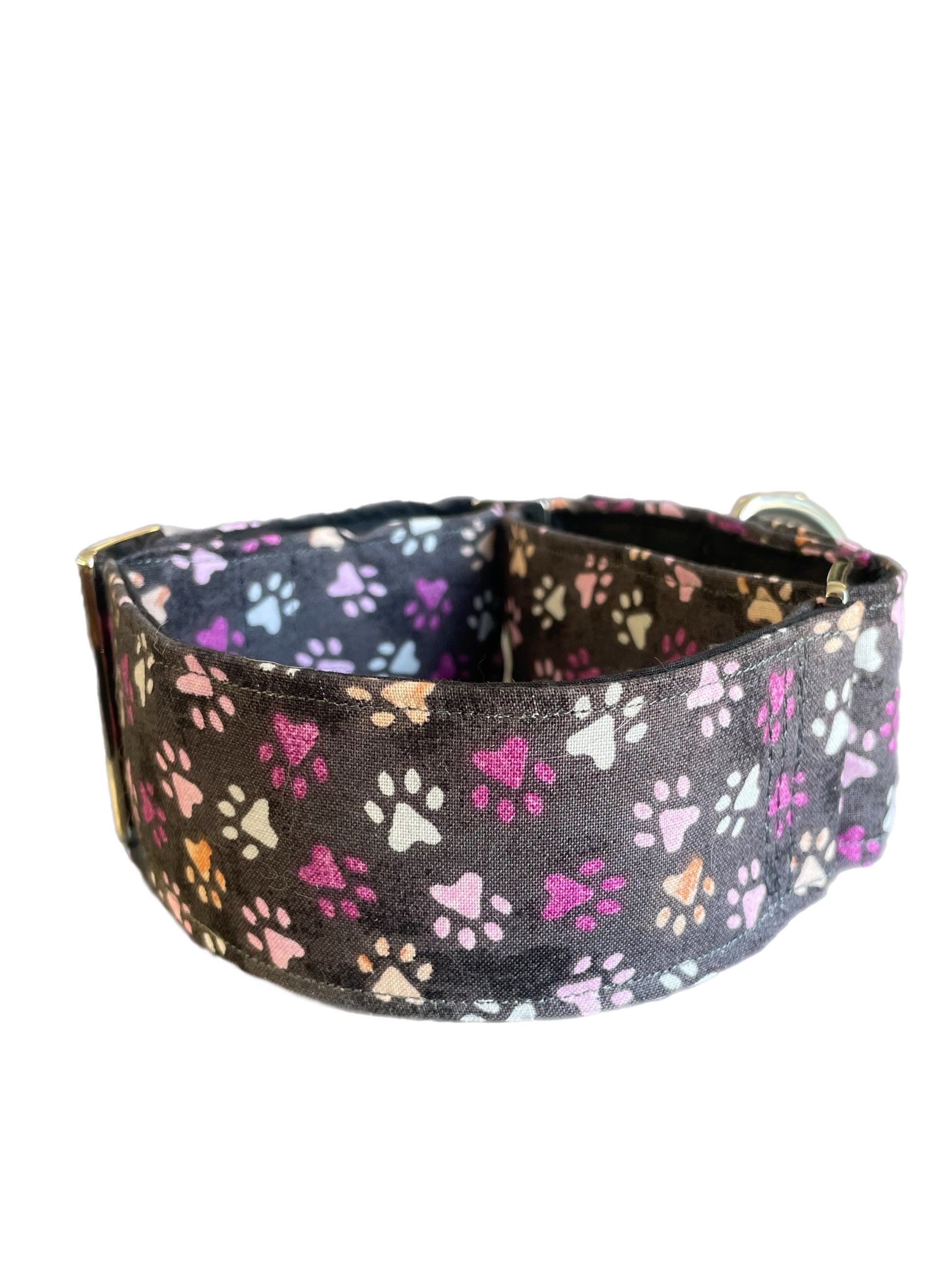 Pawprints on a grey tone Martingale collar greyhound cotton covered 50mm super soft