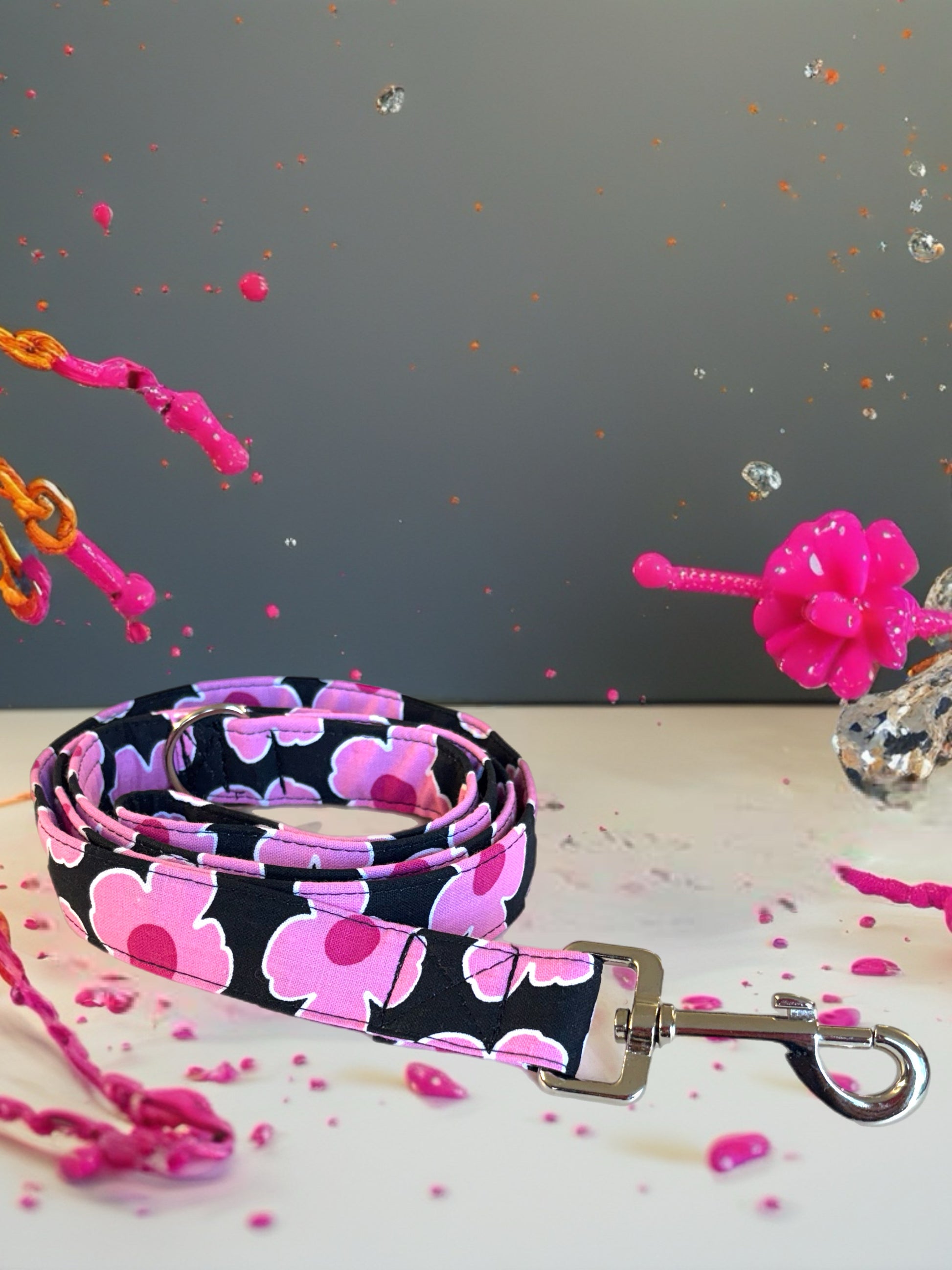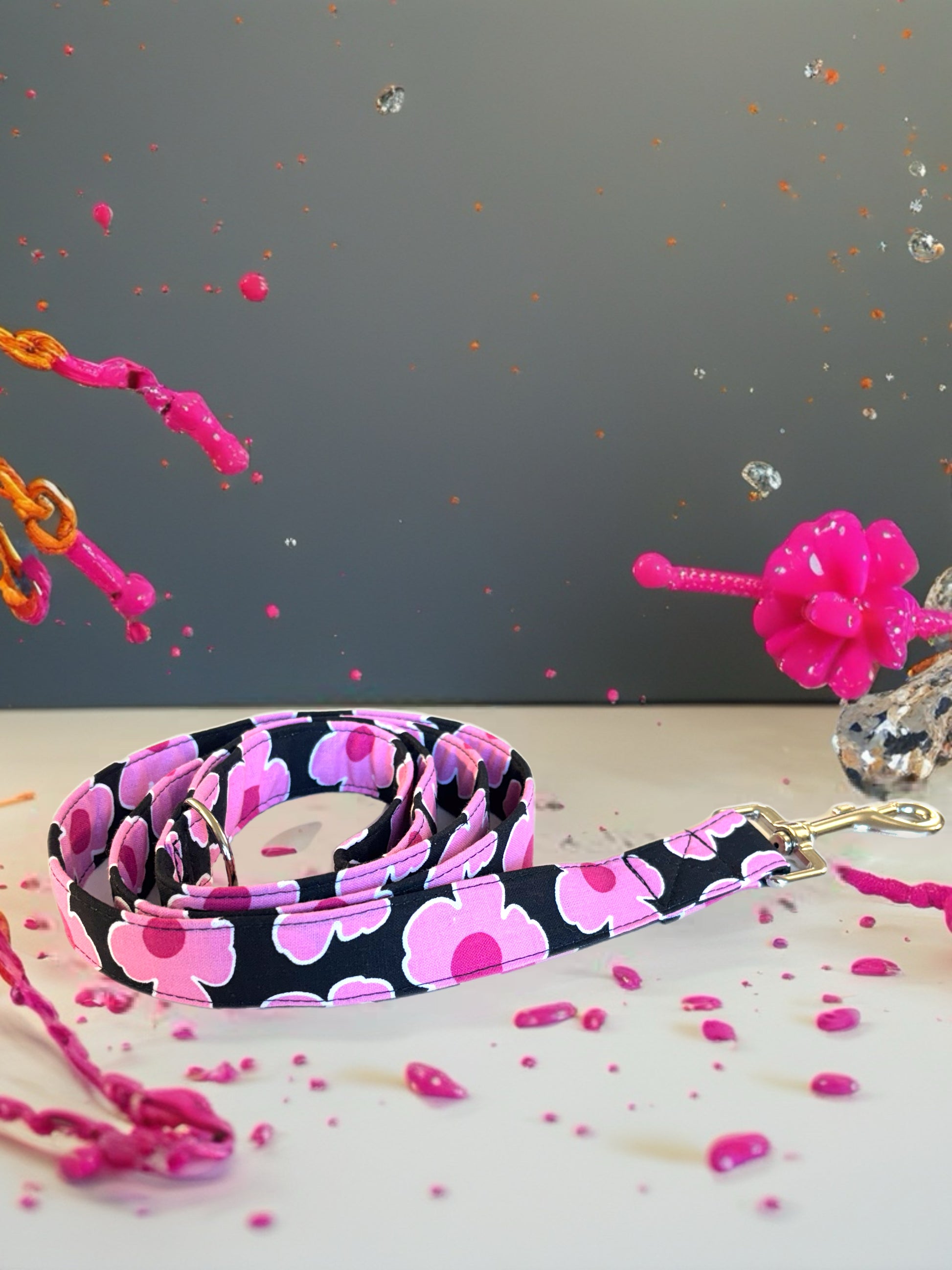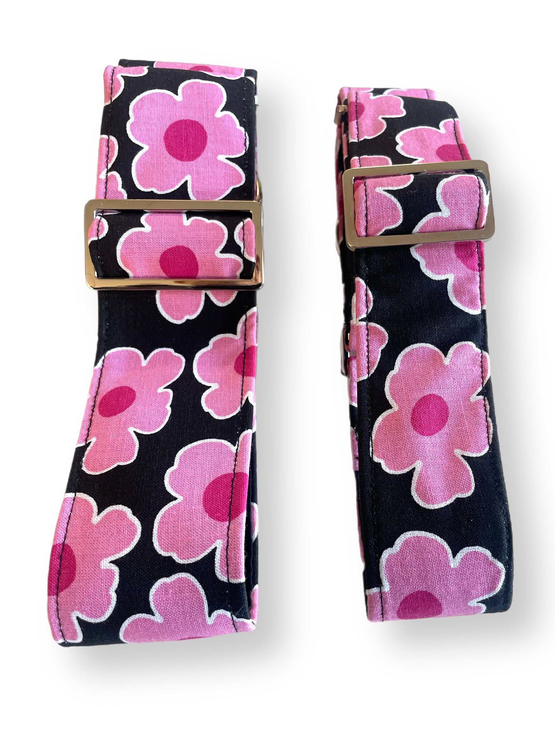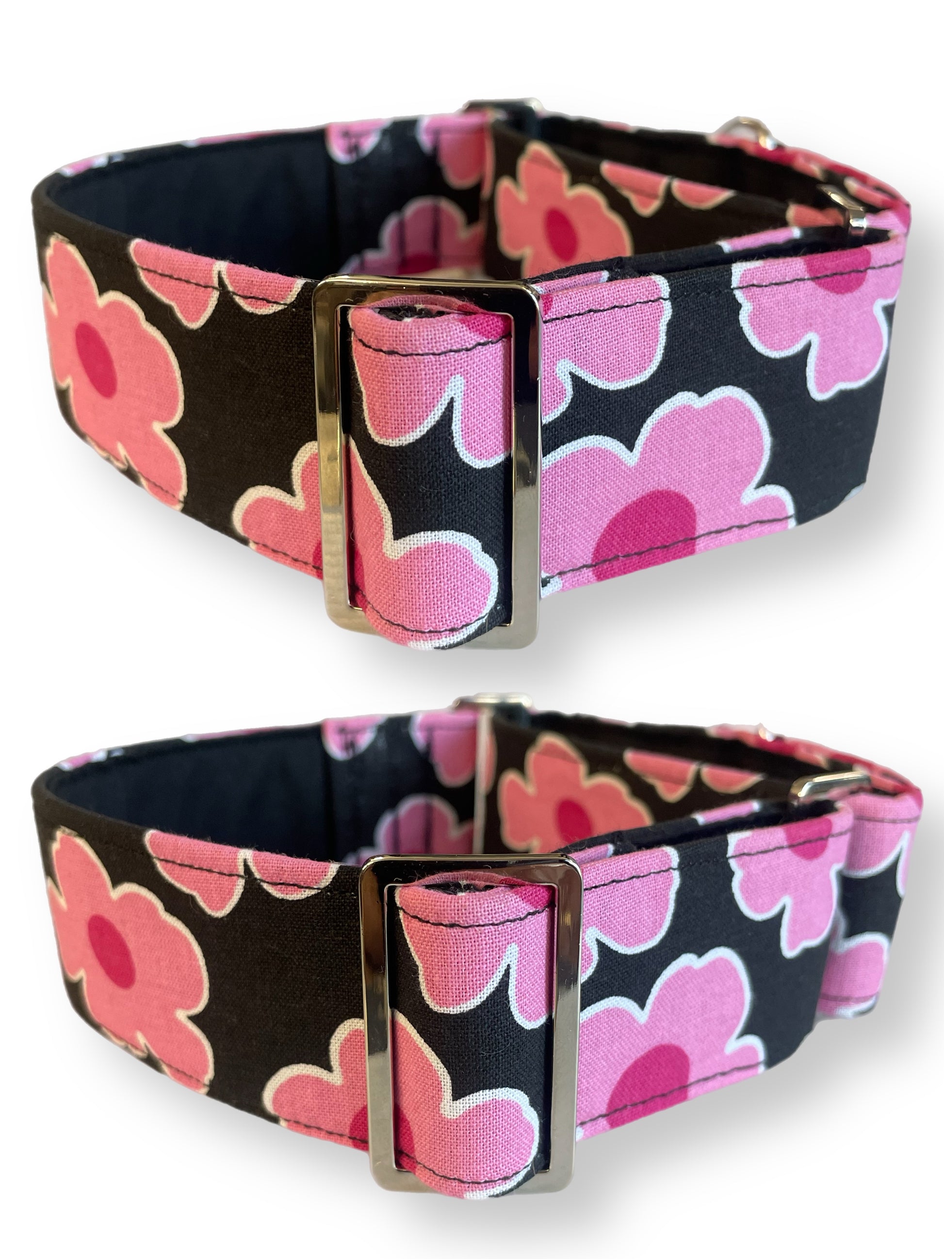 Covered with soft cotton fabric over black inner webbing, this martingale collar is triple stitched to assure longevity, and strength.