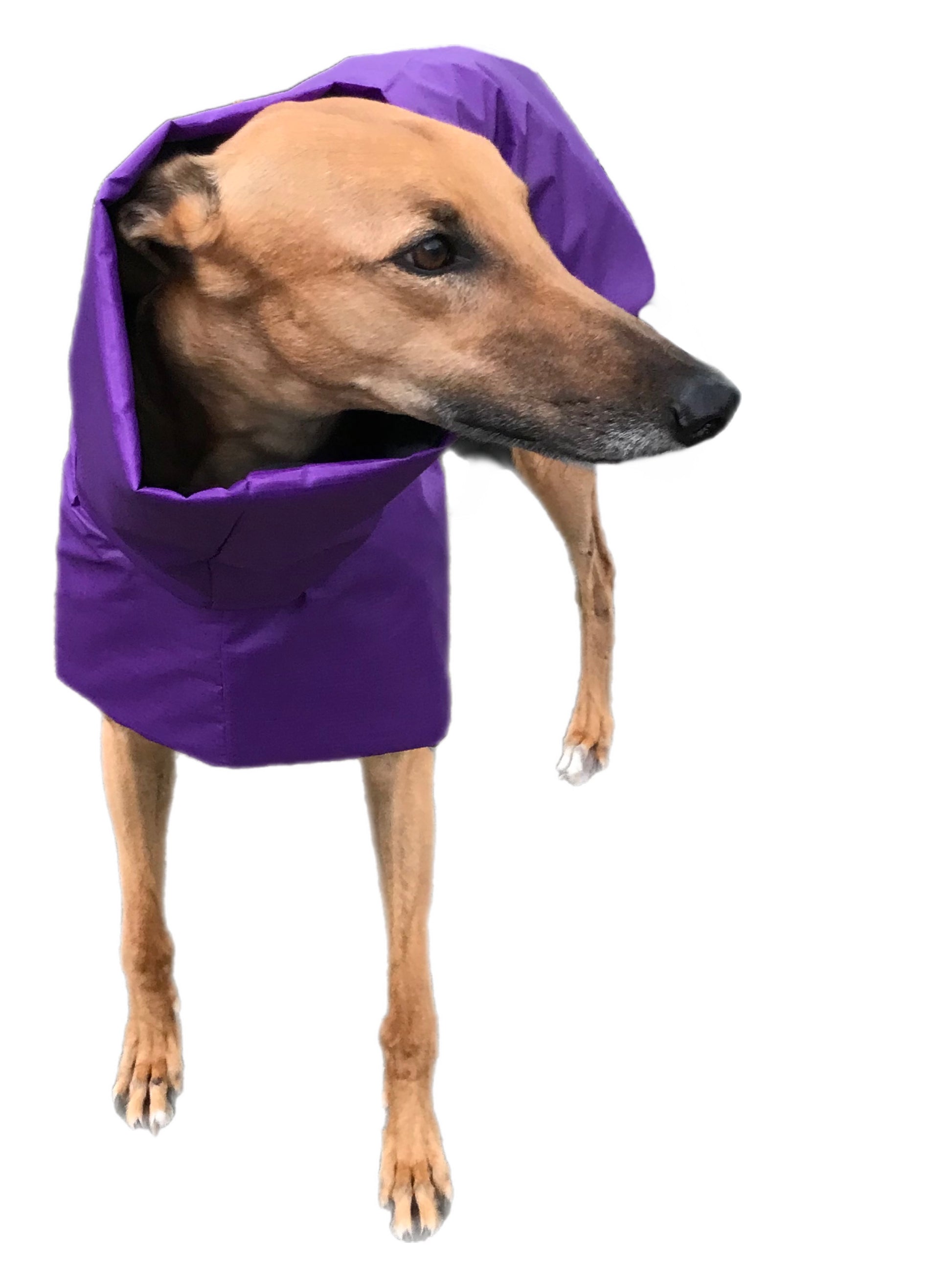 Keep your greyhound dry and comfy in one of my soft and stylish ultra lightweight raincoats with extra wide collar to keep the neck warm