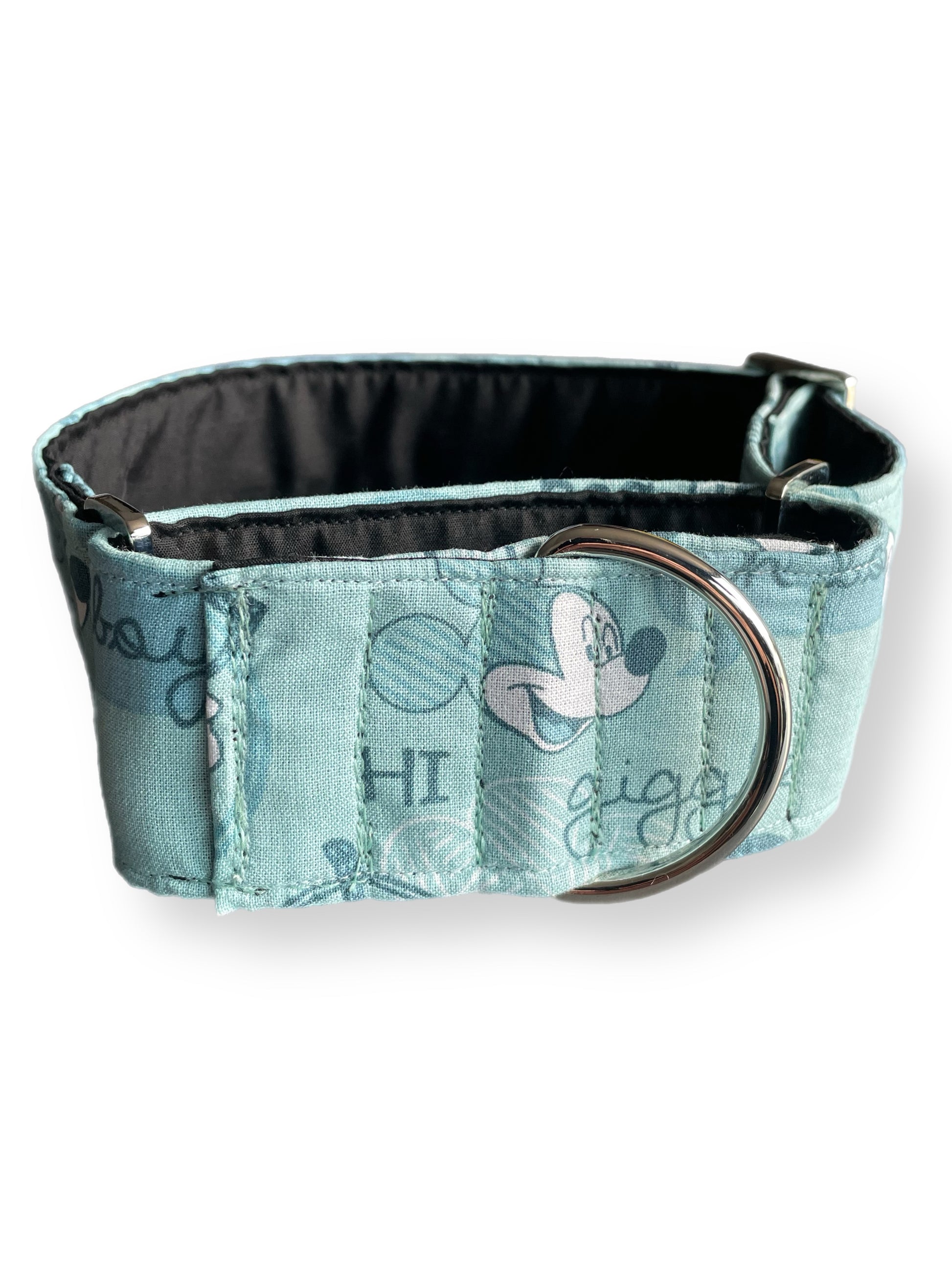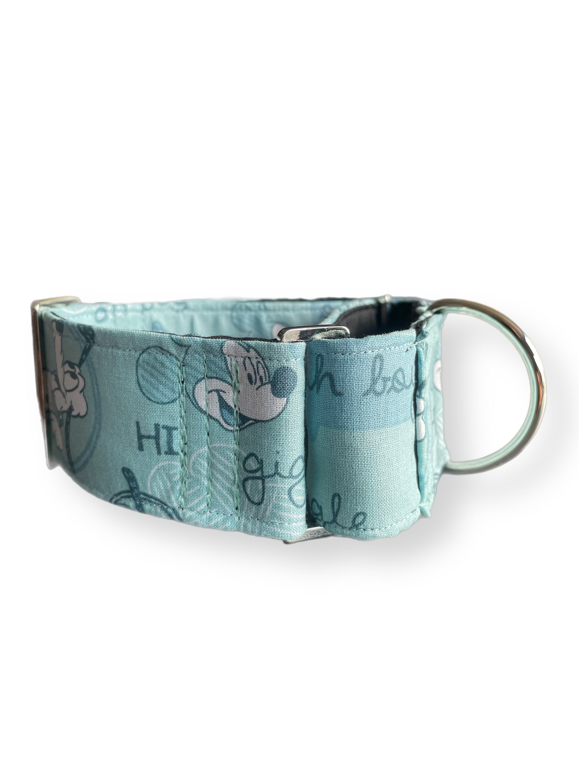 Mickey Mouse & Pluto on a soft sage, wide greyhound and whippet Martingale collar cotton super soft