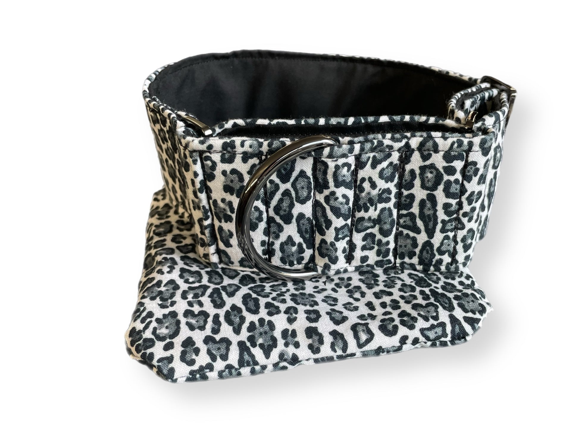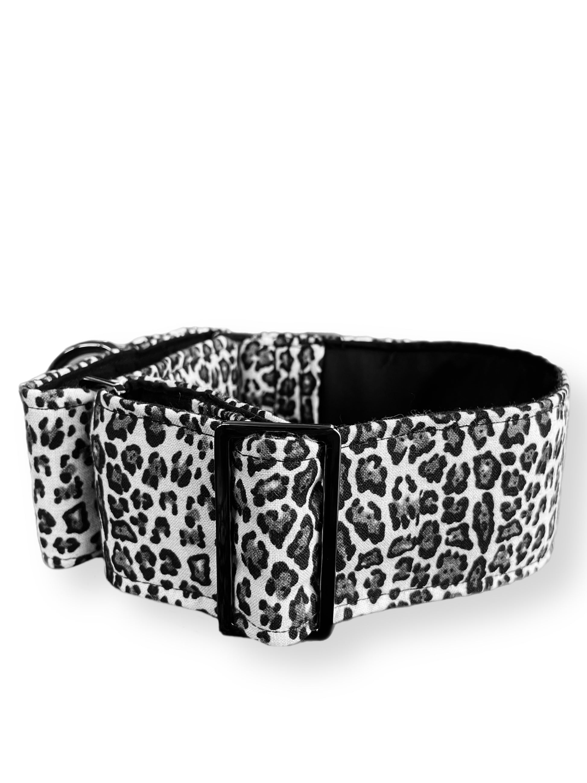 Snow leopard b&w greyhound whippet wide Martingale collar cotton covered super soft