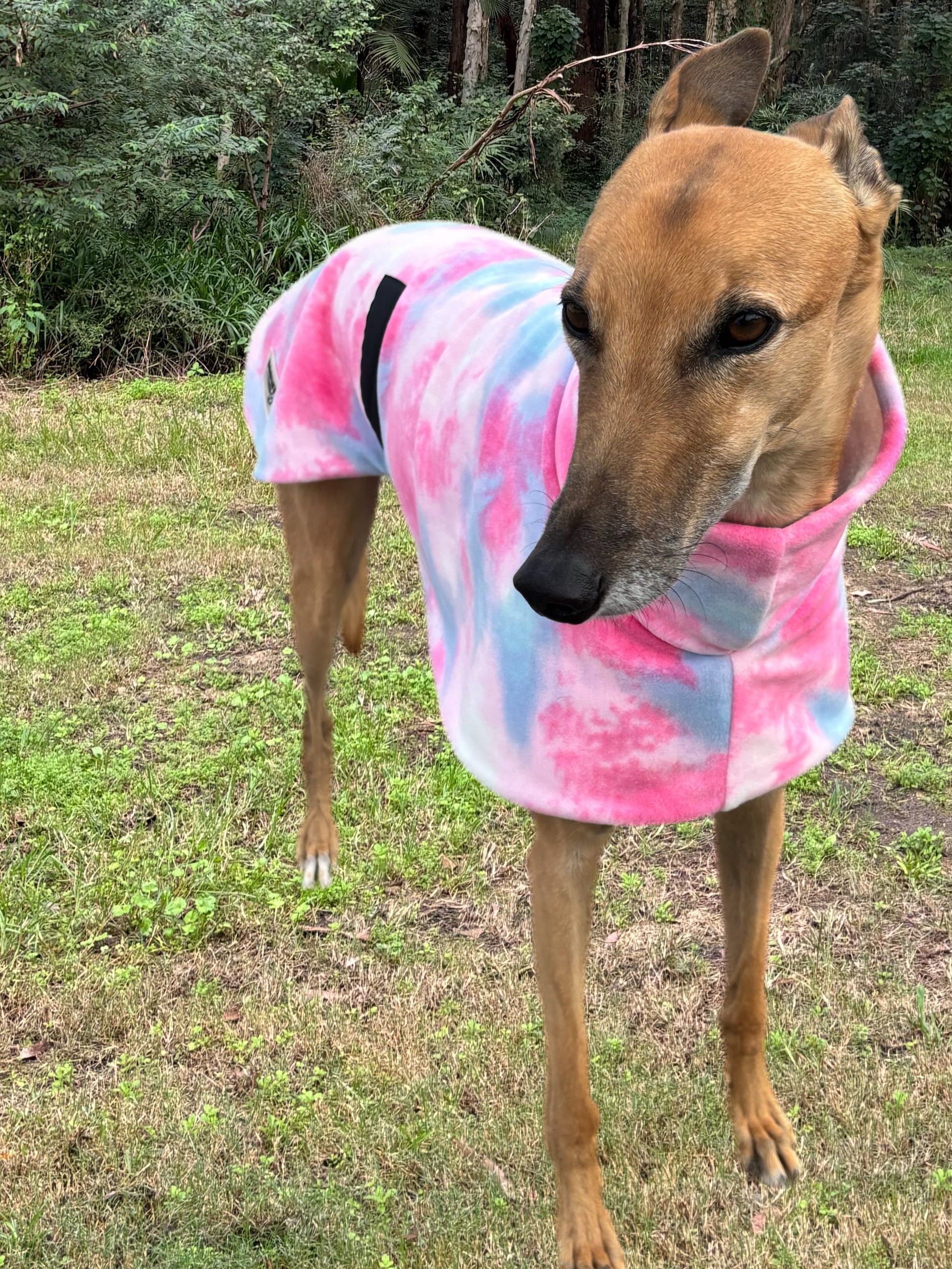 *Every coat comes with a fleece sleeve to place over the Velcro belly band if required for a softer feel against your hound’s tummy