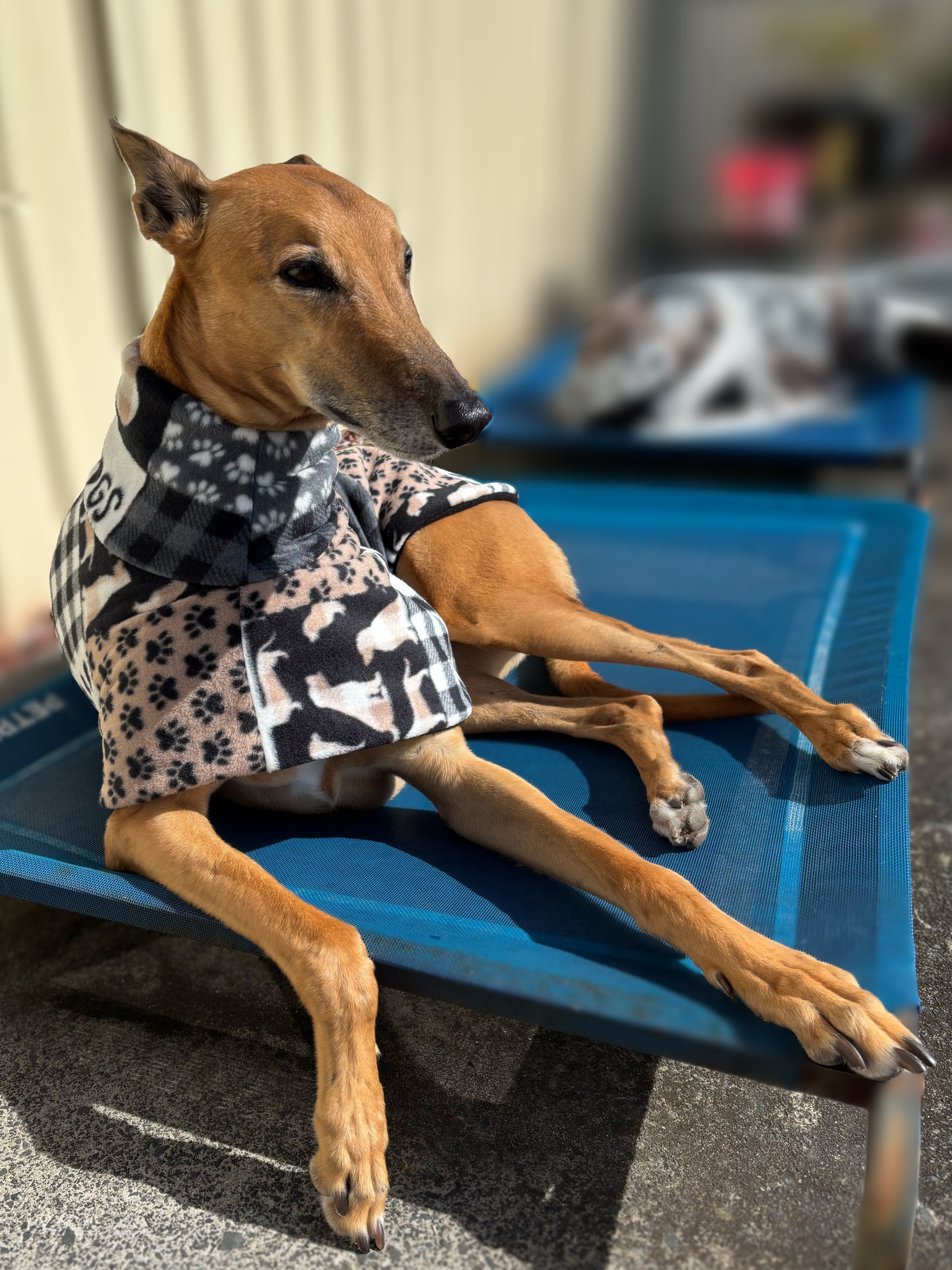 *Every coat comes with a fleece sleeve to place over the Velcro belly band if required for a softer feel against your hound’s tummy