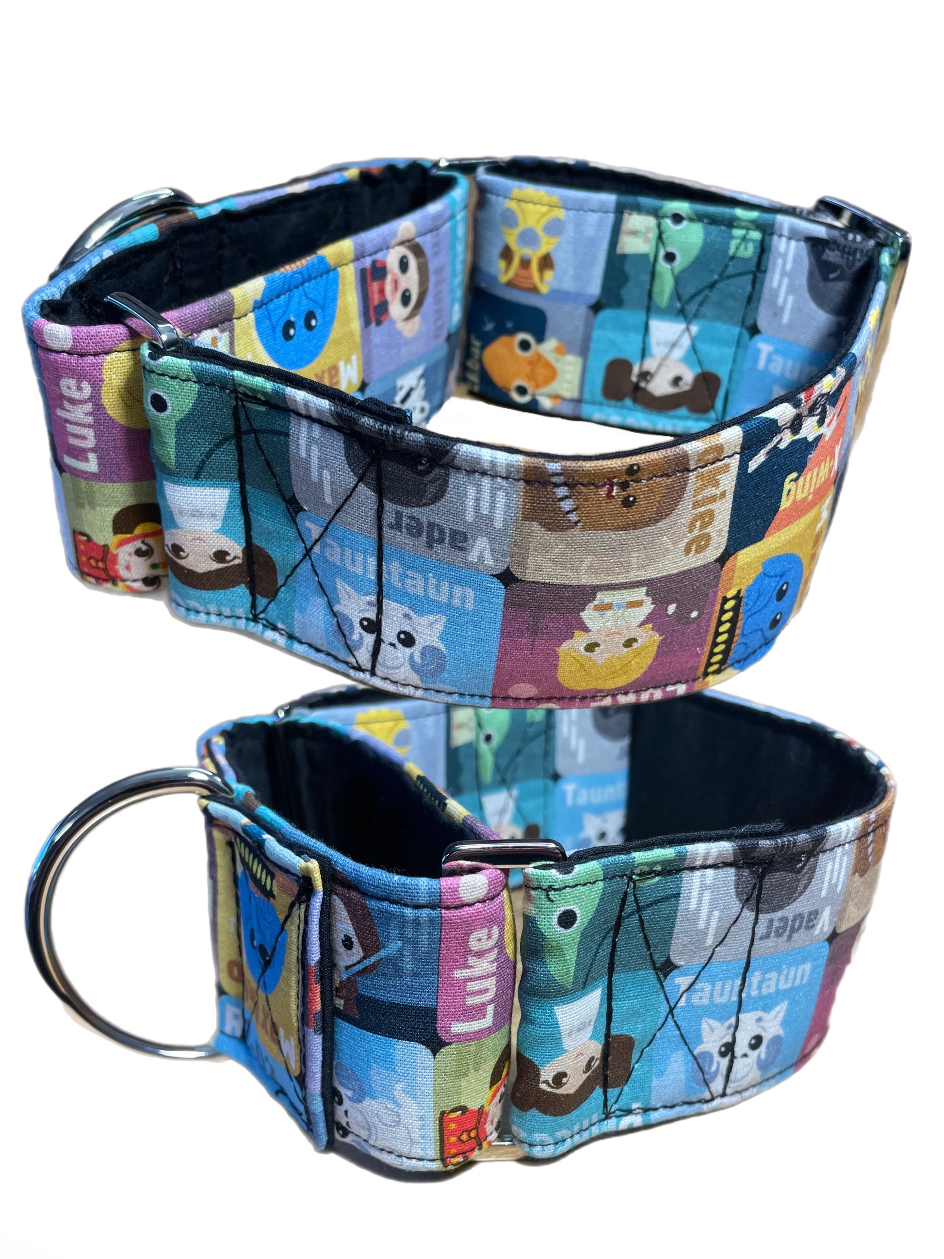 Star Wars greyhound Martingale collar cotton fabric covered 50mm width soft