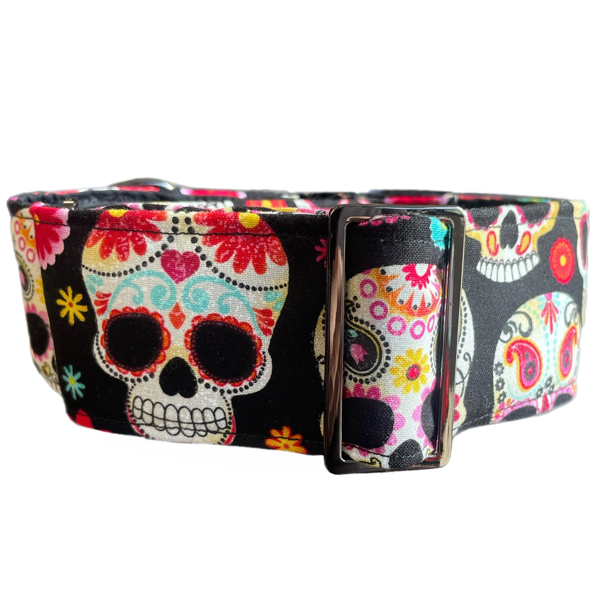 Sugar skulls Martingale collar greyhound 5cms super soft cotton fabric