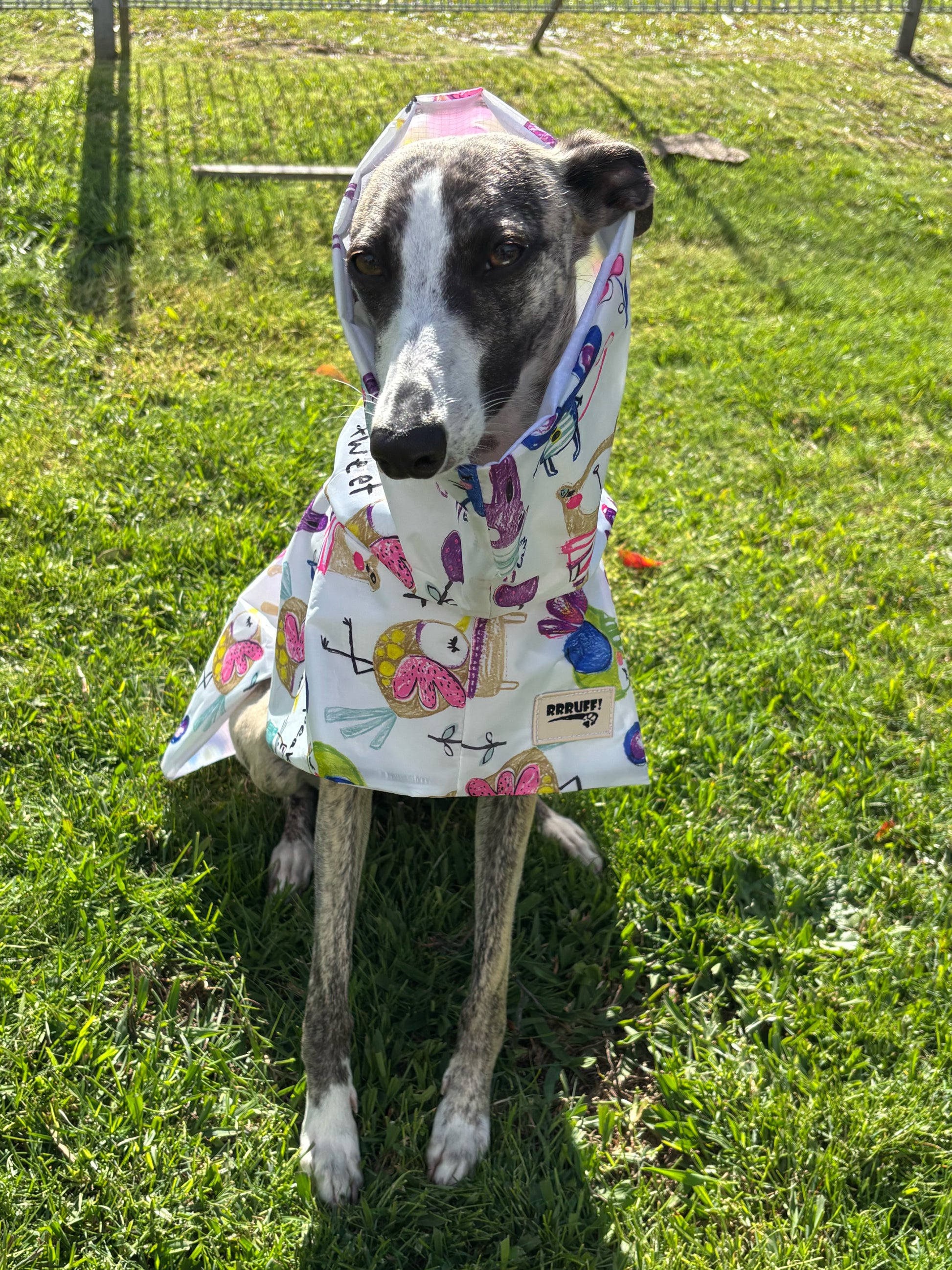 Cutest Summer rainwear Greyhound & whippet coat deluxe style, ultra lightweight, washable