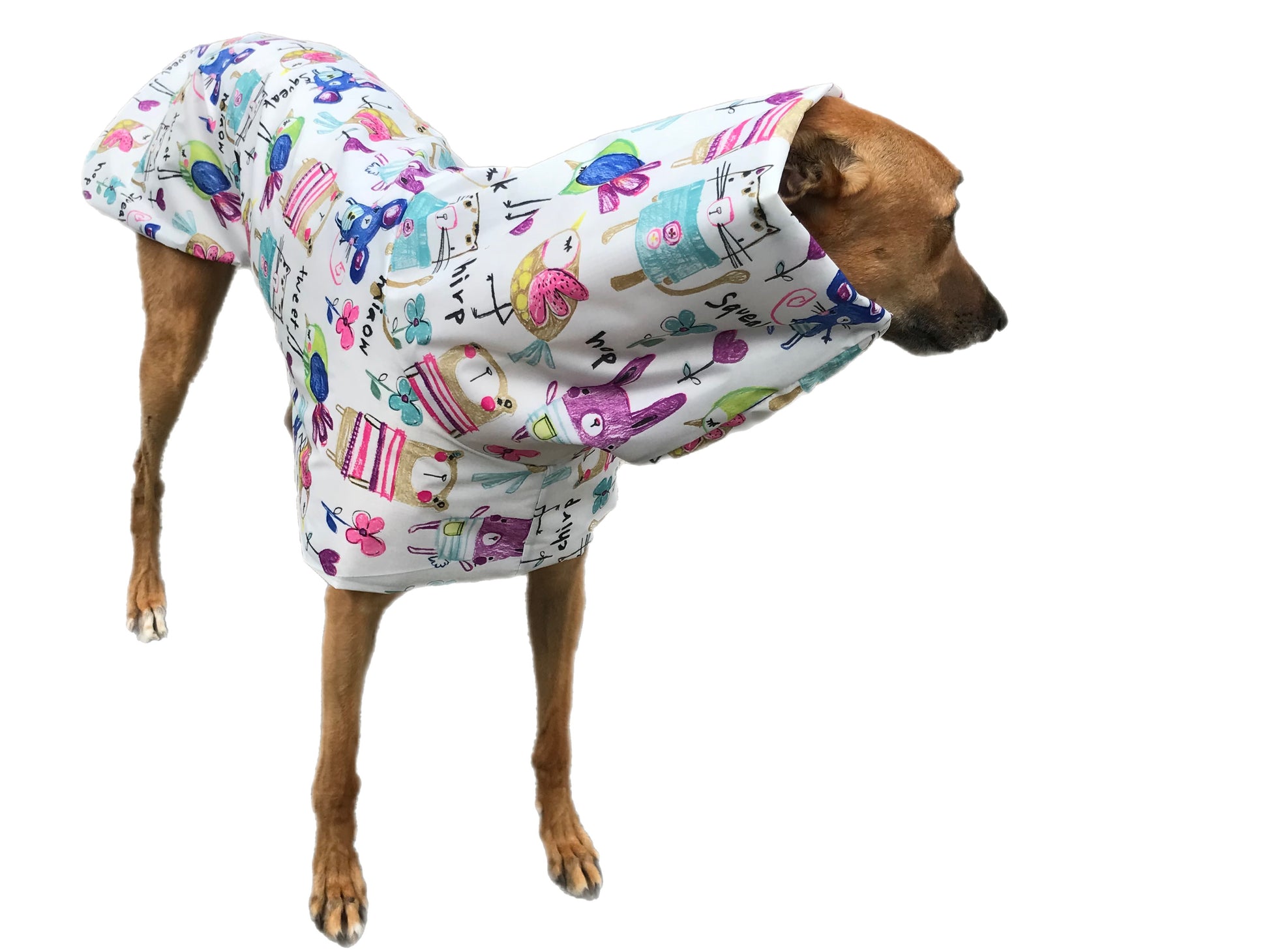 Keep your greyhound dry and comfy in one of my soft and stylish lightweight raincoats with extra wide collar to keep the neck dry
