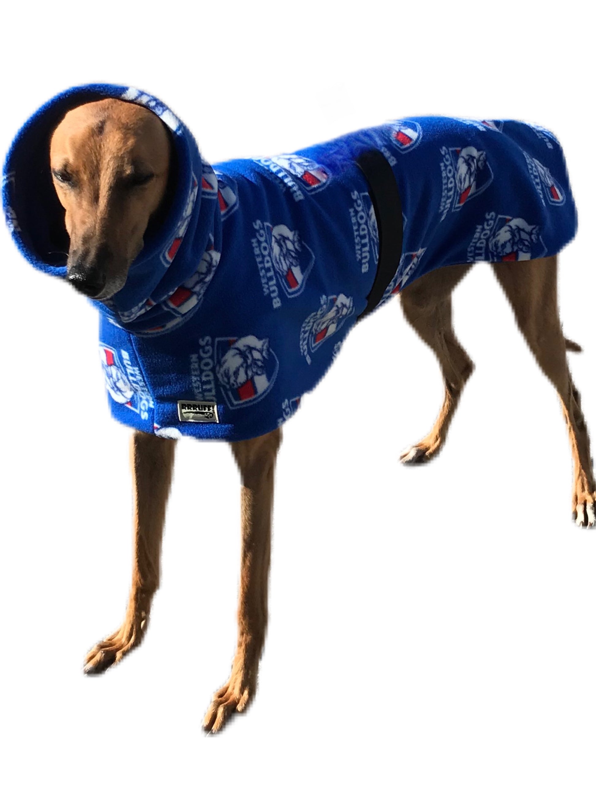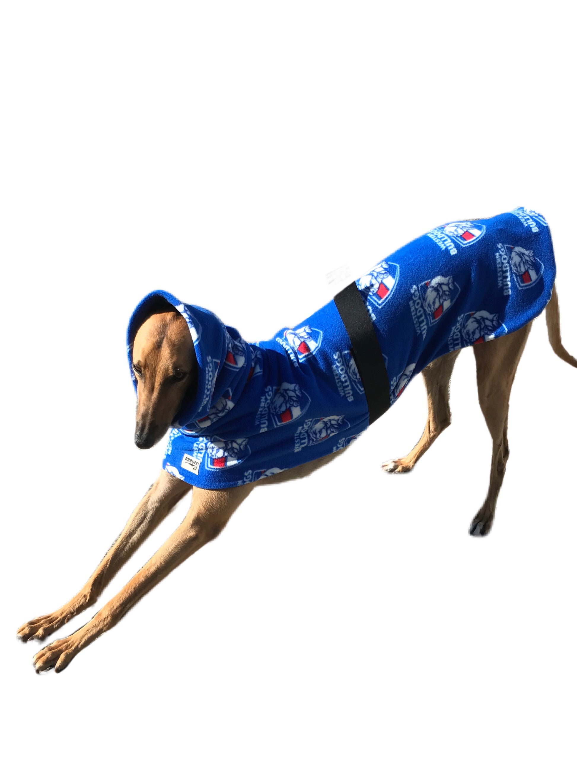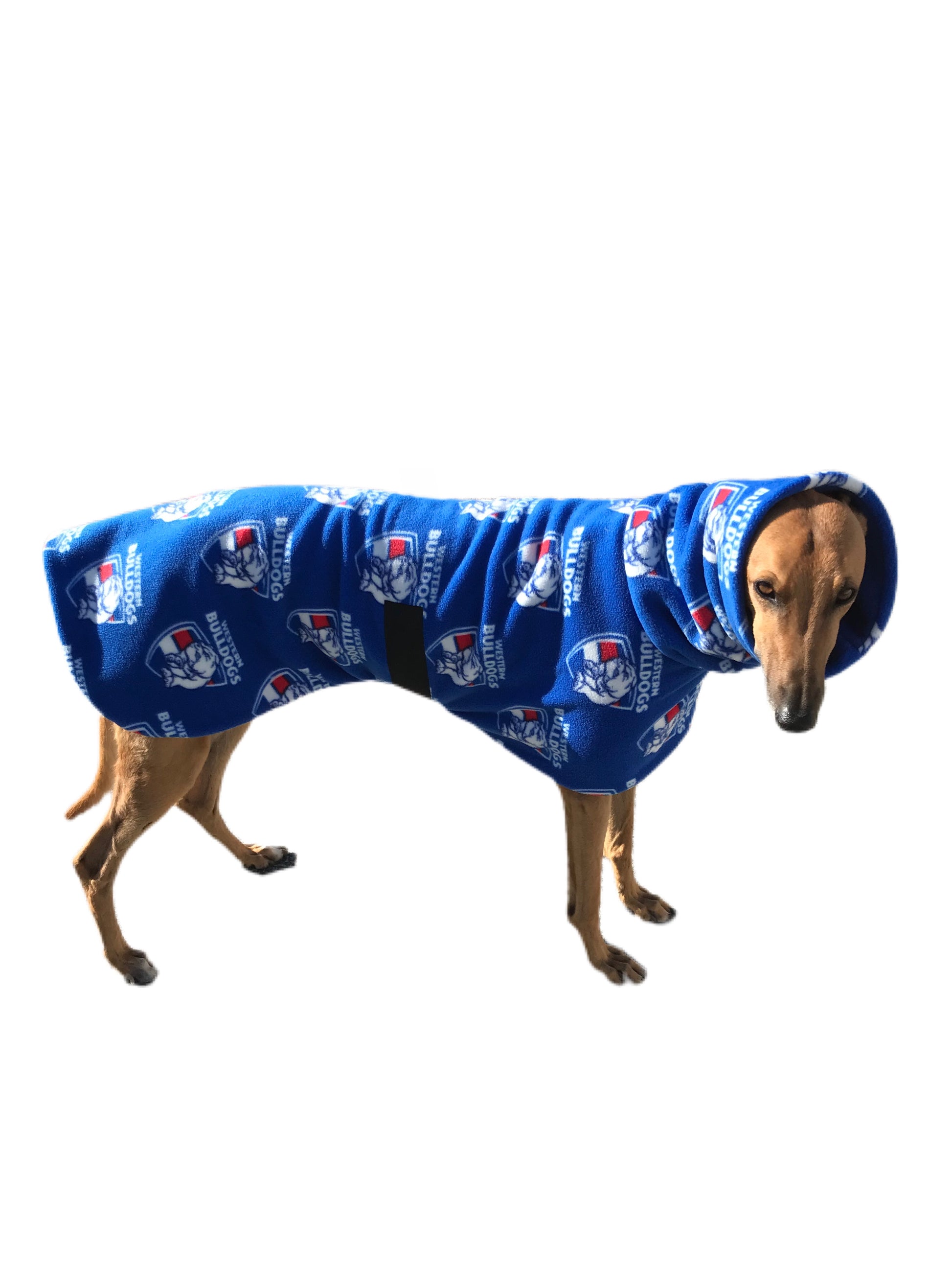 AFL Western Bulldogs inspired greyhound coat deluxe style double polar fleece washable