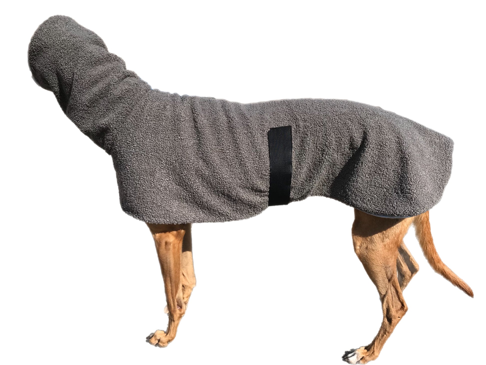 Have your greyhound snuggle into one of my deluxe coats with an extra wide neck band. Your finger tips will be delighted touching this beautiful fabric. My generous rugs wrap your hound just like a favorite dressing gown
