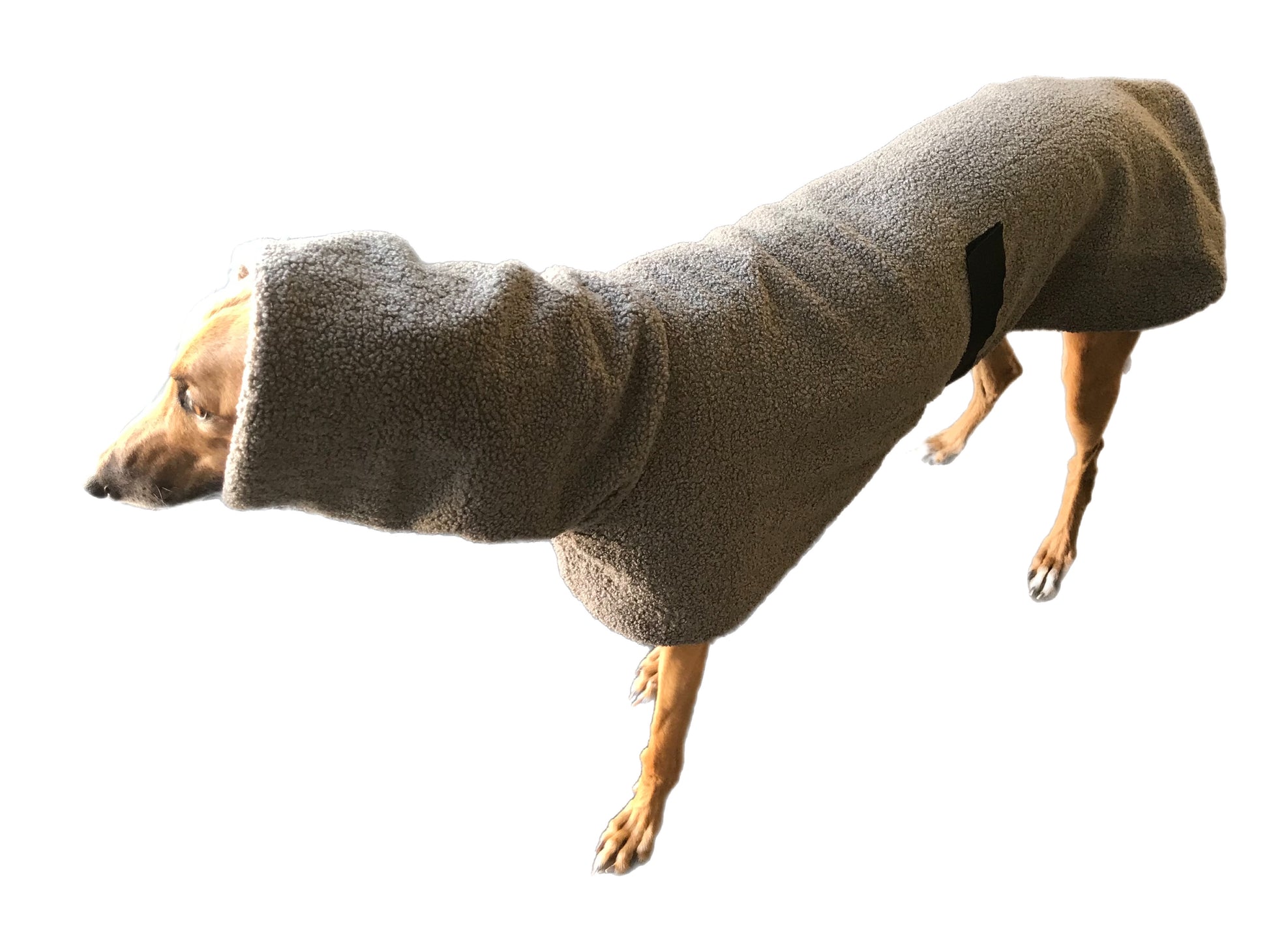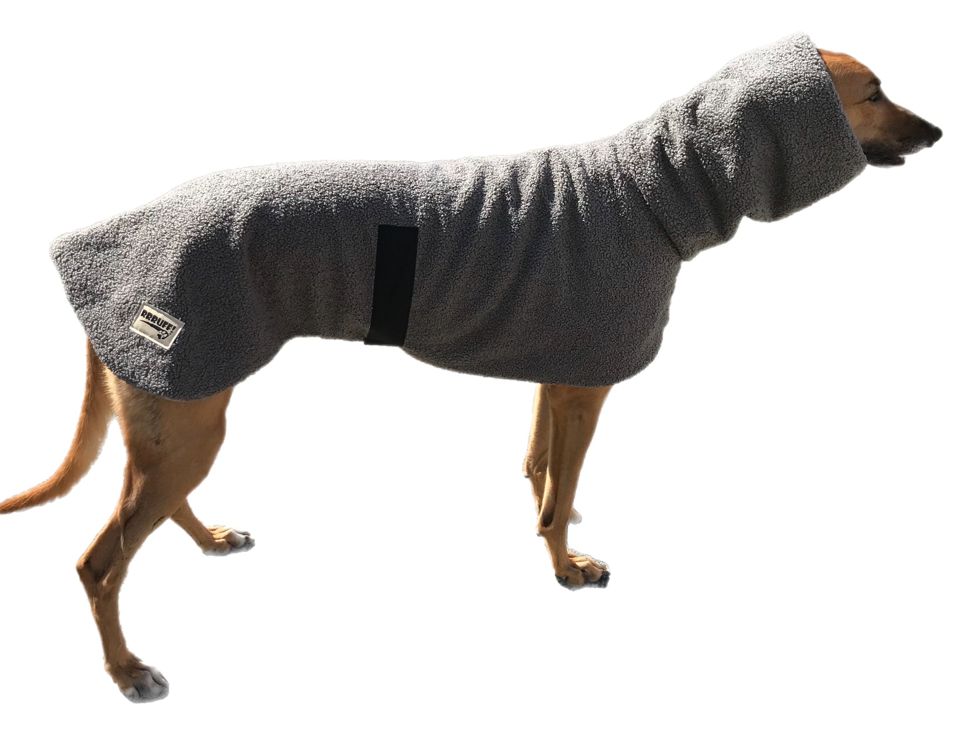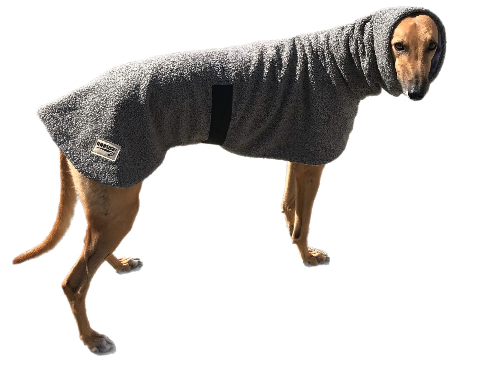 RRRUFF! deluxe coats feature thick anti pill polar fleece. High performance, heavy winter weight and promising anti chill with maximum comfort and minimum care. Our teddy coats now come with a sleeve of fleece to slide over the belly band for a softer feel against your greyhound’s skin