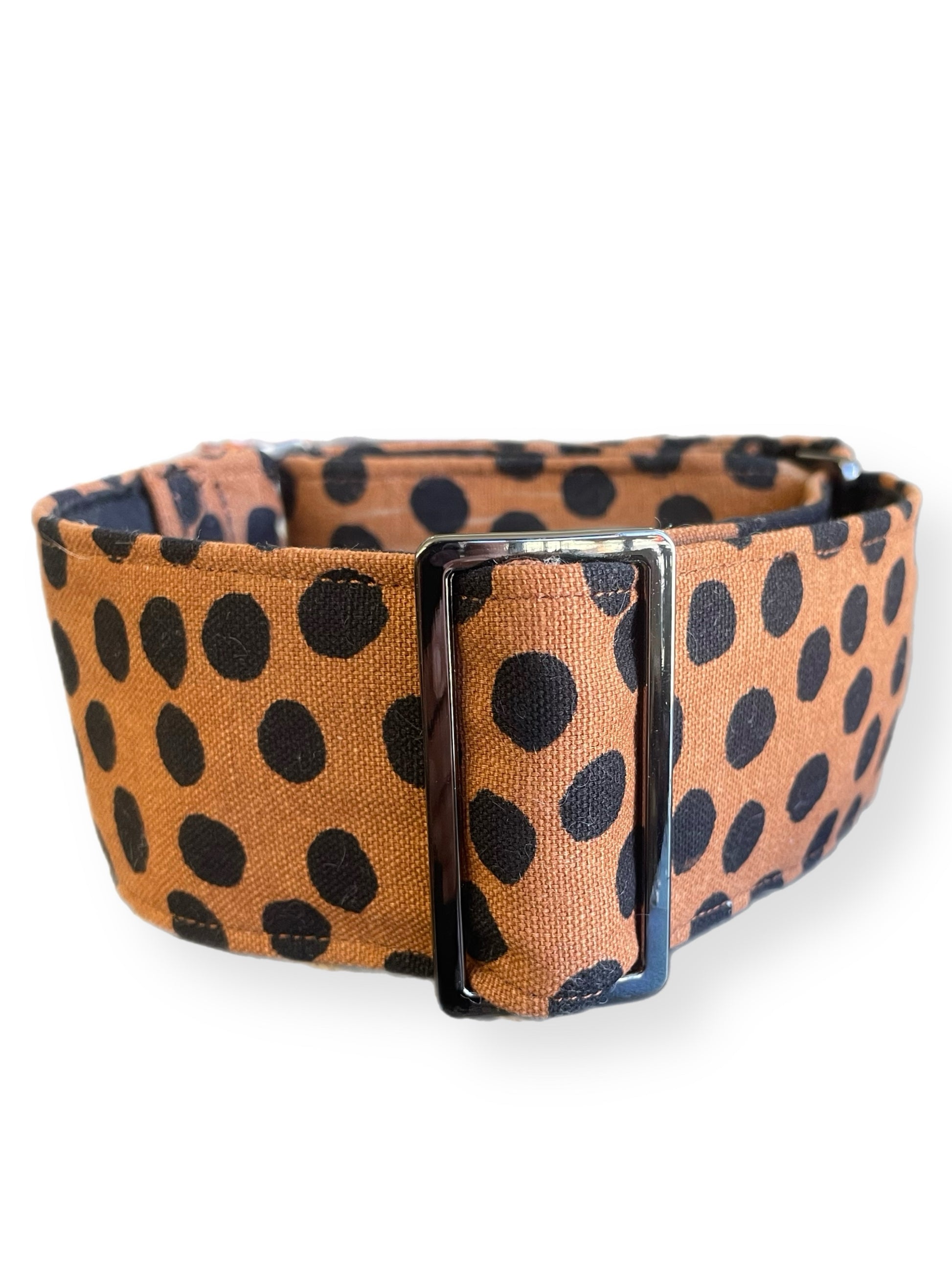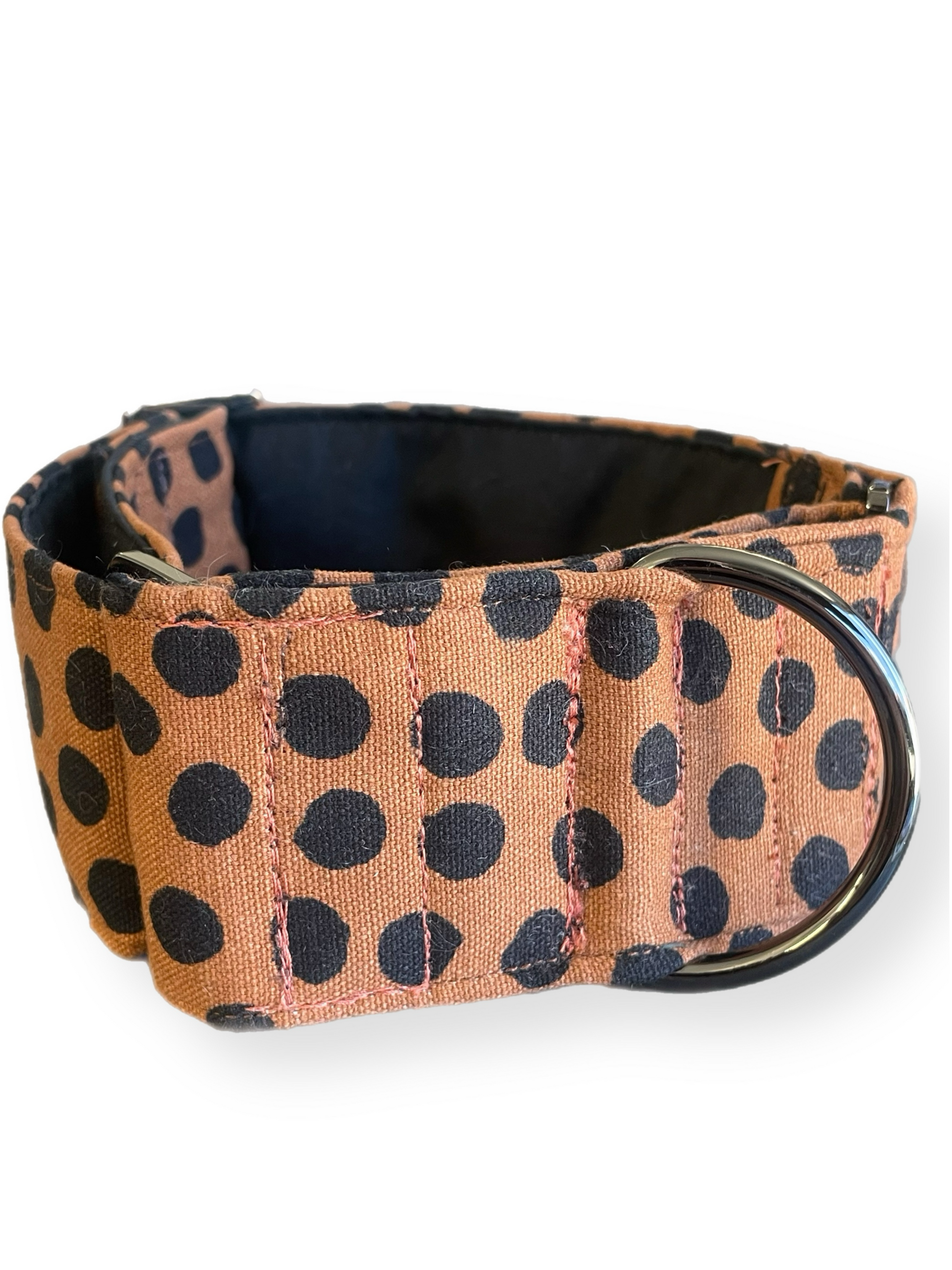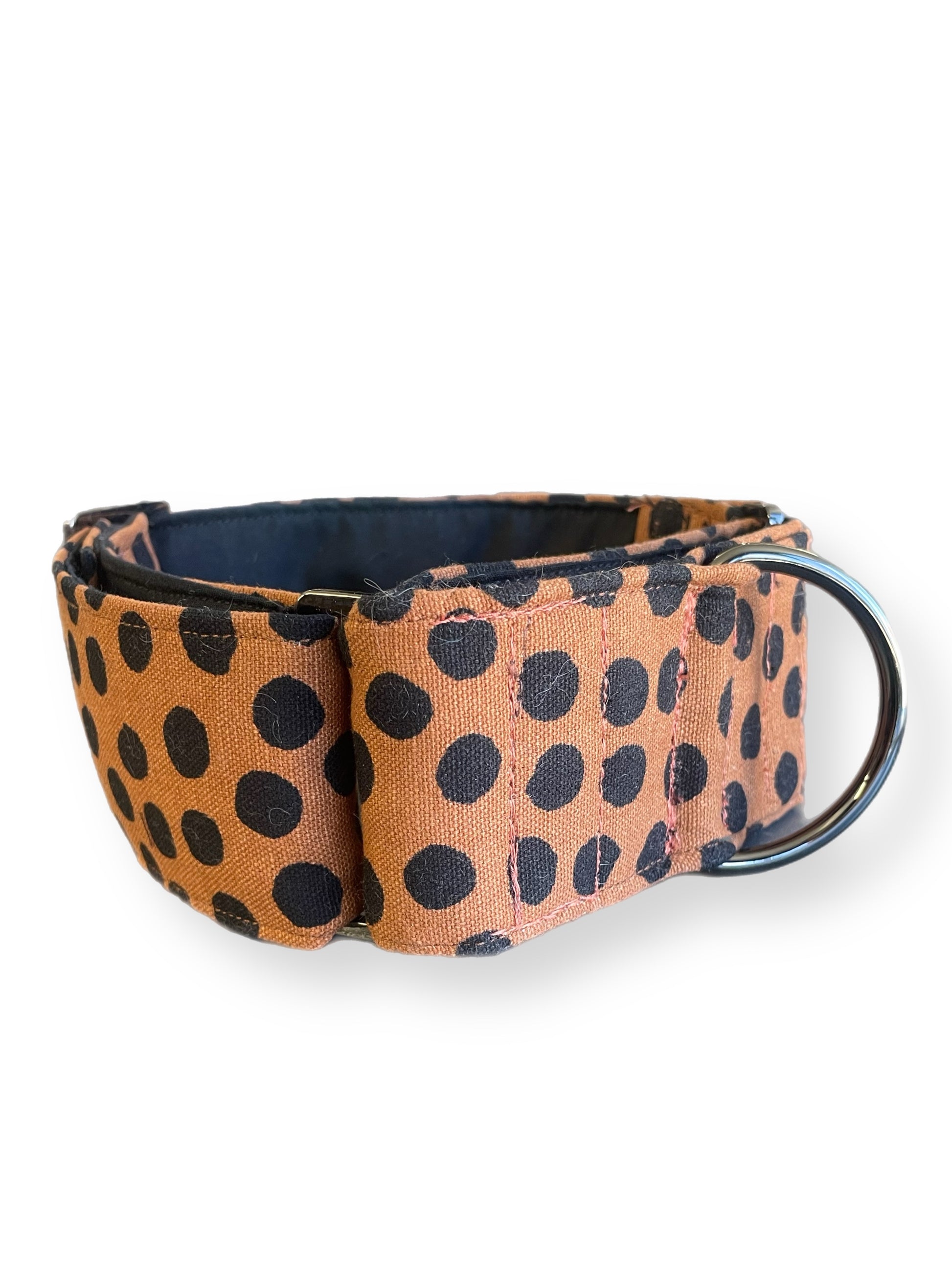 Terracotta with spots greyhound Martingale collar cotton covered wide